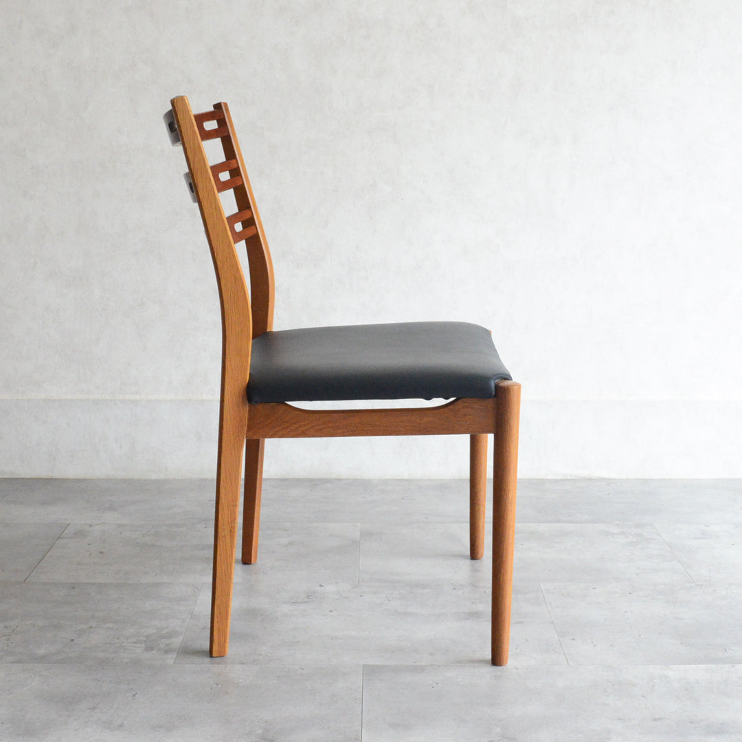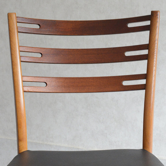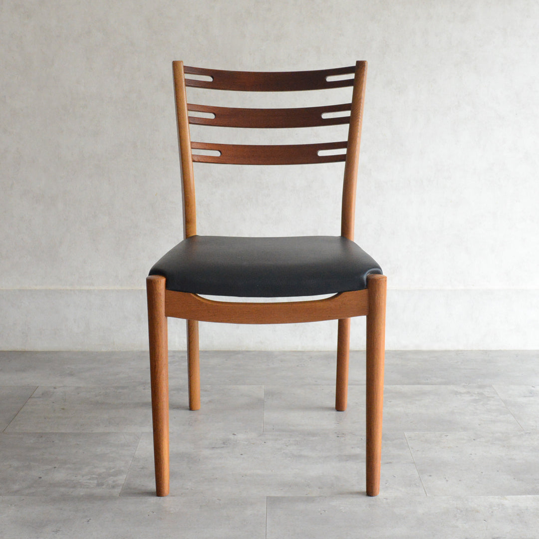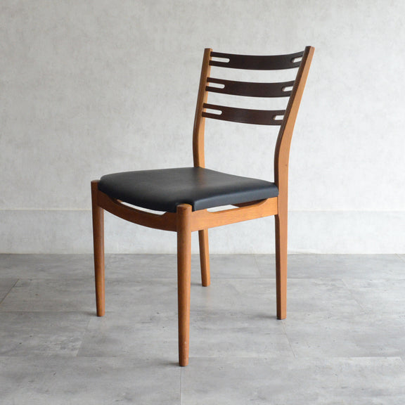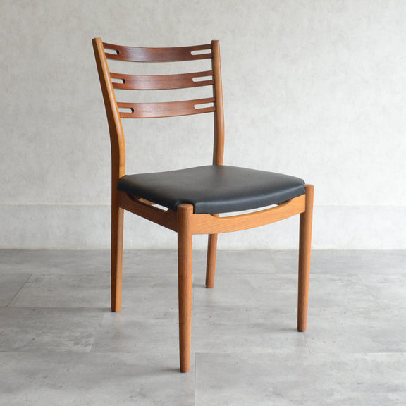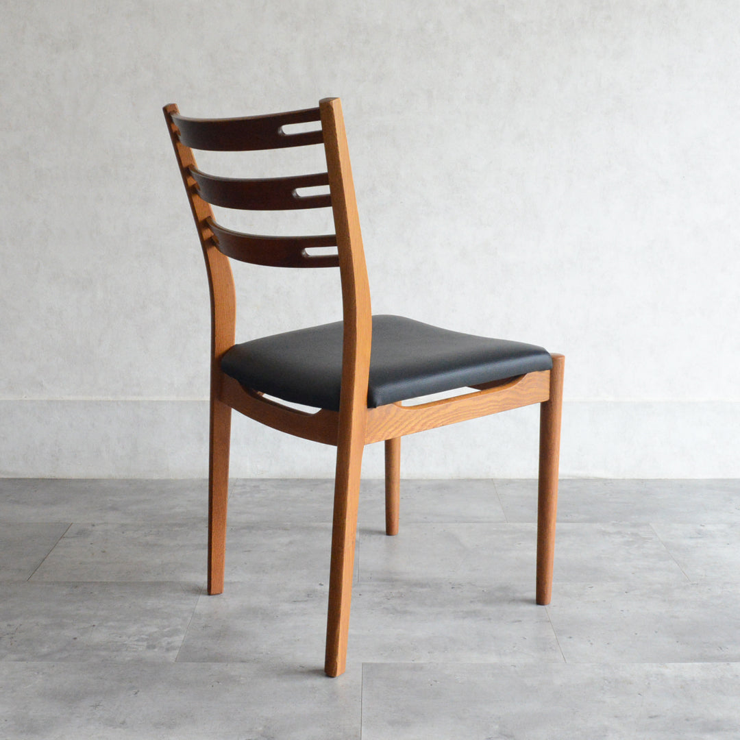 こちらのチェアもチークとオークを組み合わせた背もたれが魅力的で、ゆったりした掛心地になる様にカーブを描いています。