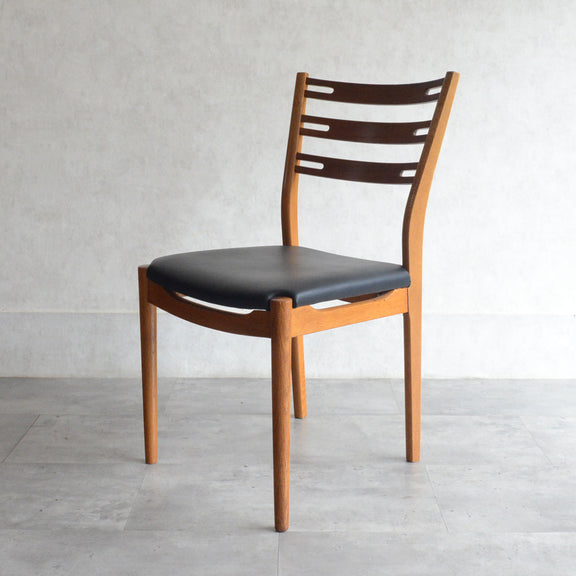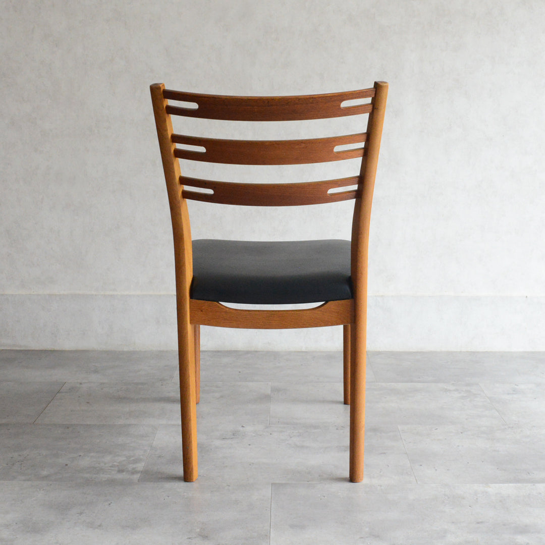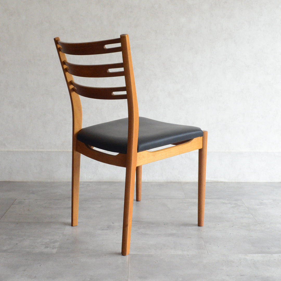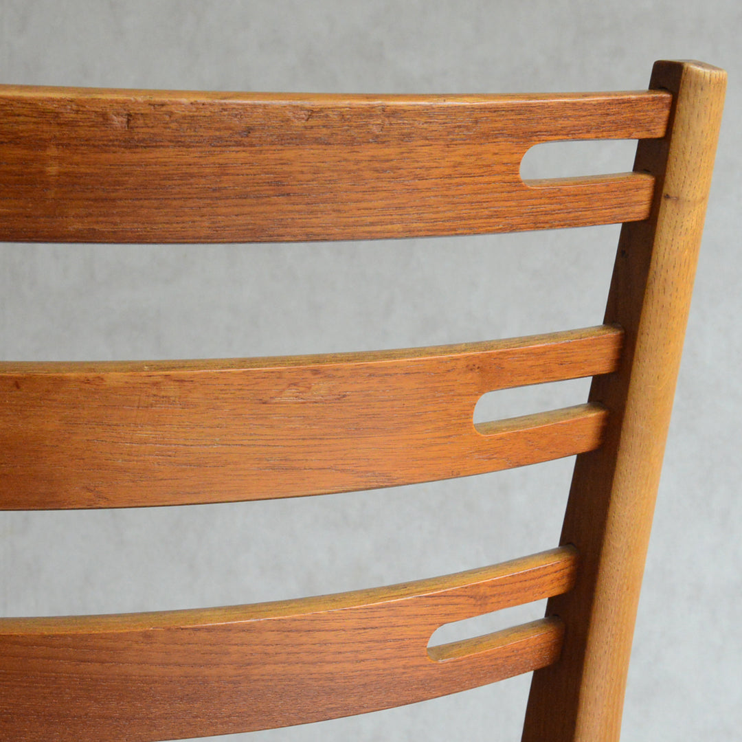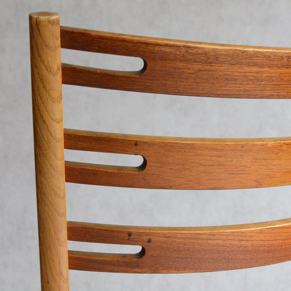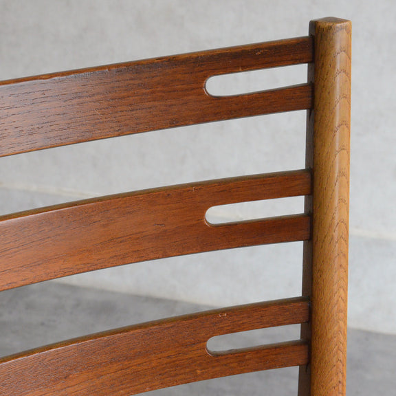 こちらのチェアもチークとオークを組み合わせた背もたれが魅力的で、ゆったりした掛心地になる様にカーブを描いています。