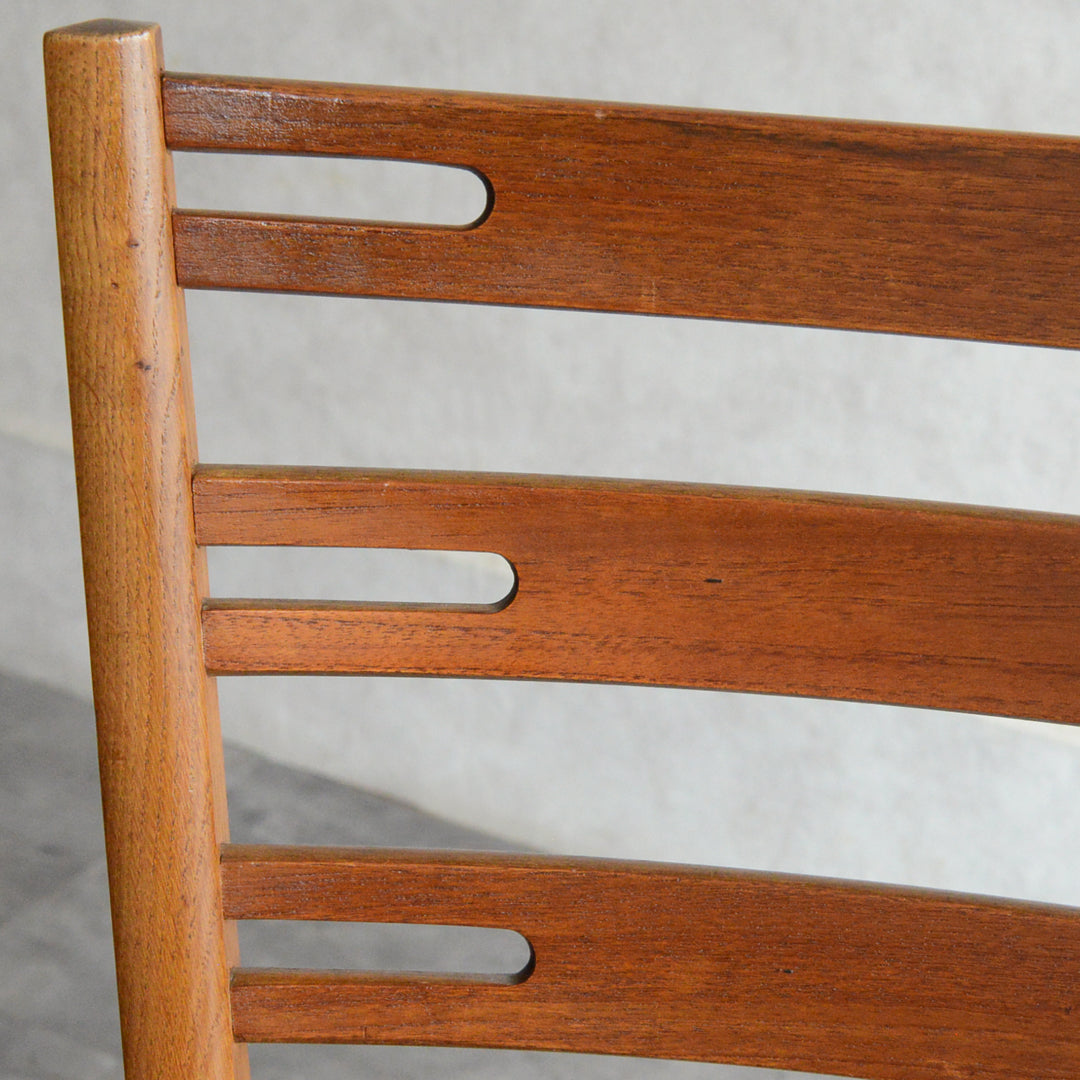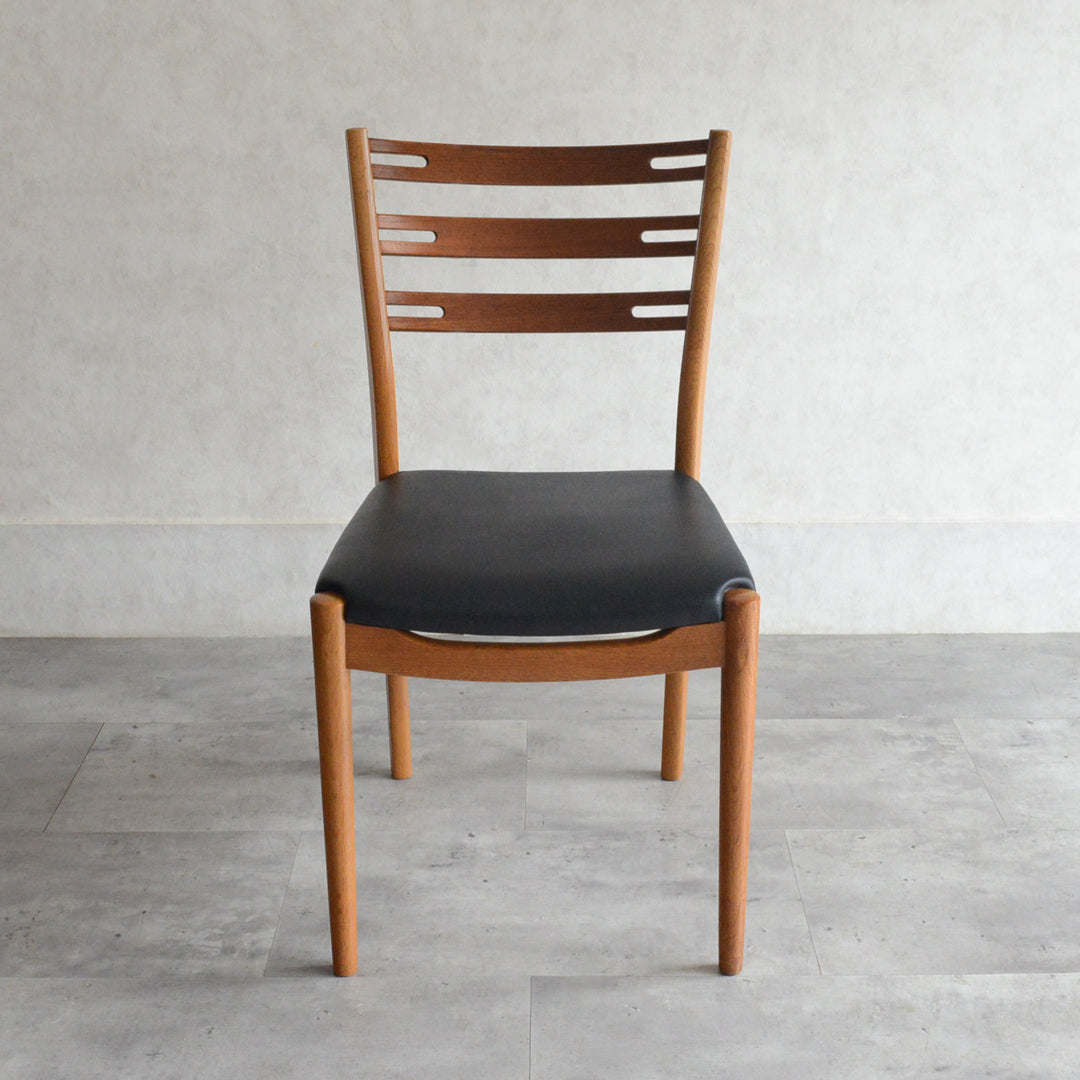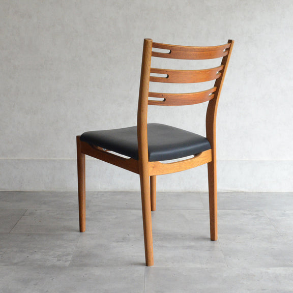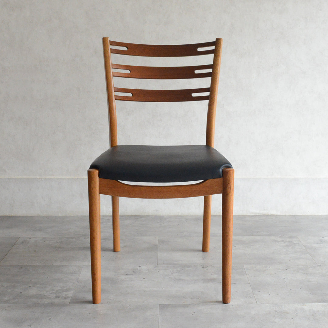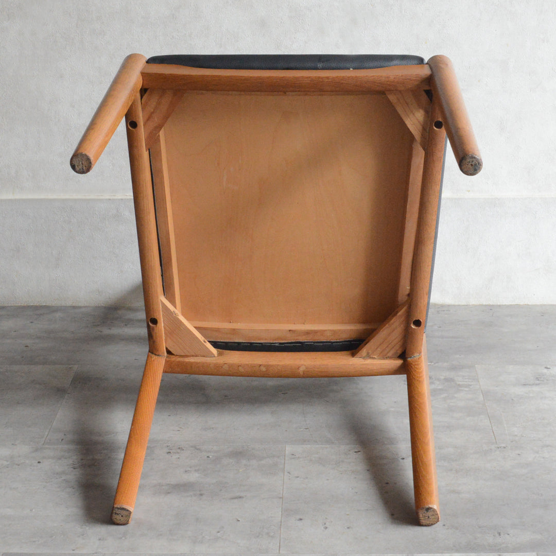 こちらのチェアもチークとオークを組み合わせた背もたれが魅力的で、ゆったりした掛心地になる様にカーブを描いています。