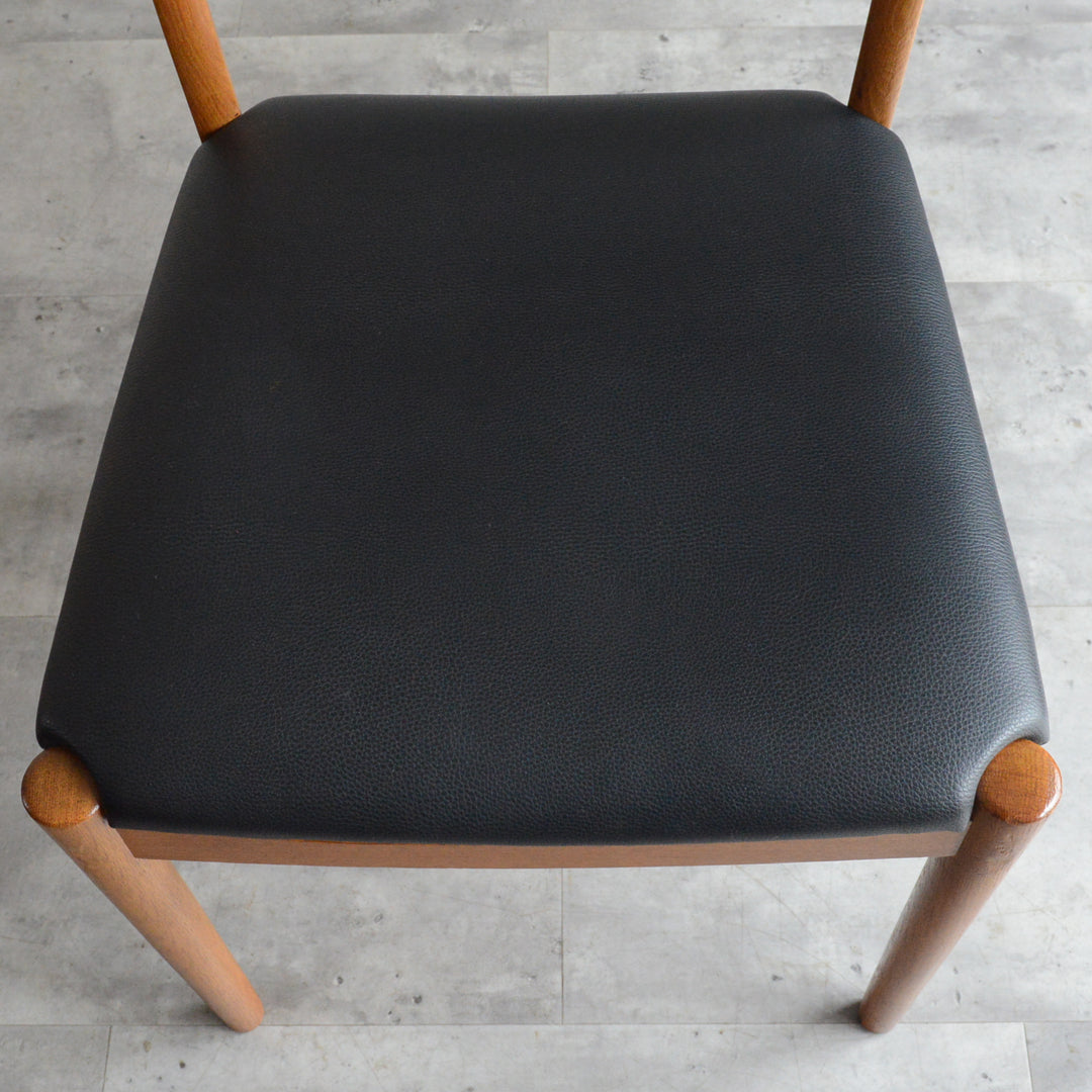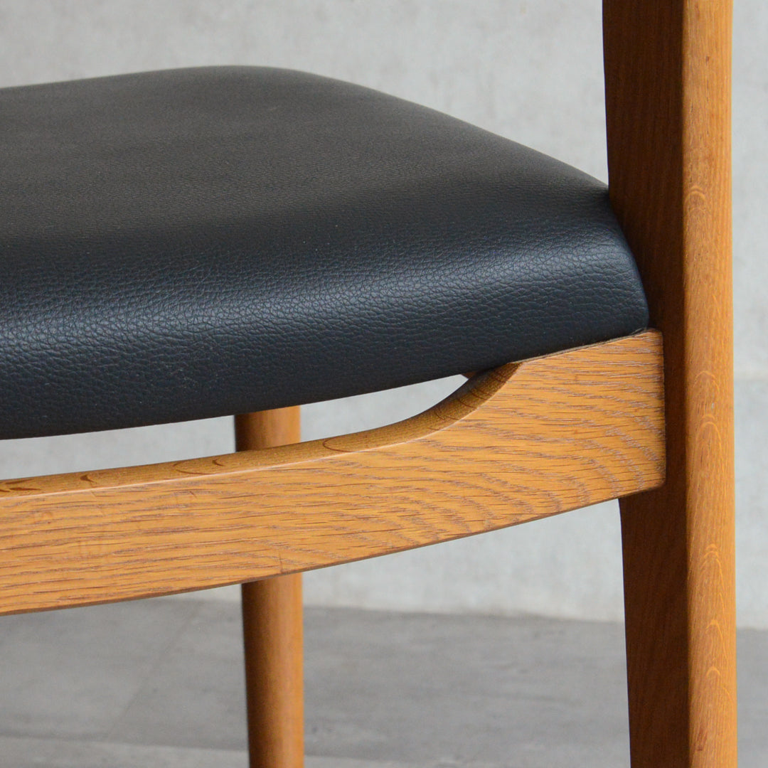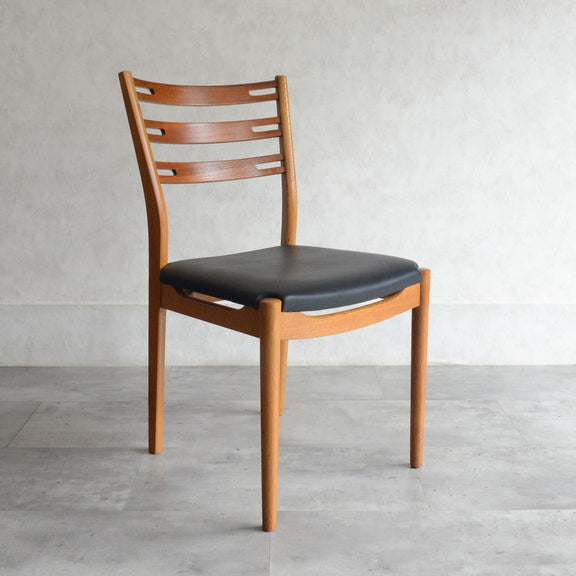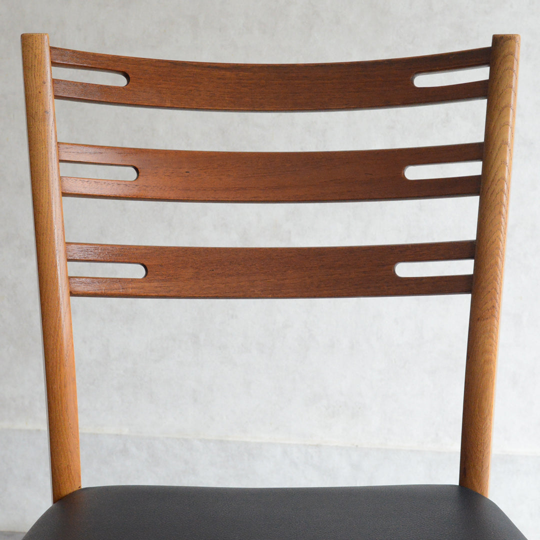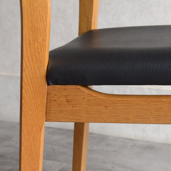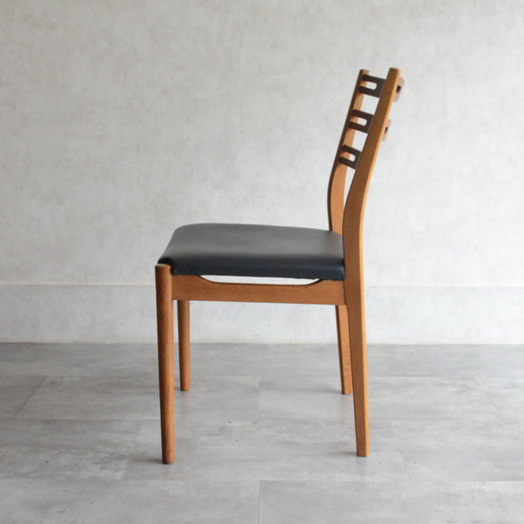 こちらのチェアもチークとオークを組み合わせた背もたれが魅力的で、ゆったりした掛心地になる様にカーブを描いています。