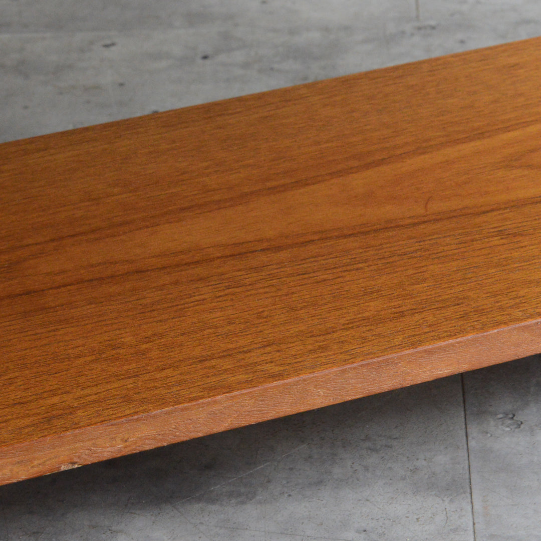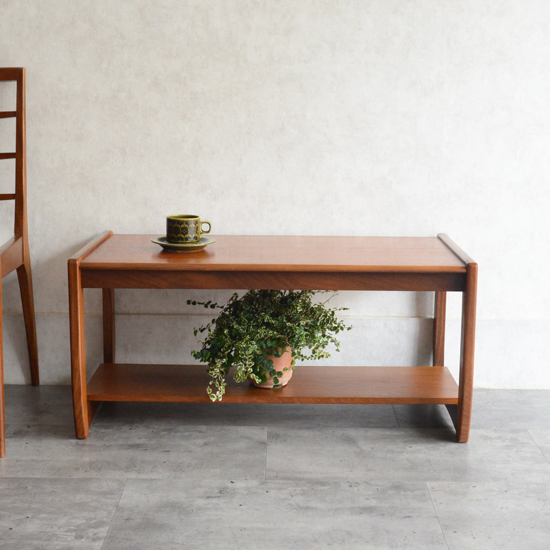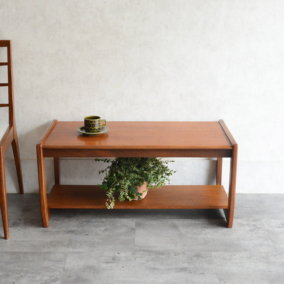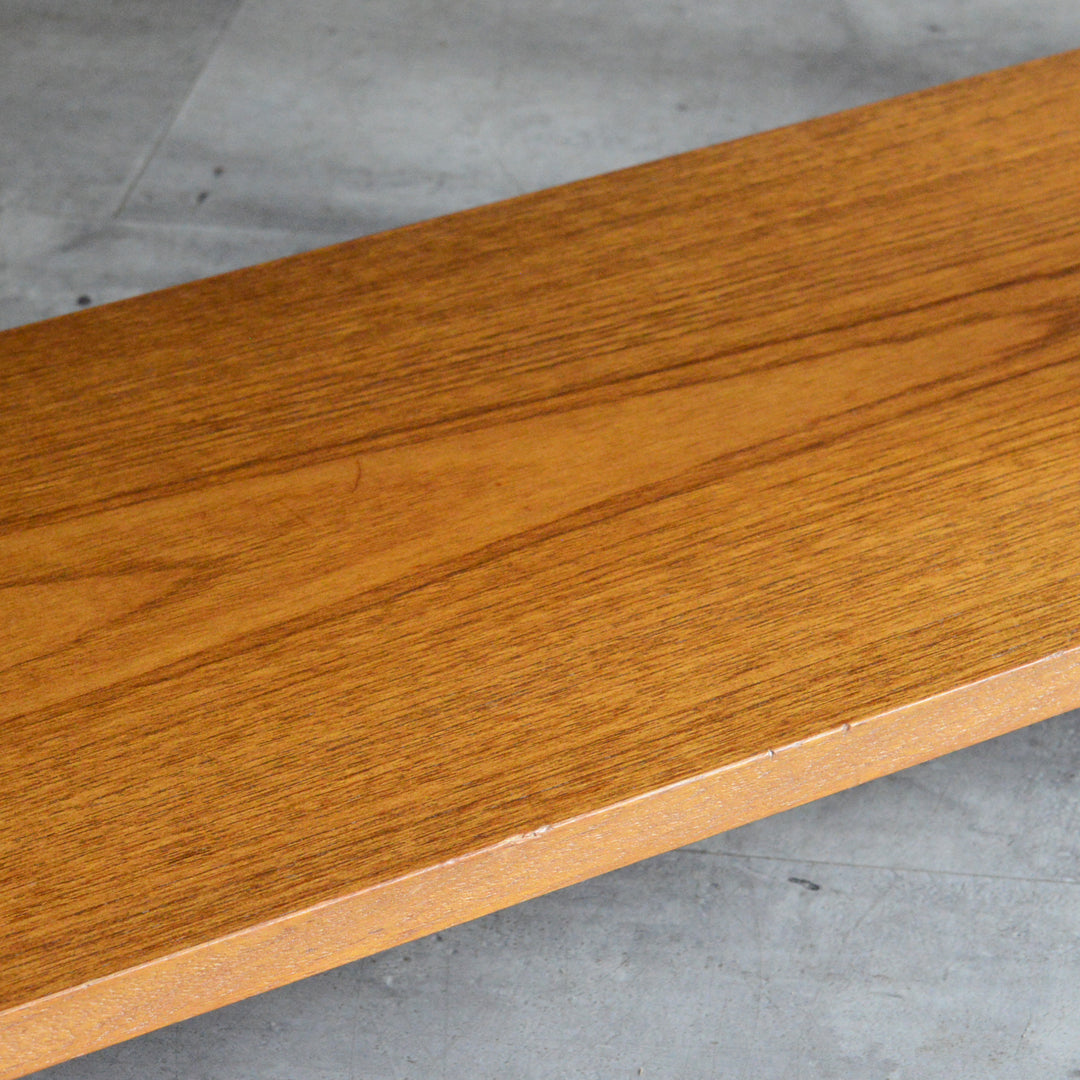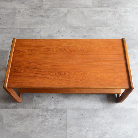 チーク材の天板が美しく、濃いめカラーのアフロモシアを使った脚部のデザインがスタイリッシュなローテーブル。