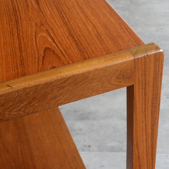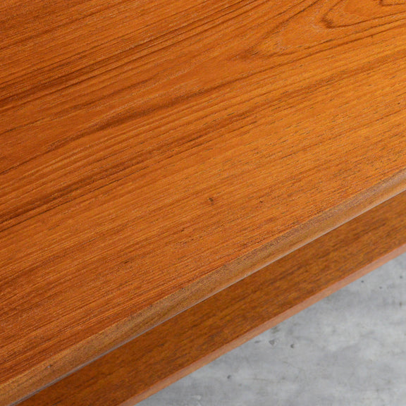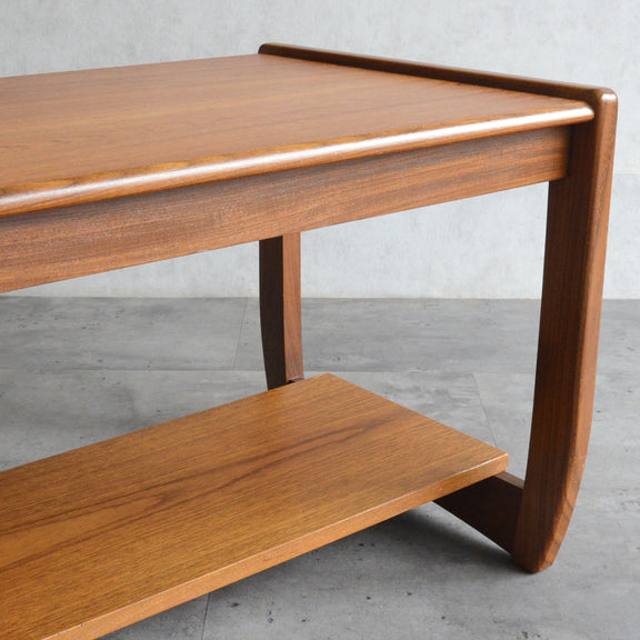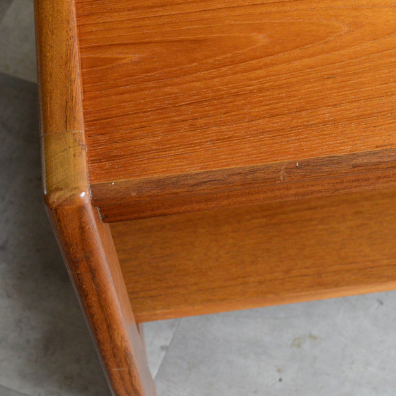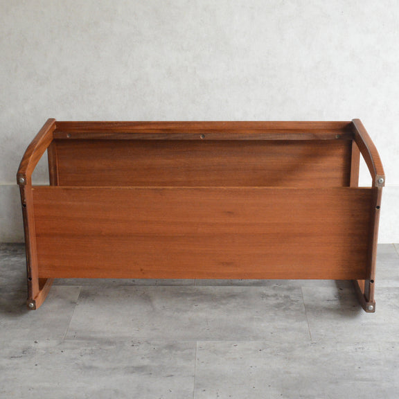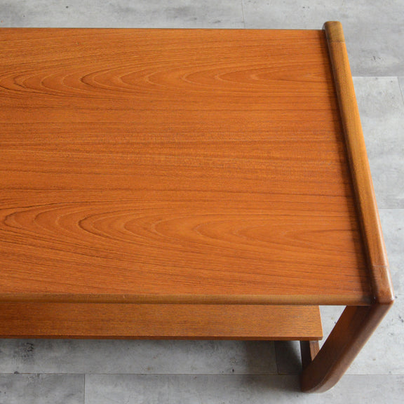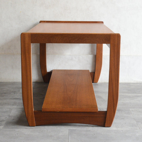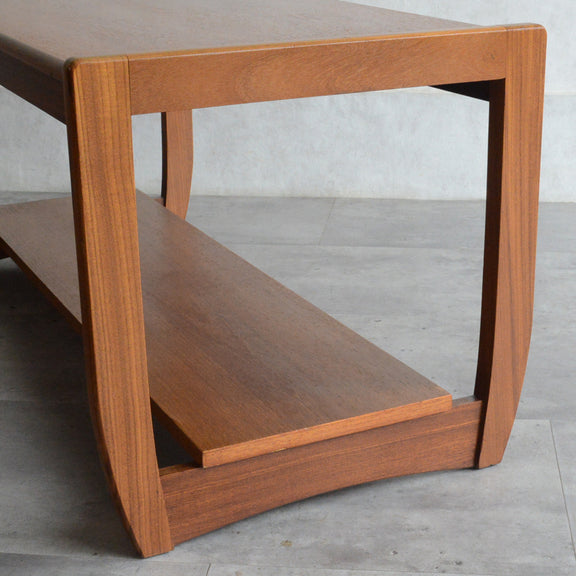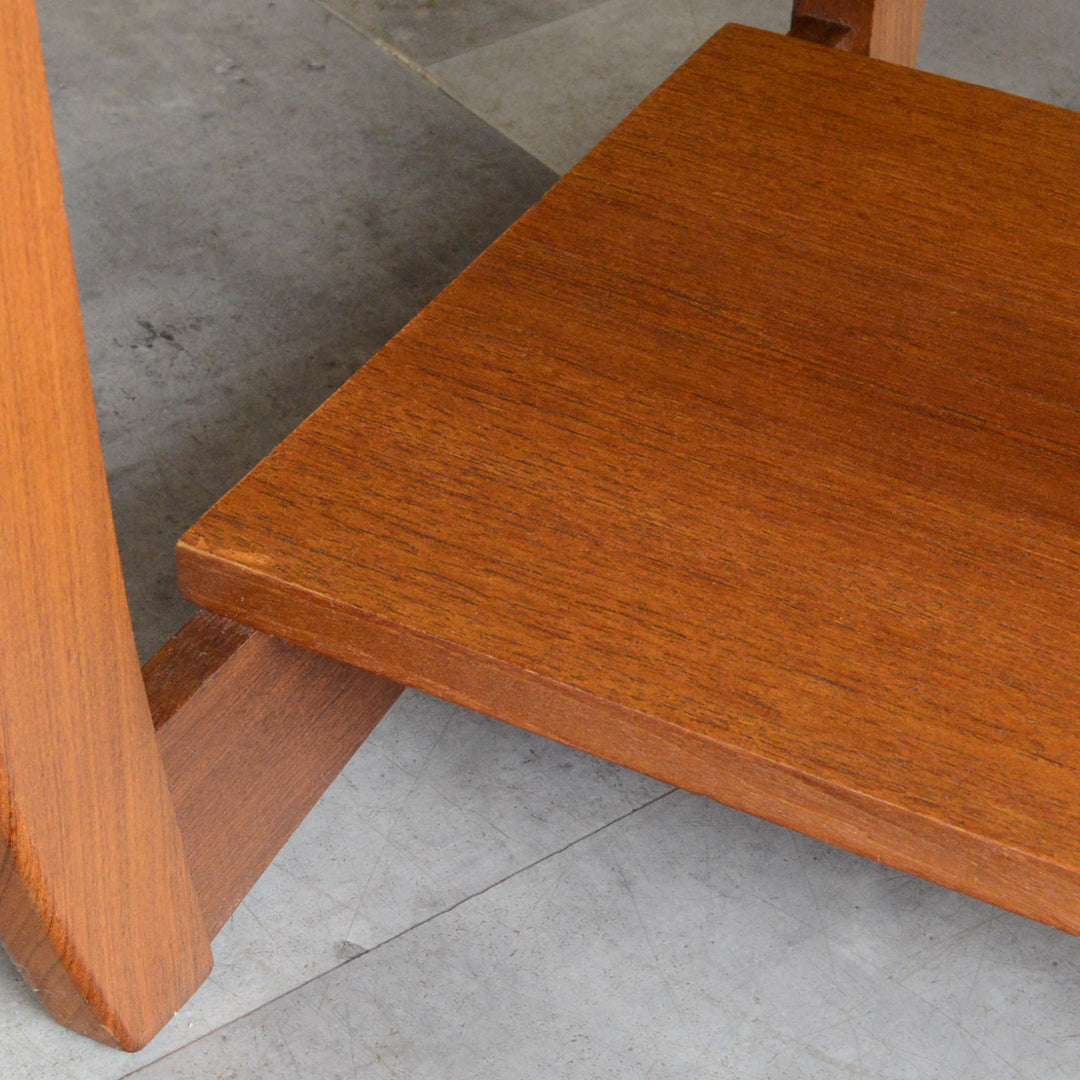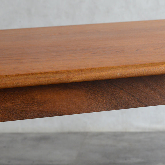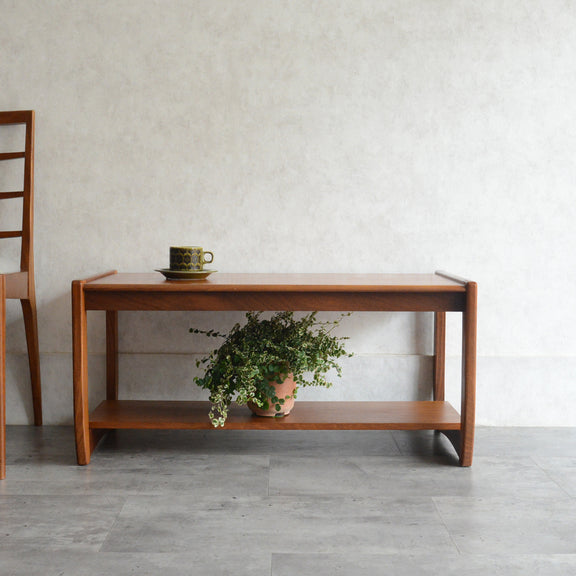 チーク材の天板が美しく、濃いめカラーのアフロモシアを使った脚部のデザインがスタイリッシュなローテーブル。
