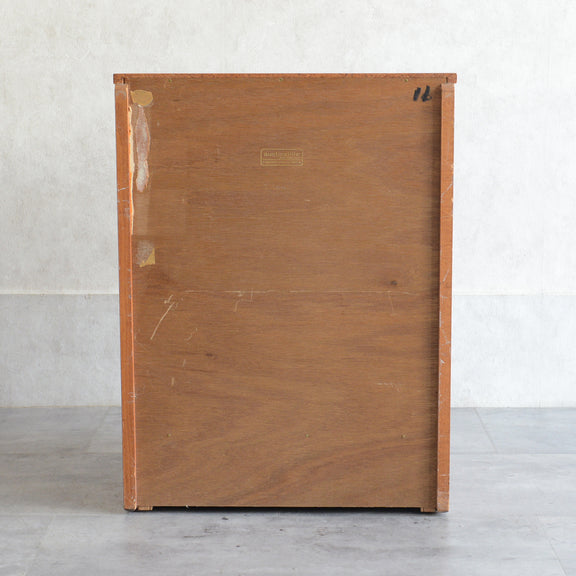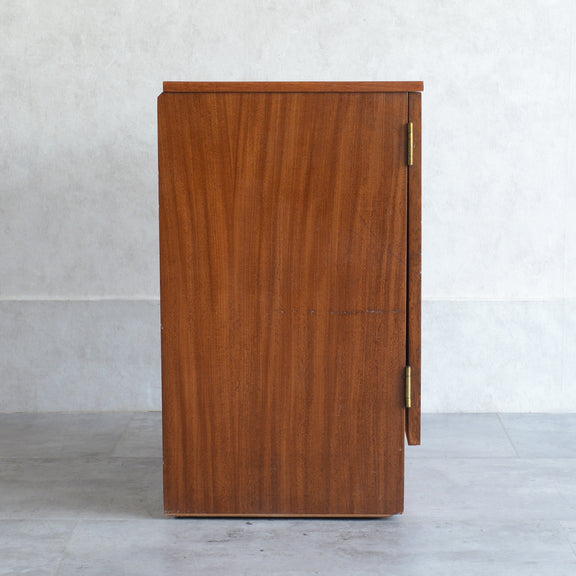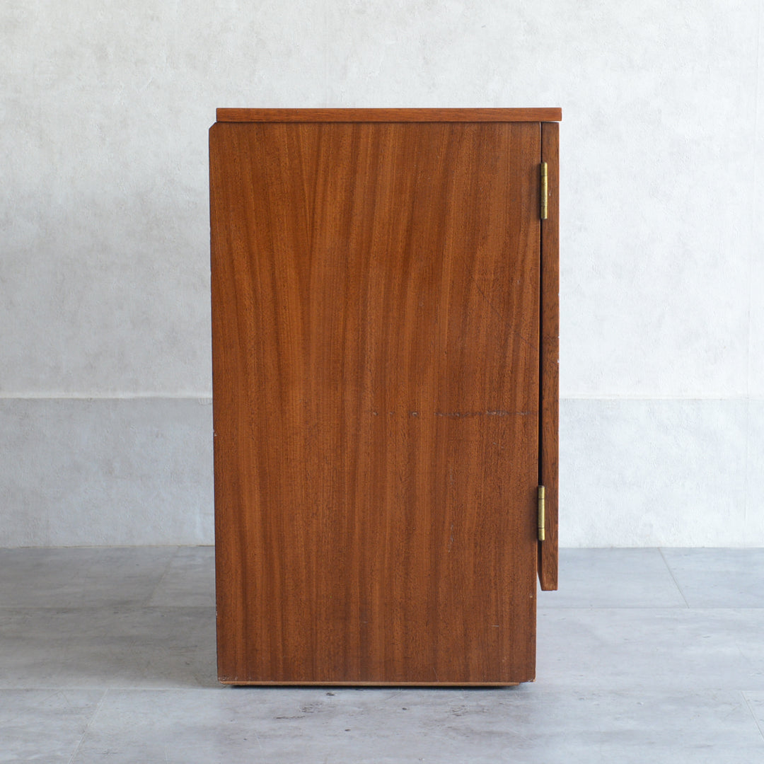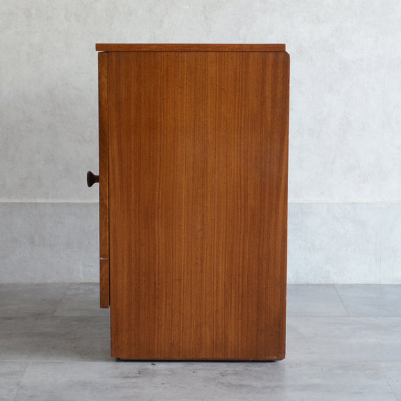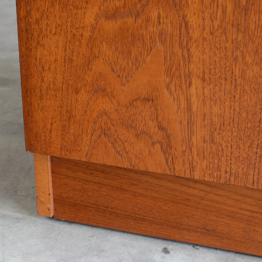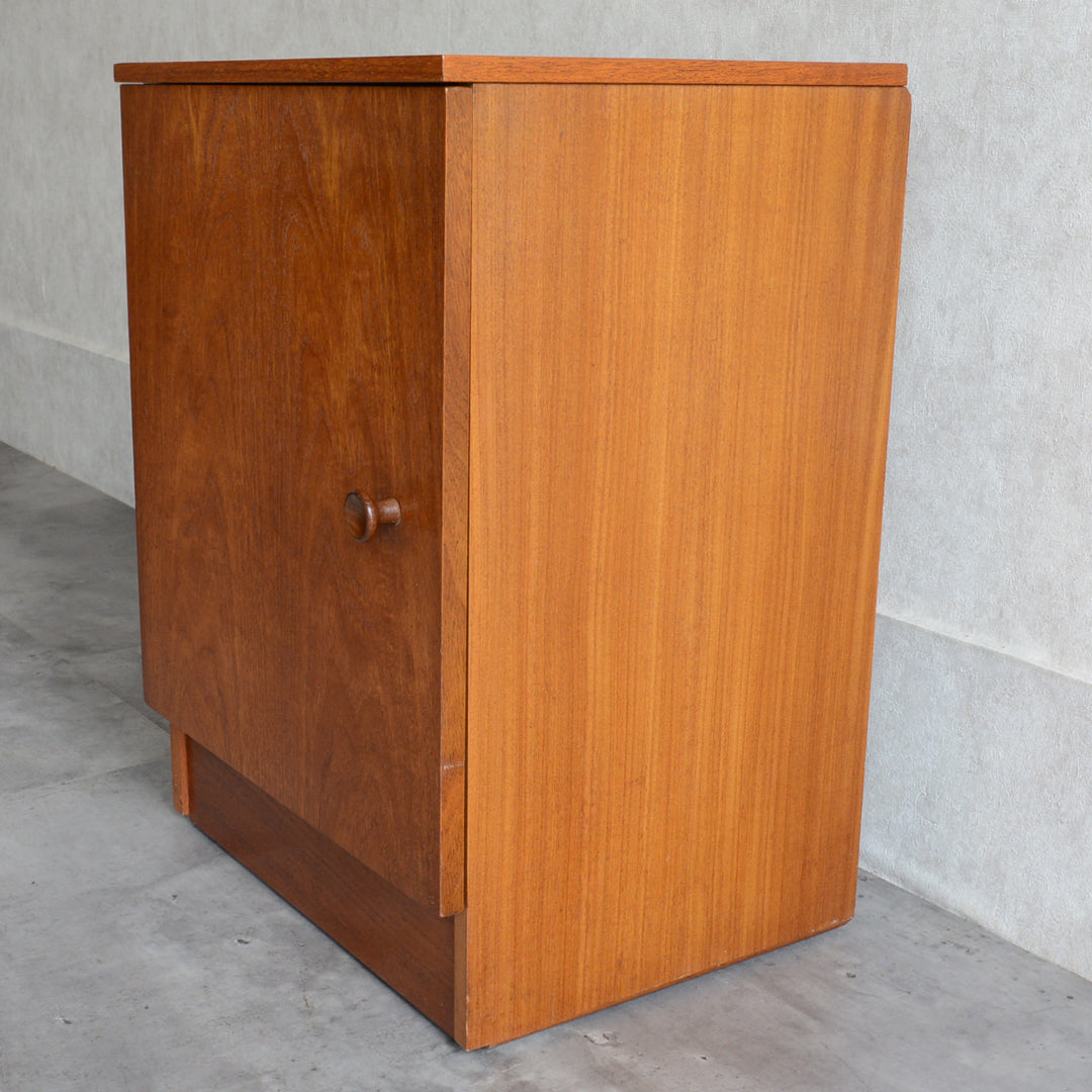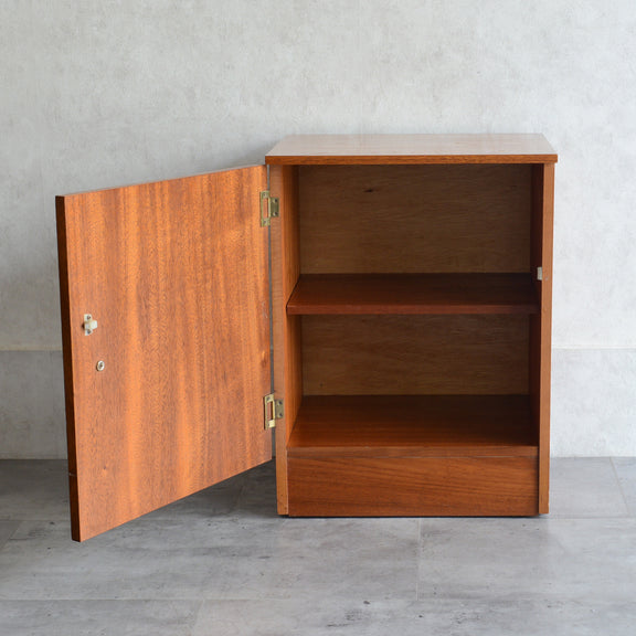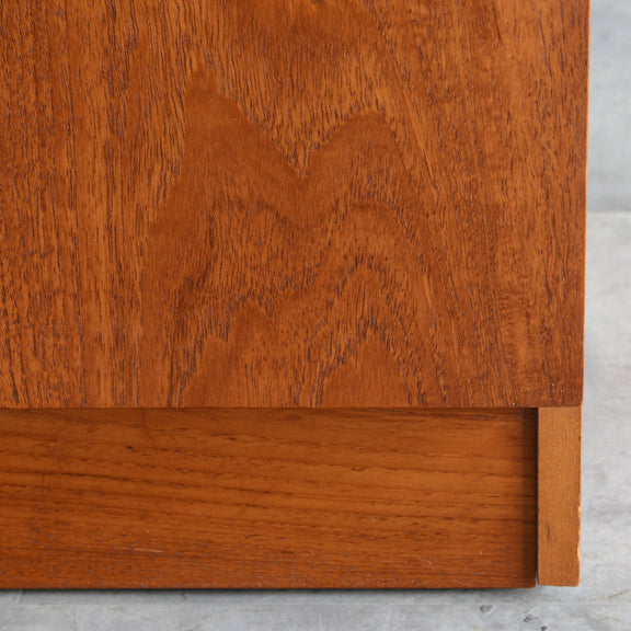 ヴィンテージチークの木目が特に美しく、シンプルなデザインながらも存在感ある佇まいのキャビネット。ナイトテーブルとしてもお勧めです。