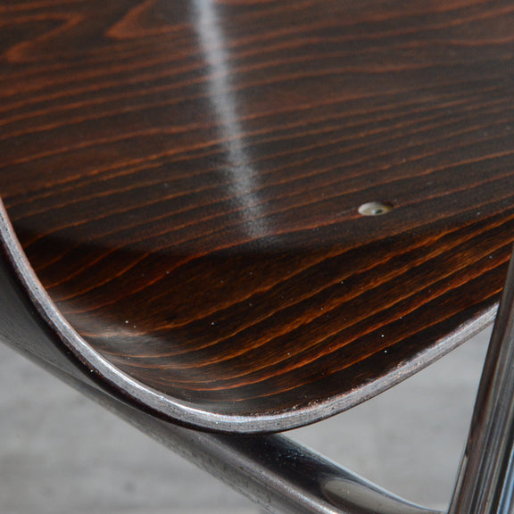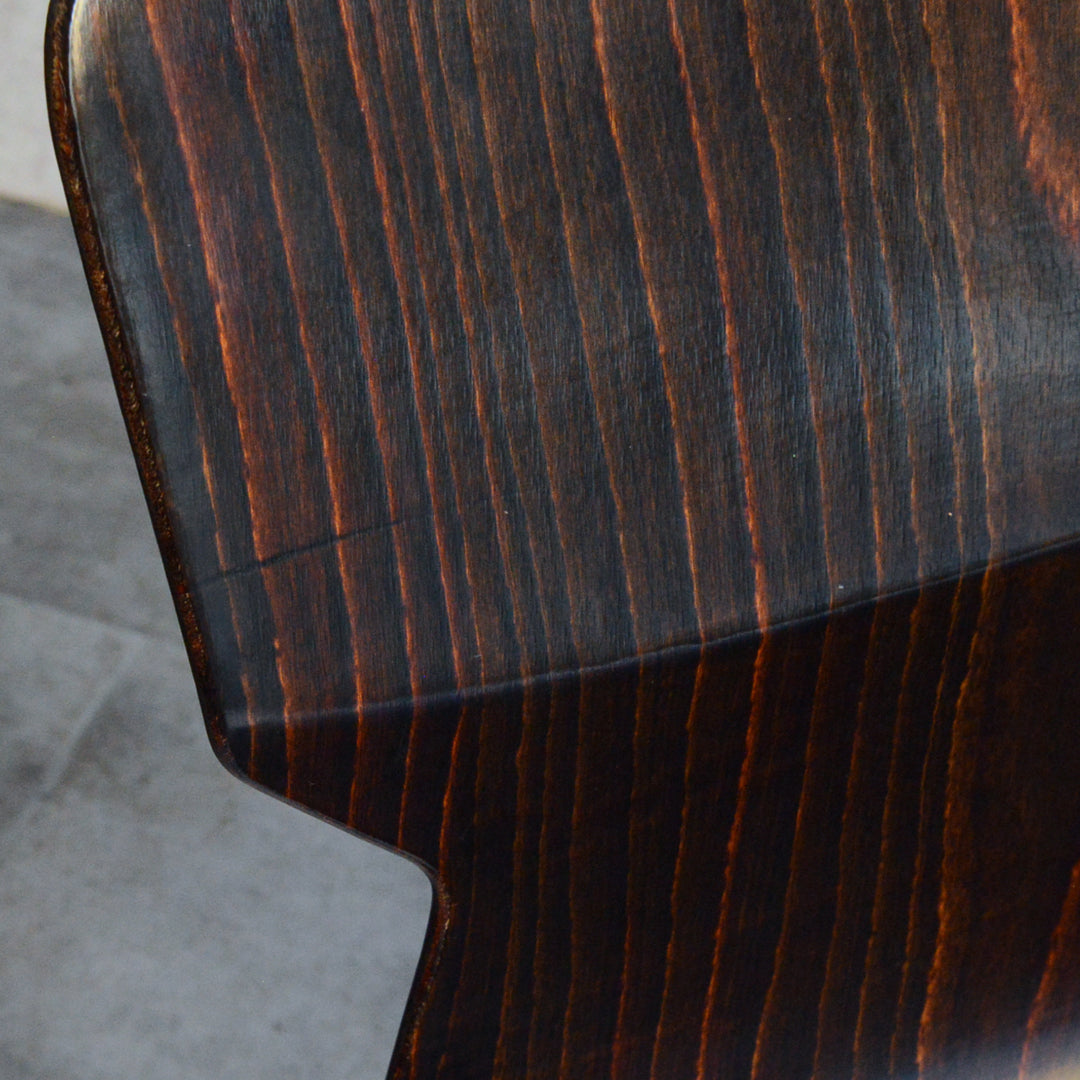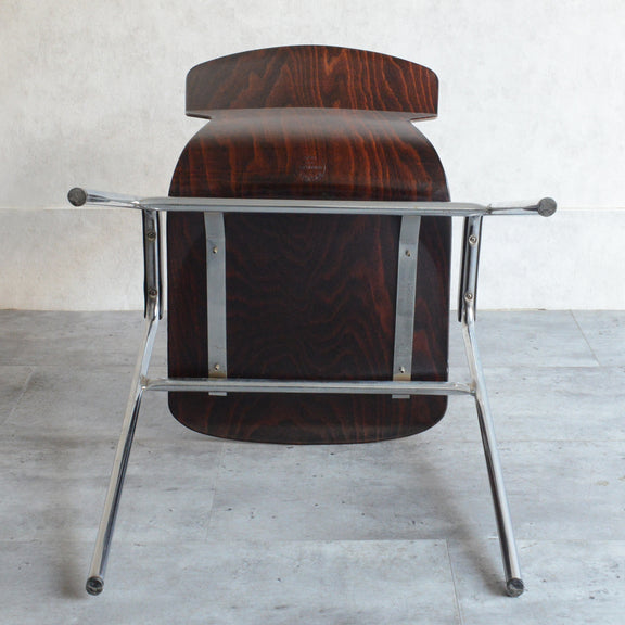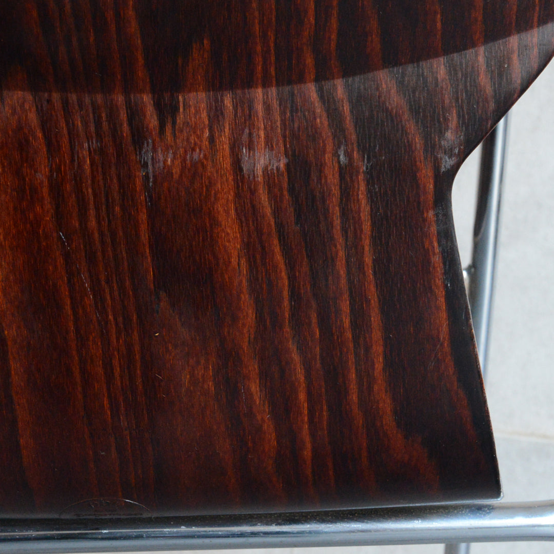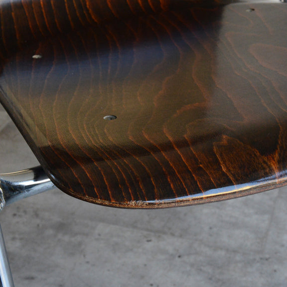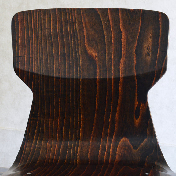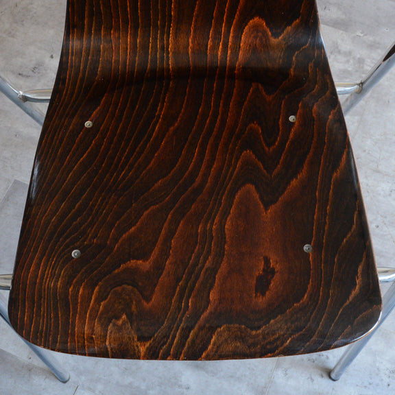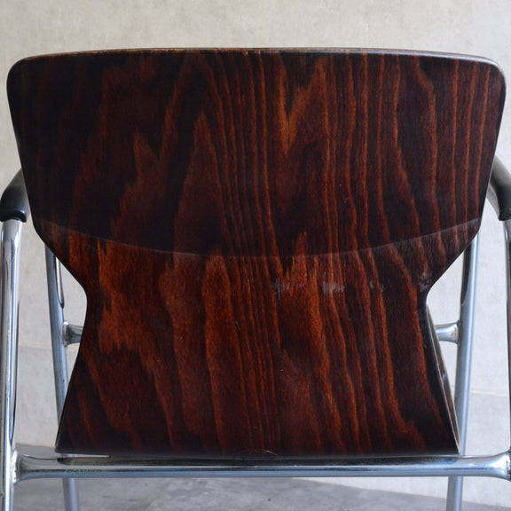 ブナ材に、フェノール樹脂を含浸させたパグウッド(ドイツ製) を使用したスタッキングチェア。アーム付タイプは流通量が少なく、希少なアイテムです。