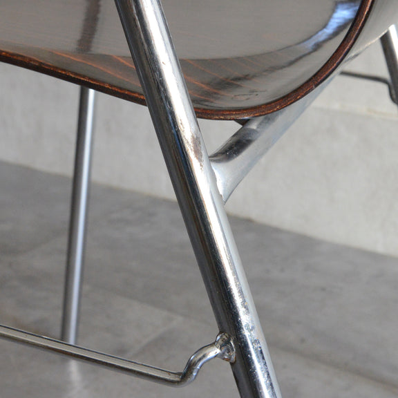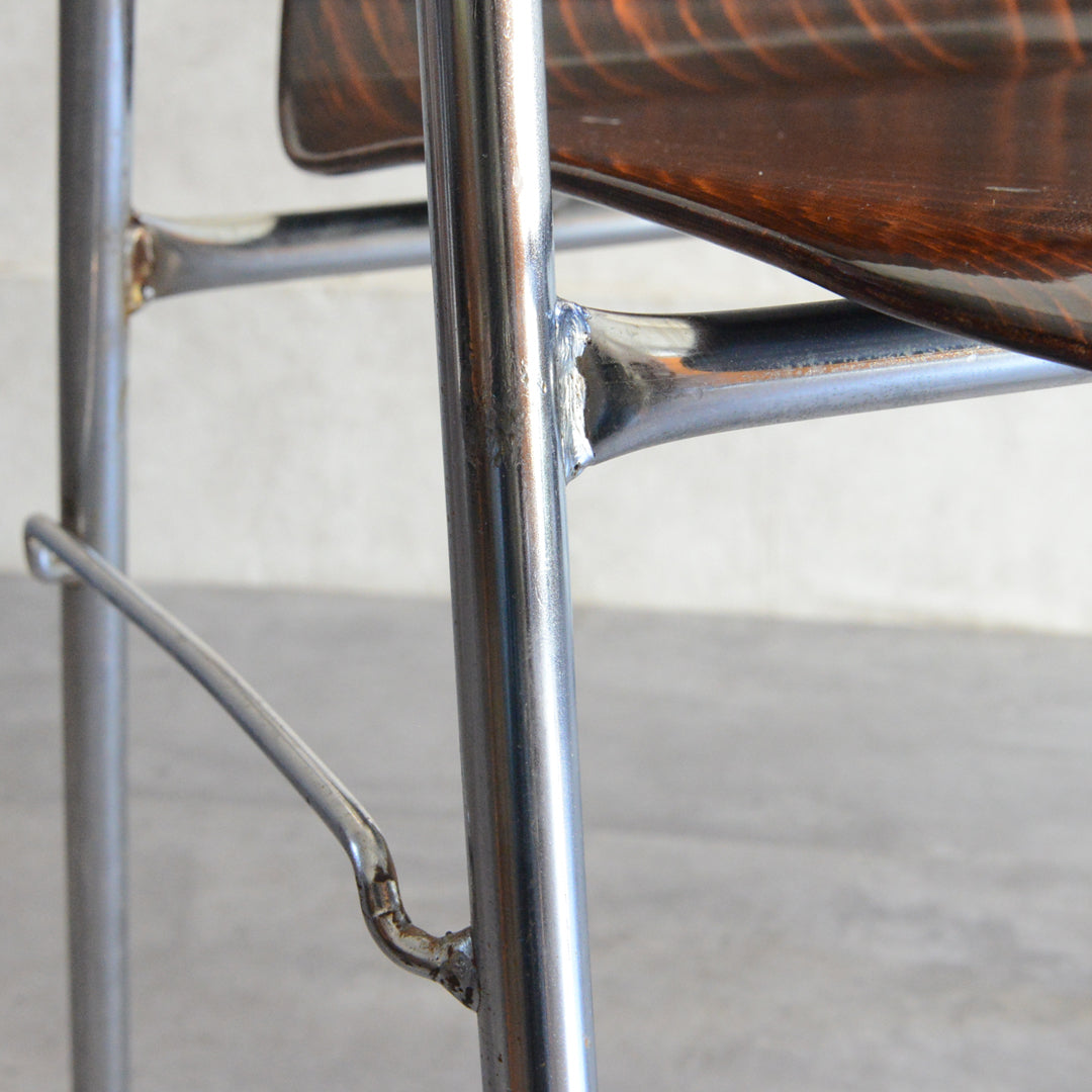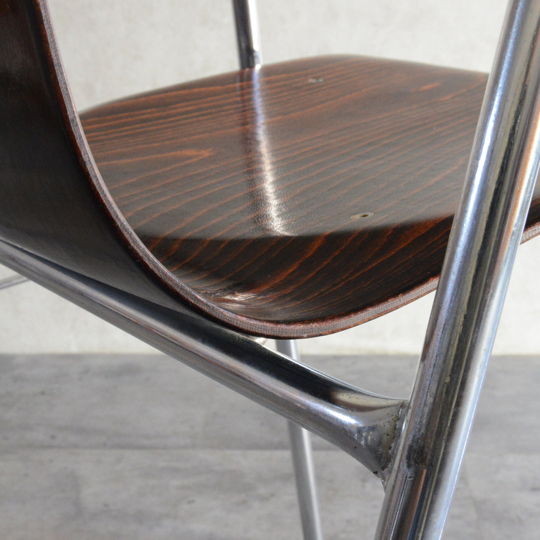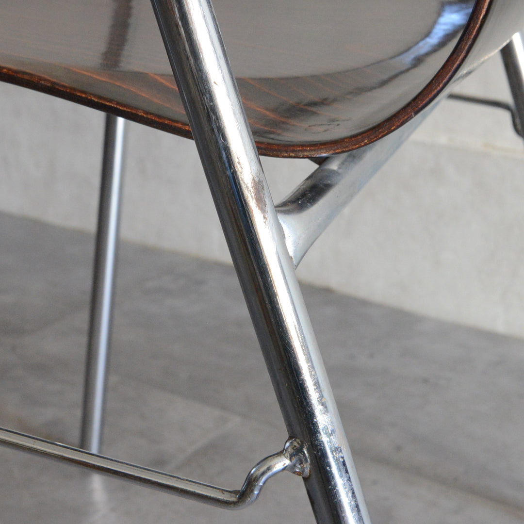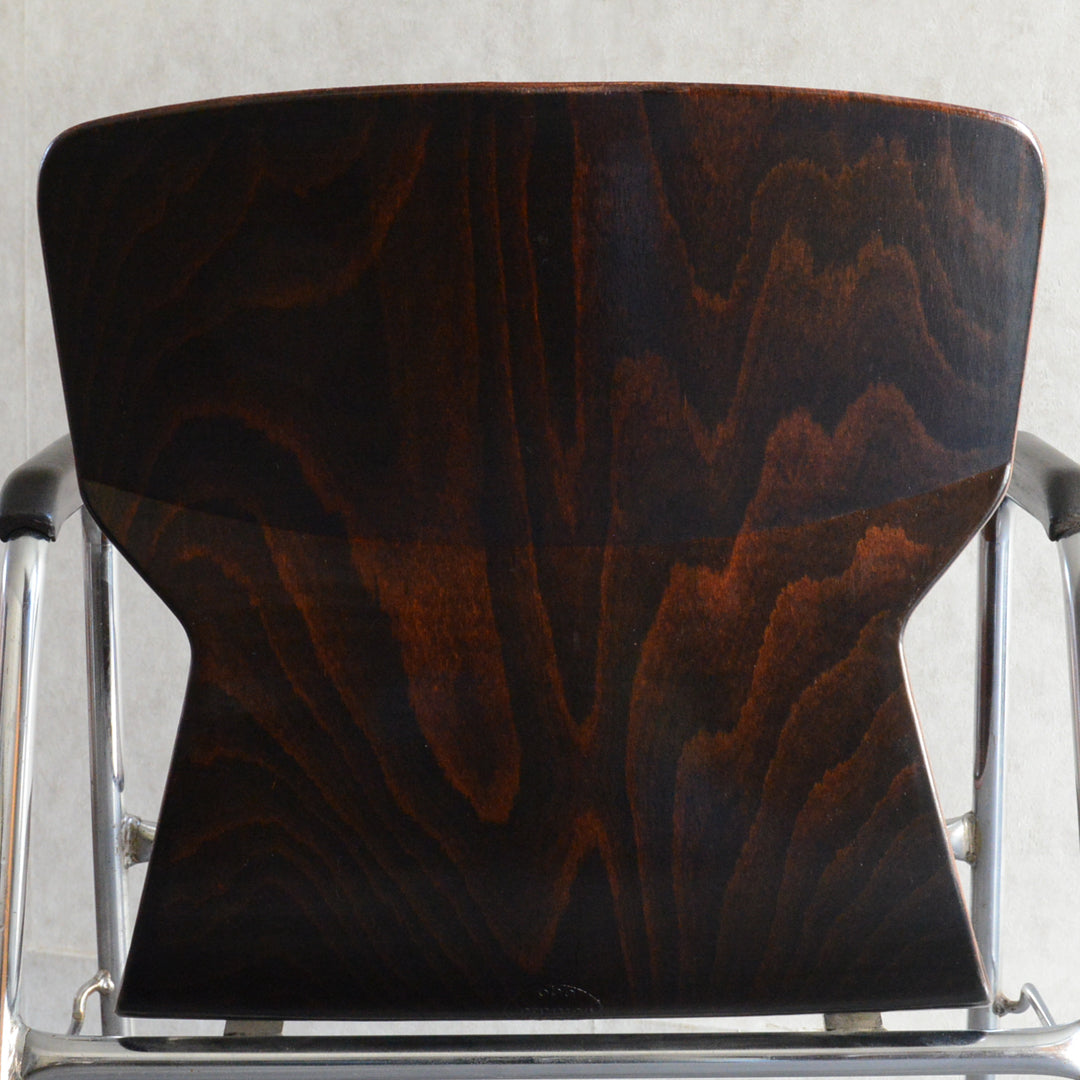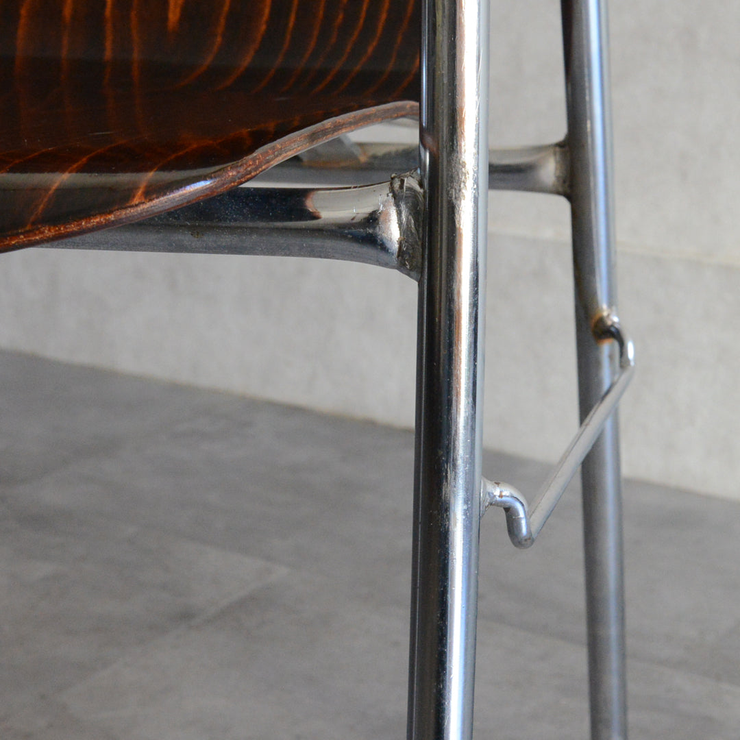 ブナ材に、フェノール樹脂を含浸させたパグウッド(ドイツ製) を使用したスタッキングチェア。アーム付タイプは流通量が少なく、希少なアイテムです。