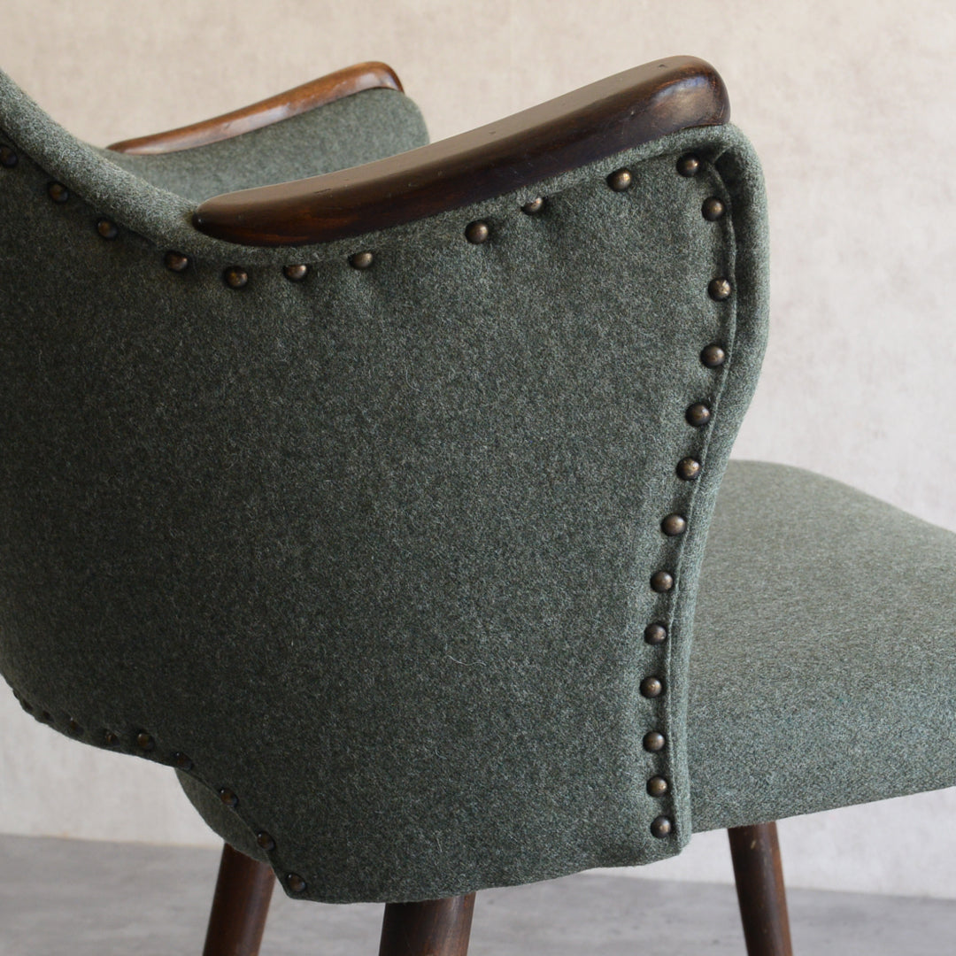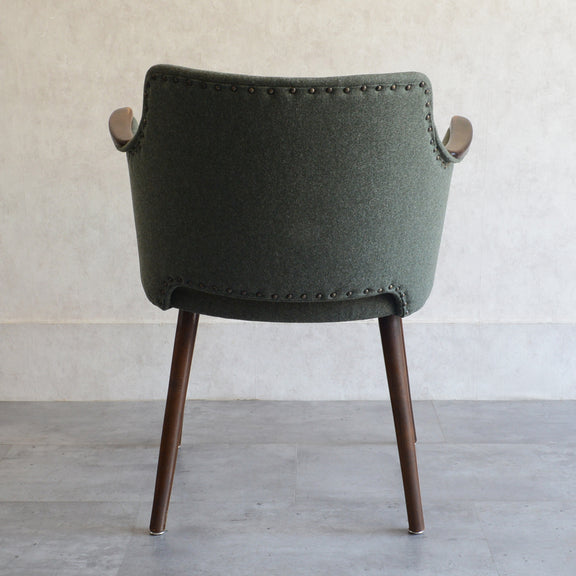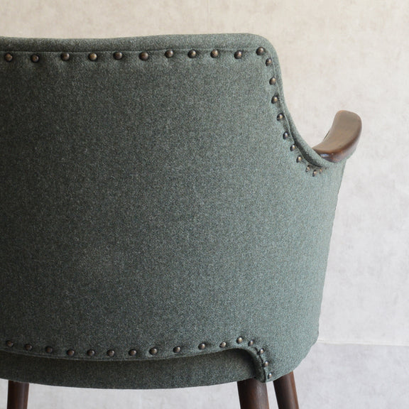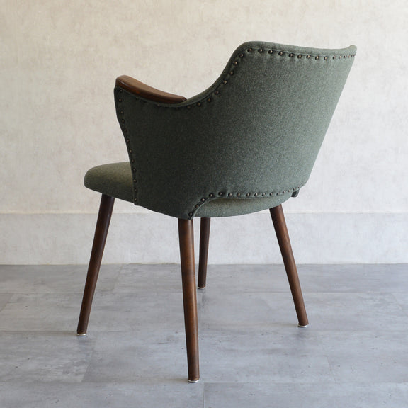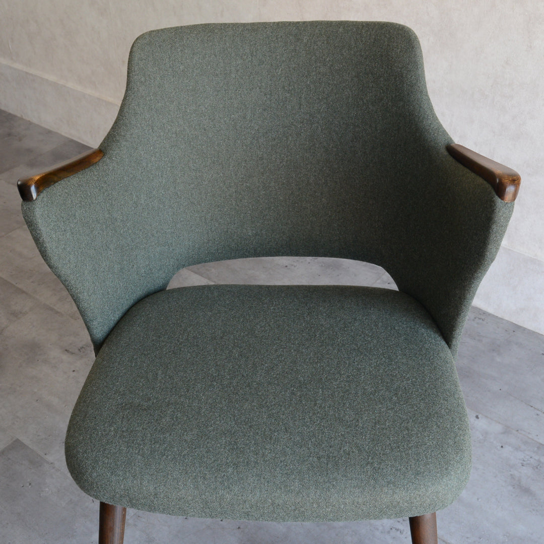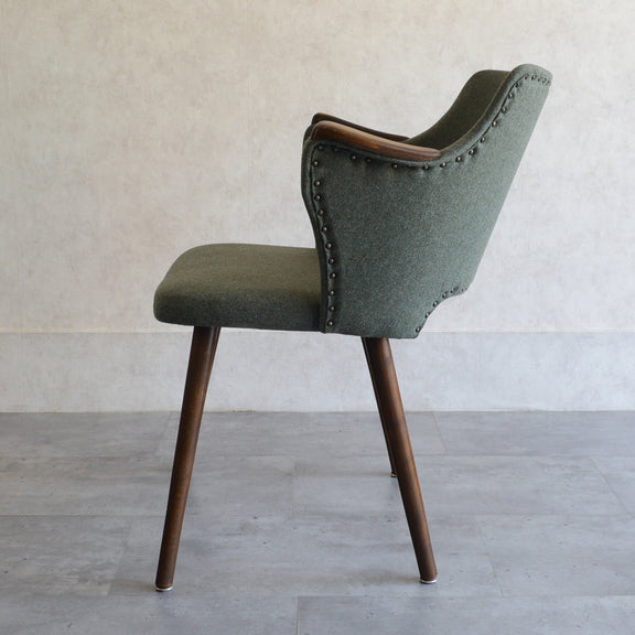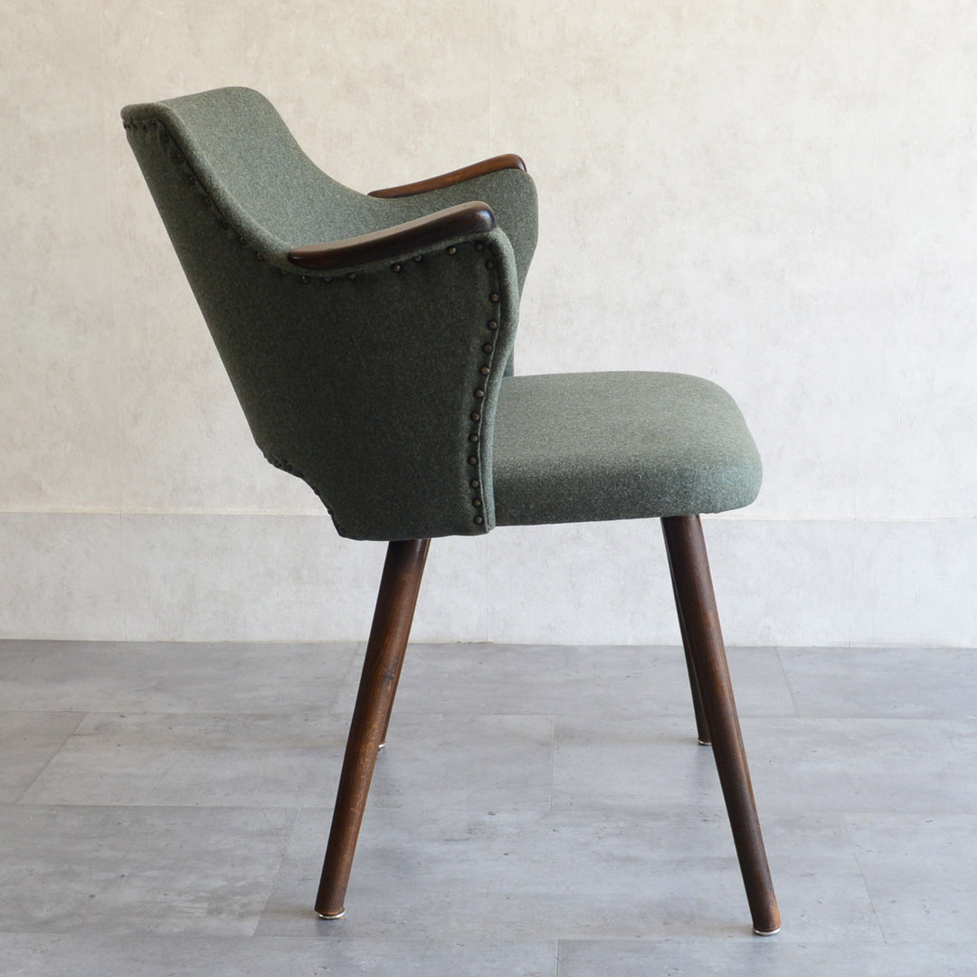 座面は落ち着いたモスグリーンのファブリックで新たに張替済です。