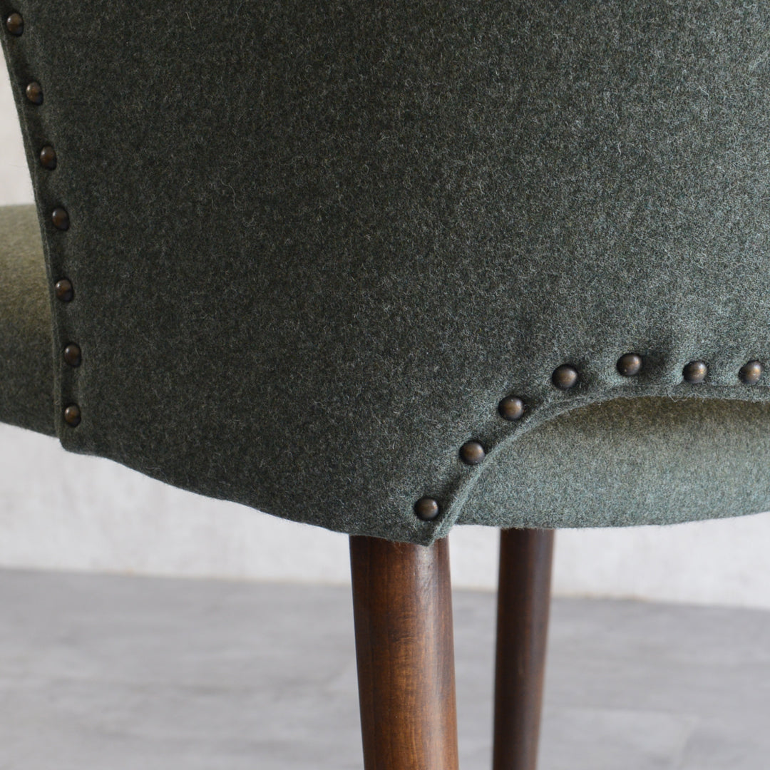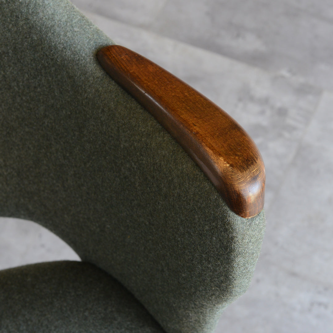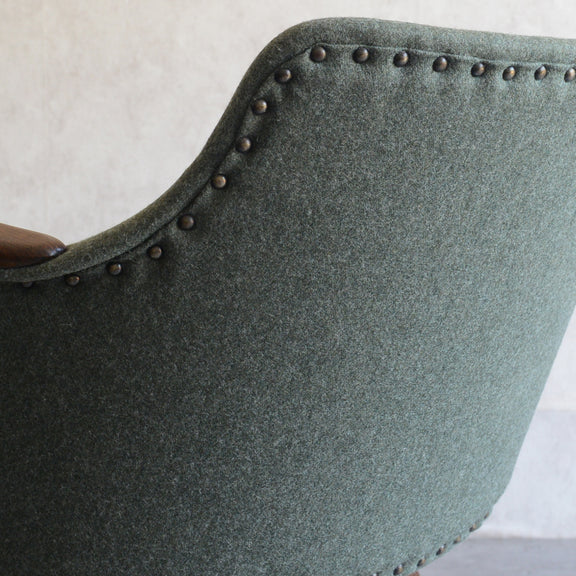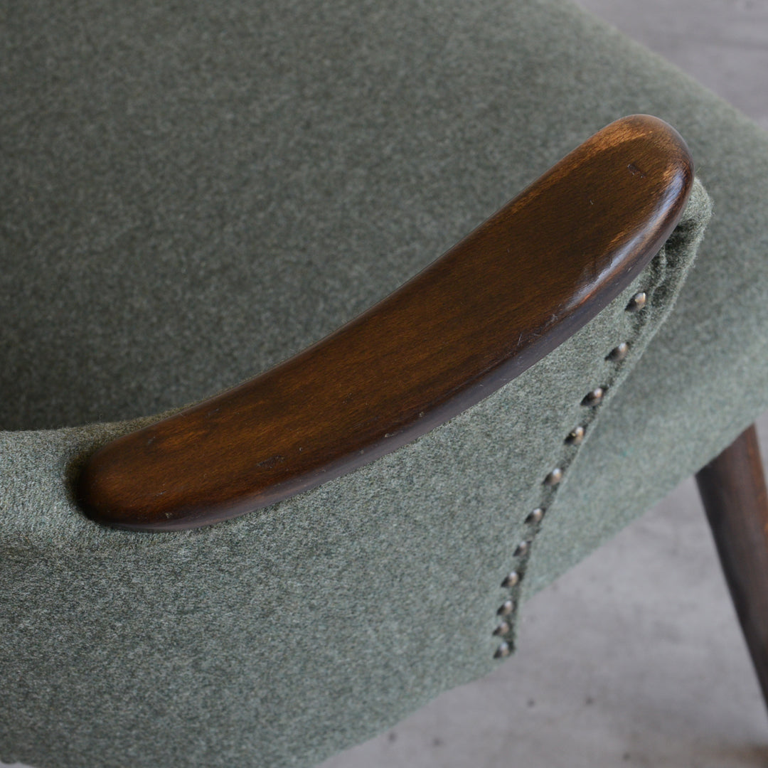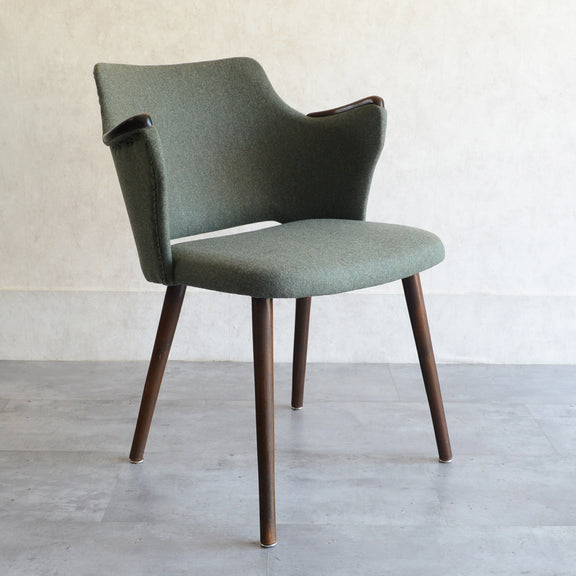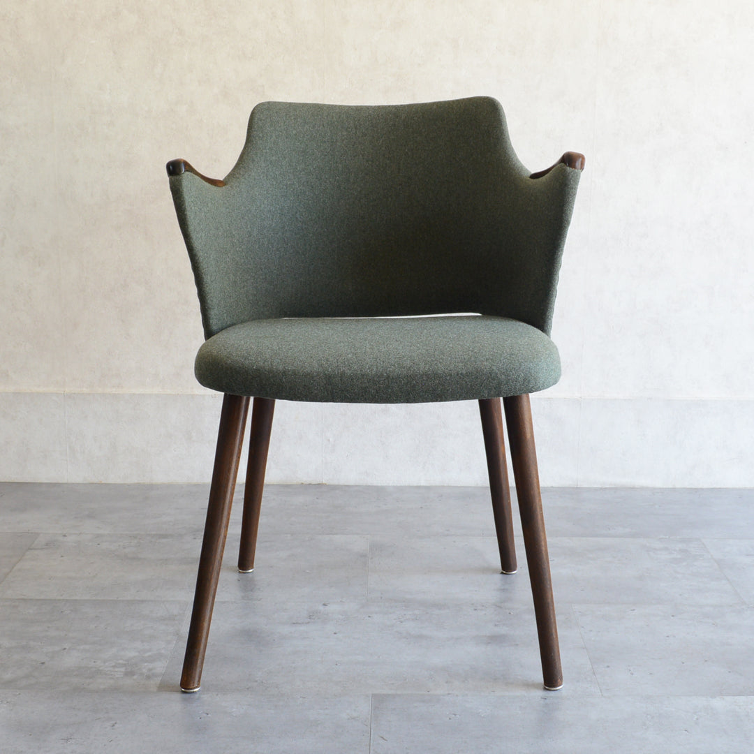 座面は落ち着いたモスグリーンのファブリックで新たに張替済です。