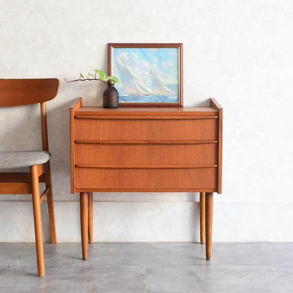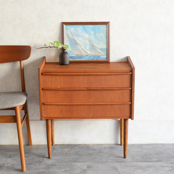 滑らかなアールを描いた真一文字の把手とすらりとした丸脚がアクセントとなっています。真一文字の把手は人気の為、近年なかなか出会えない希少なデザインとなってきました。