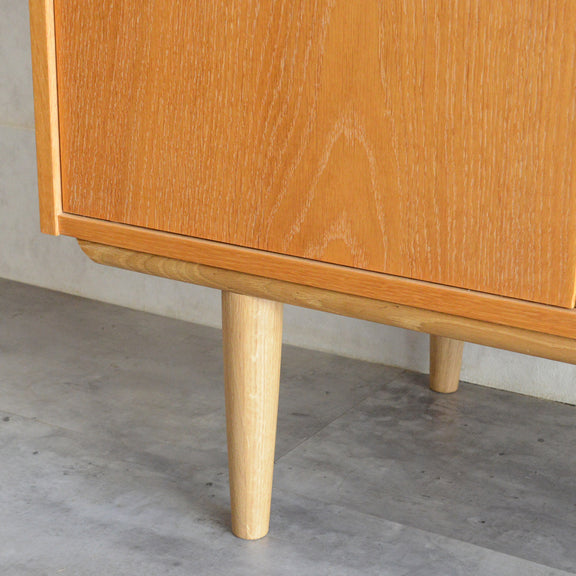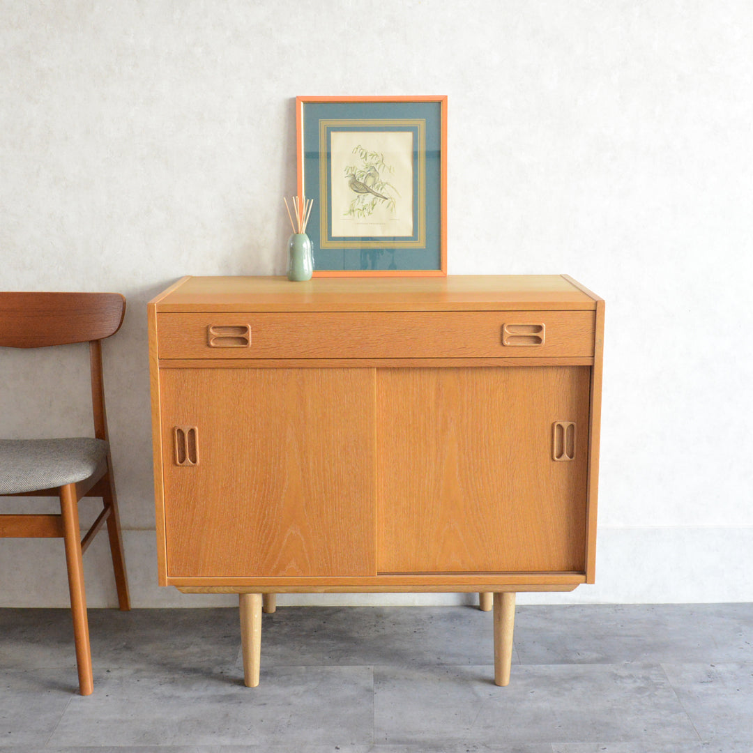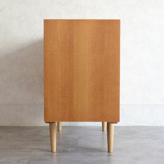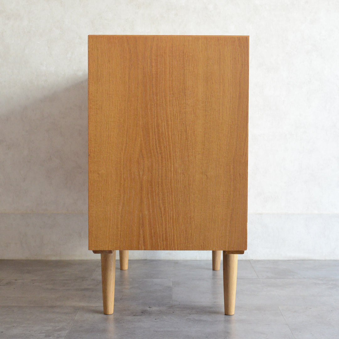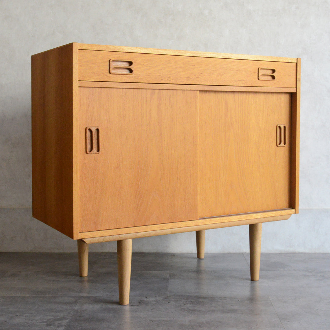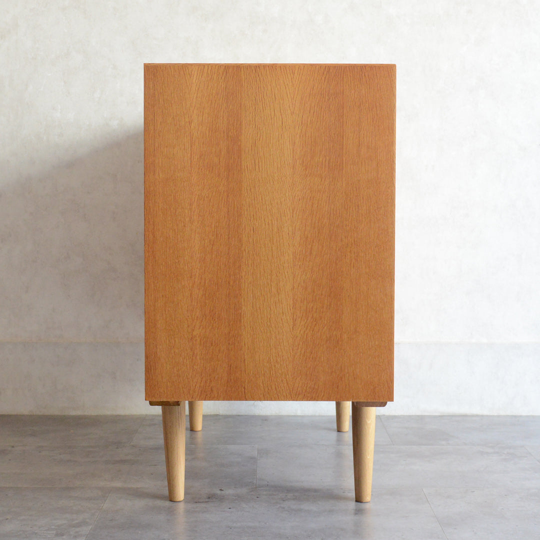 北欧らしい温かみあるスクエアの把手が印象的なキャビネット。