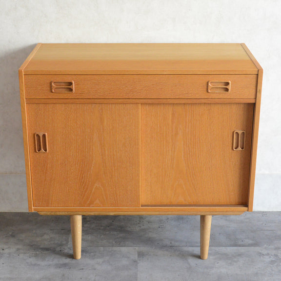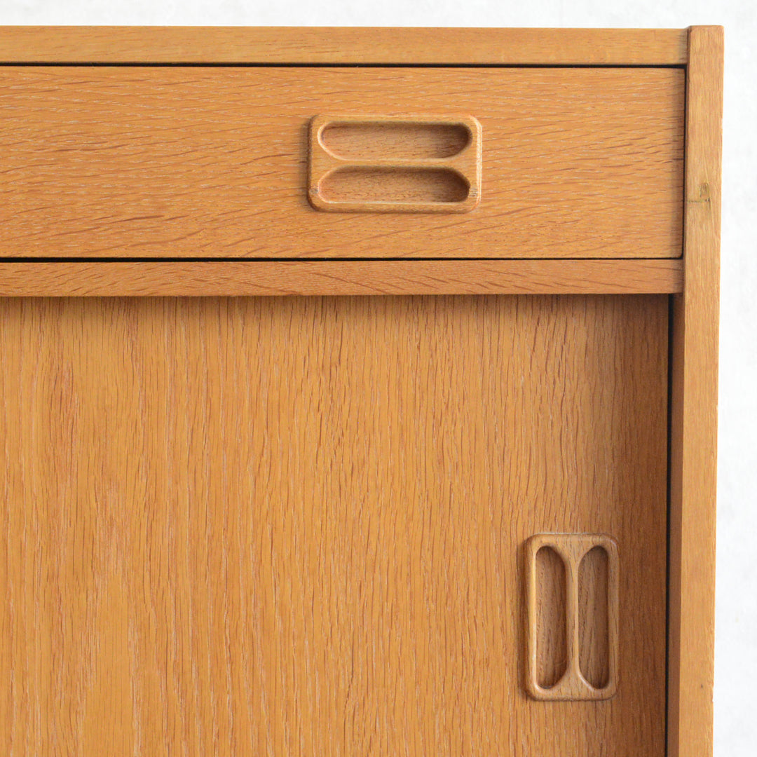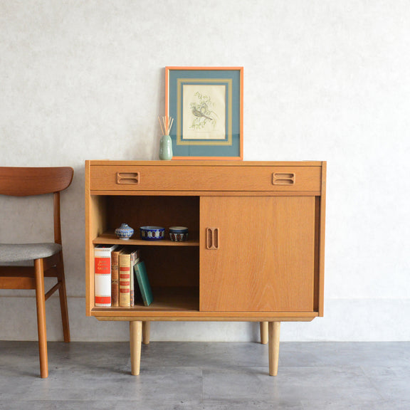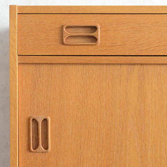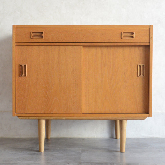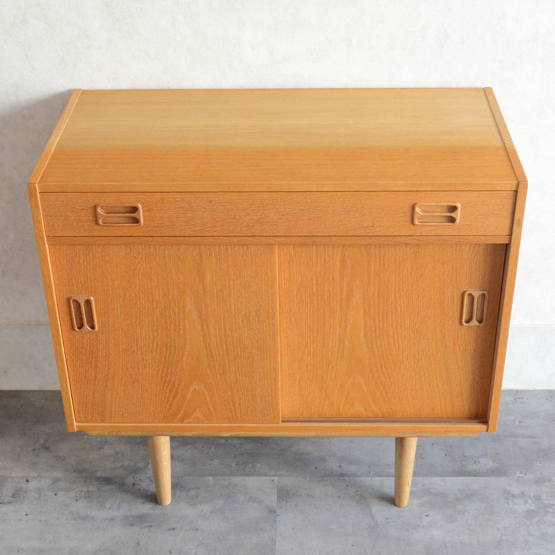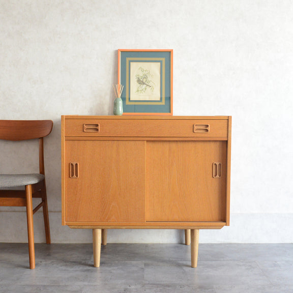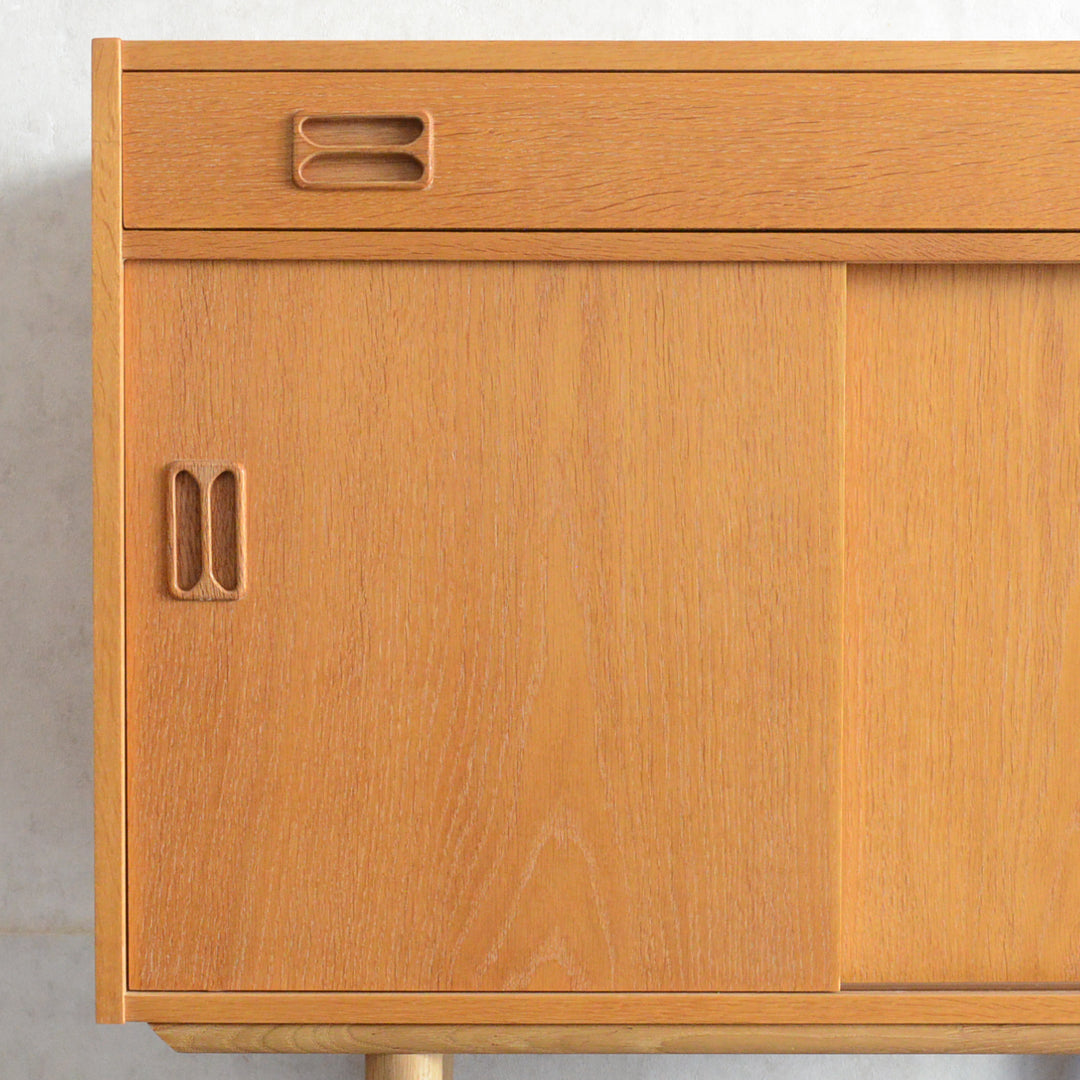 北欧らしい温かみあるスクエアの把手が印象的なキャビネット。