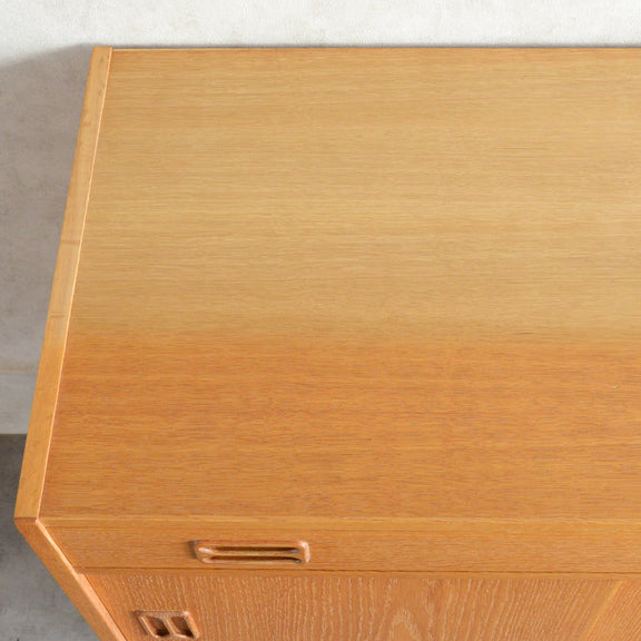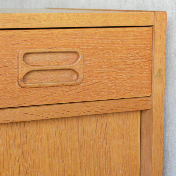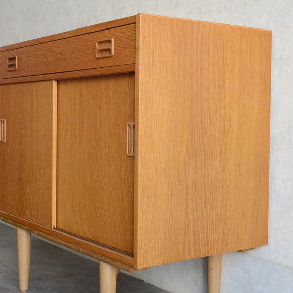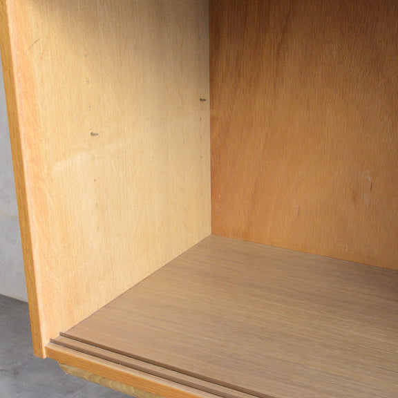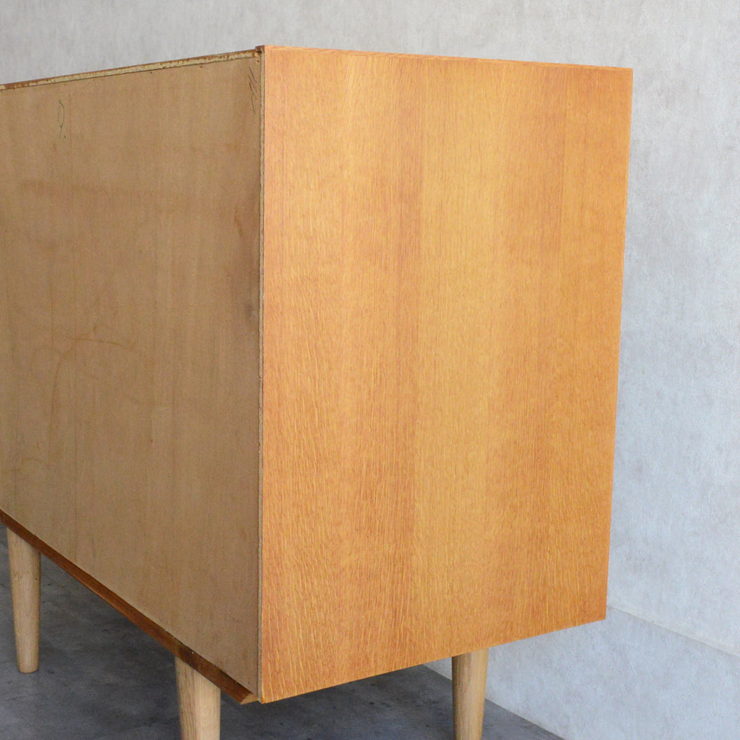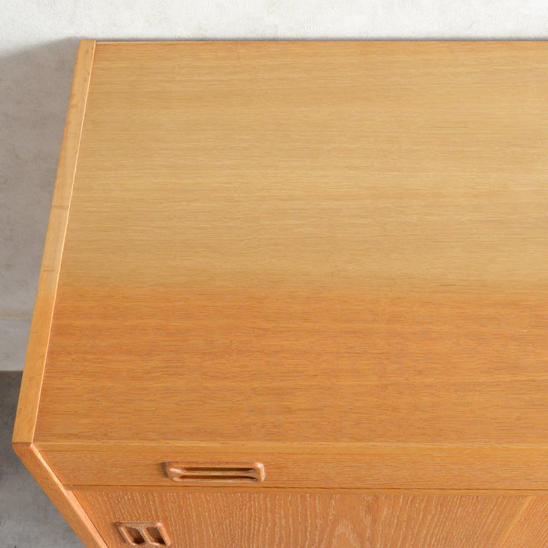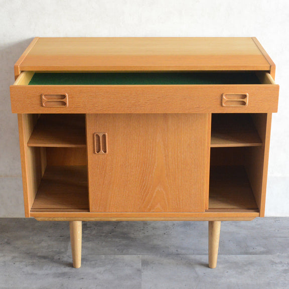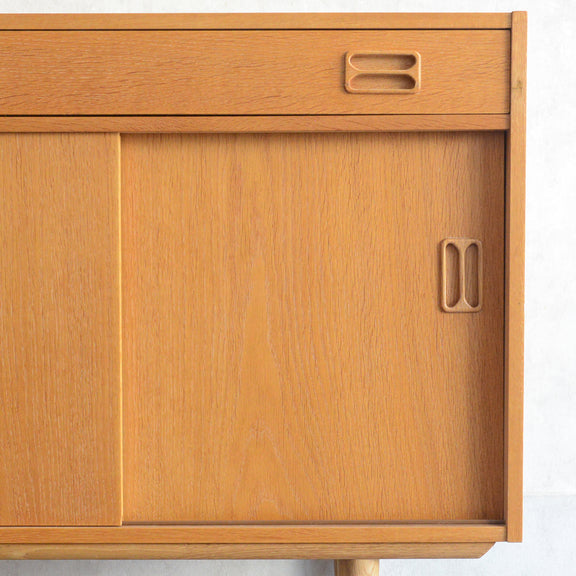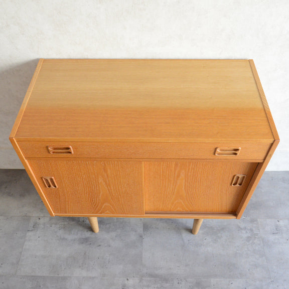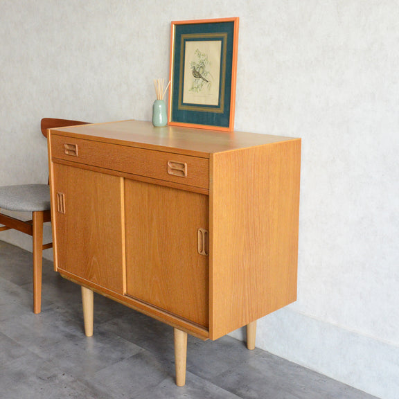 北欧らしい温かみあるスクエアの把手が印象的なキャビネット。