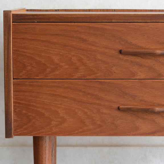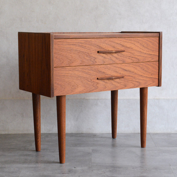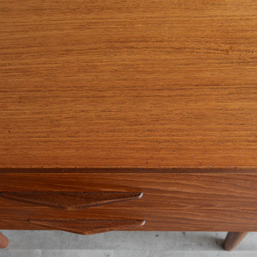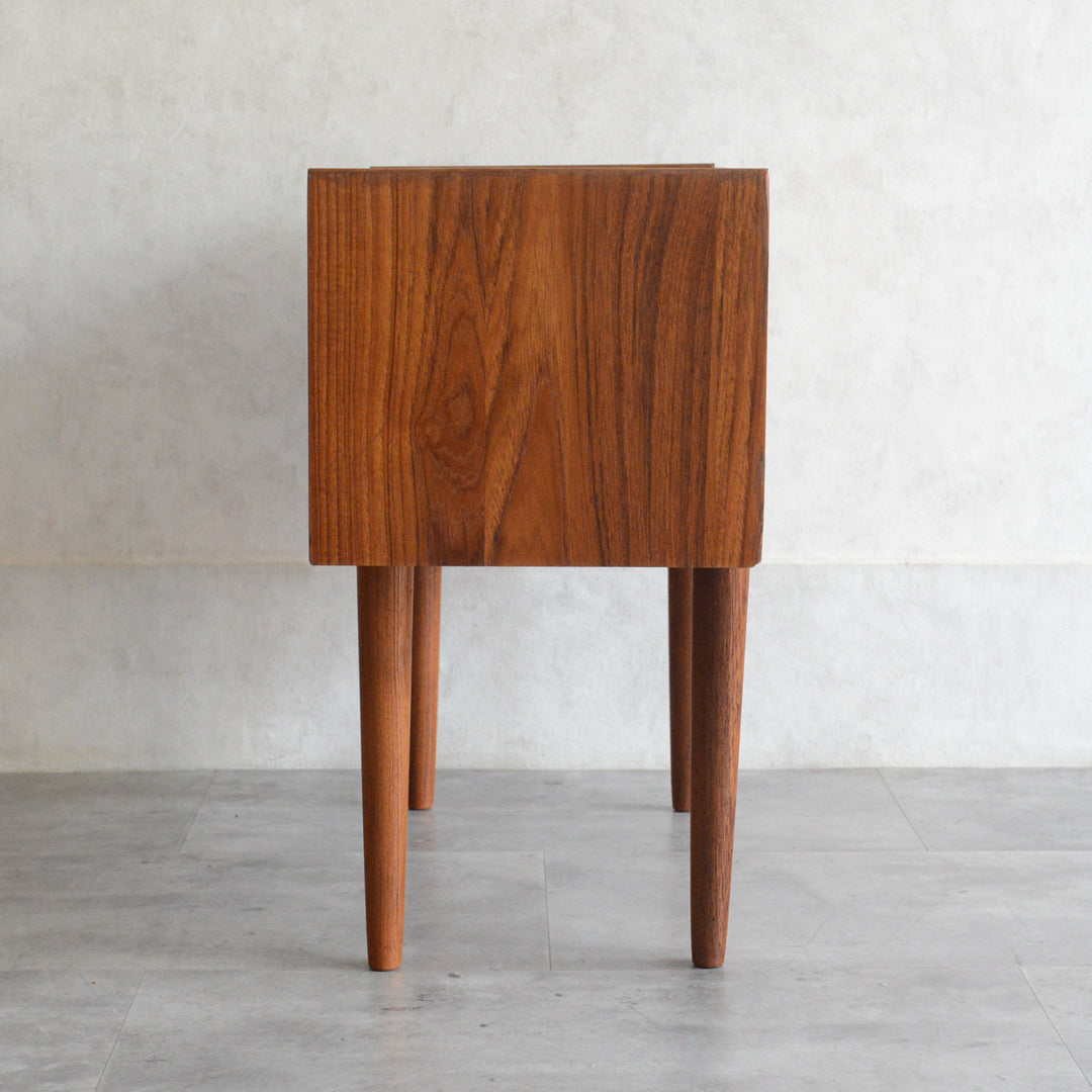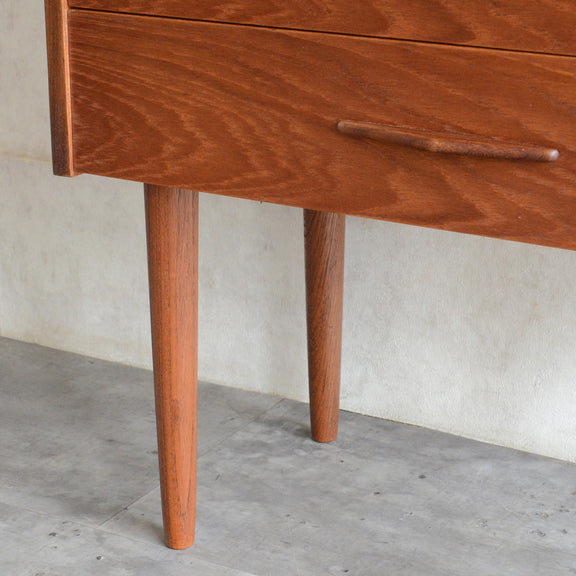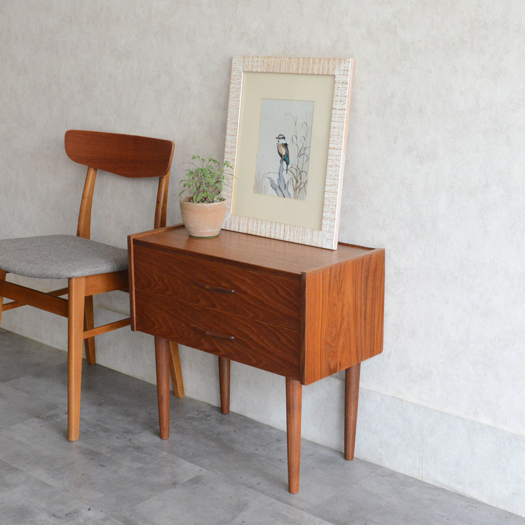 無垢のチーク材を使した丸脚と柔らかな曲線を描いた把手が北欧らしいデザイン。