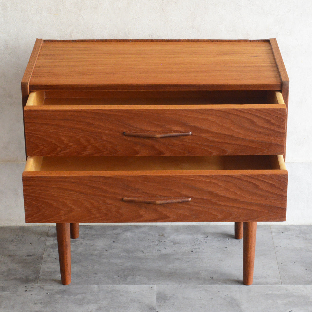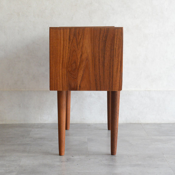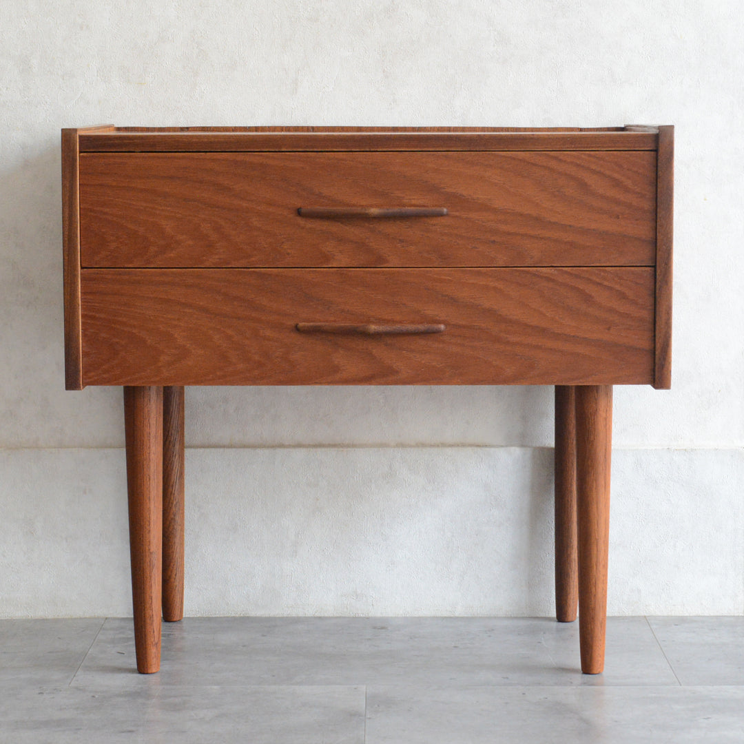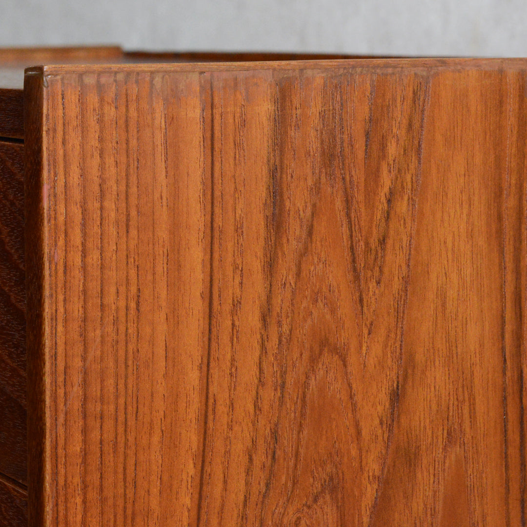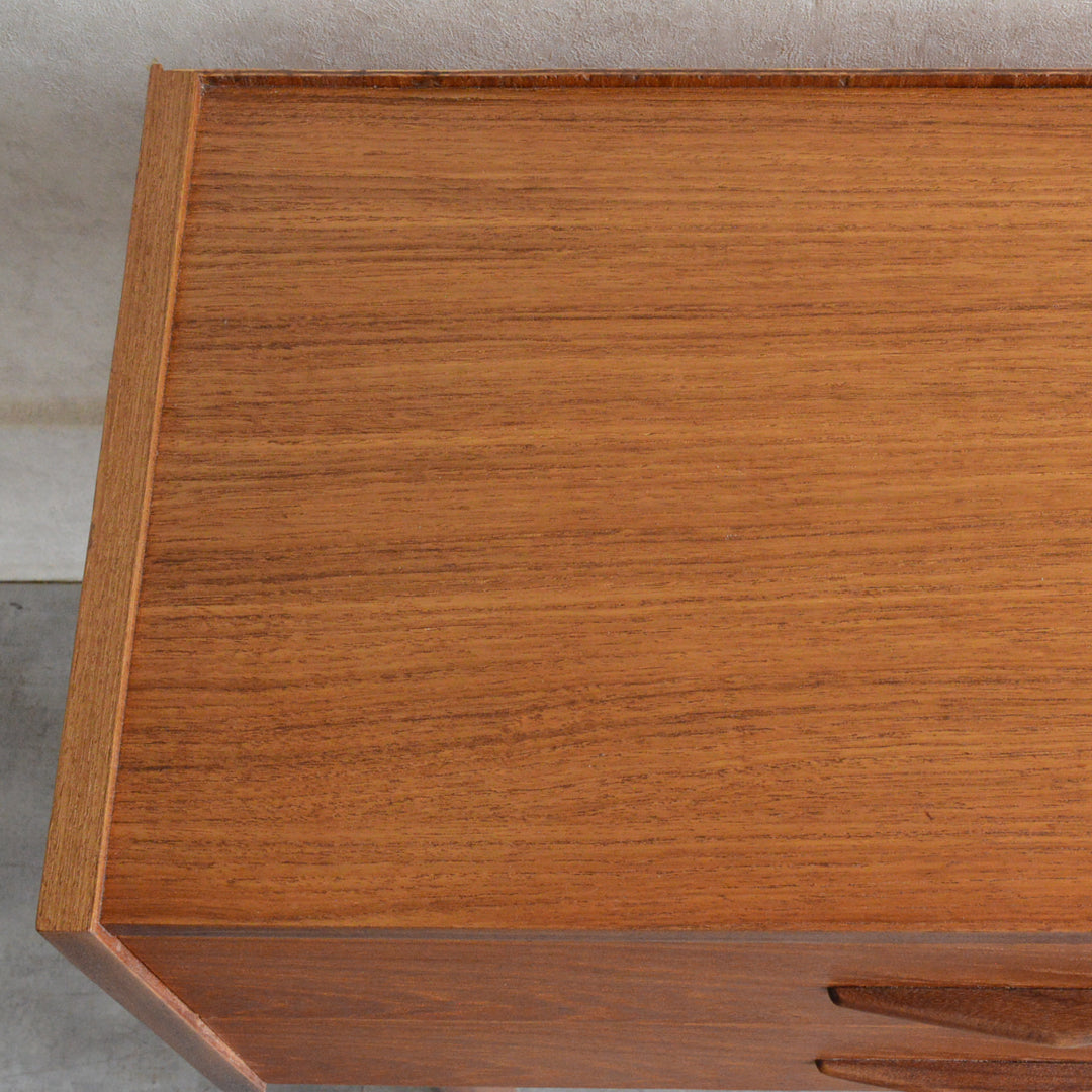無垢のチーク材を使した丸脚と柔らかな曲線を描いた把手が北欧らしいデザイン。