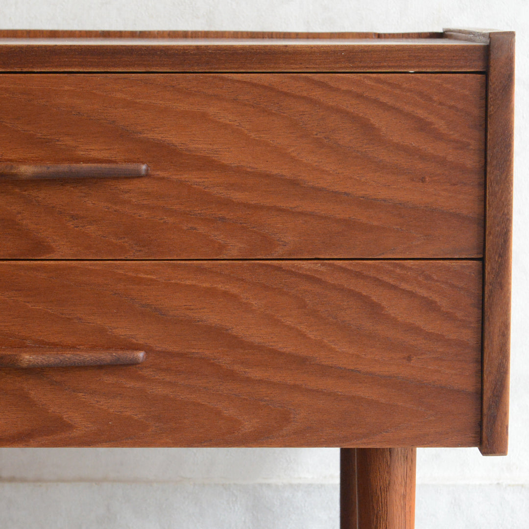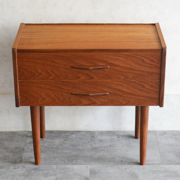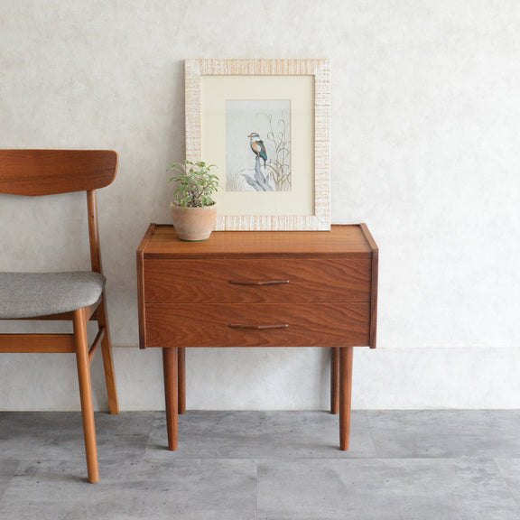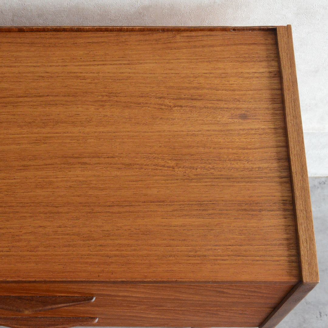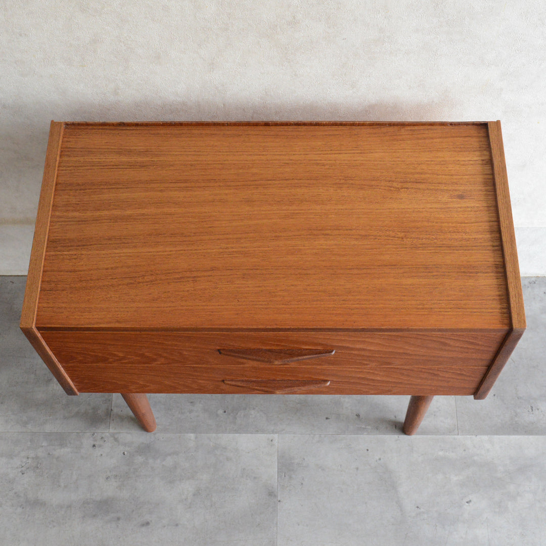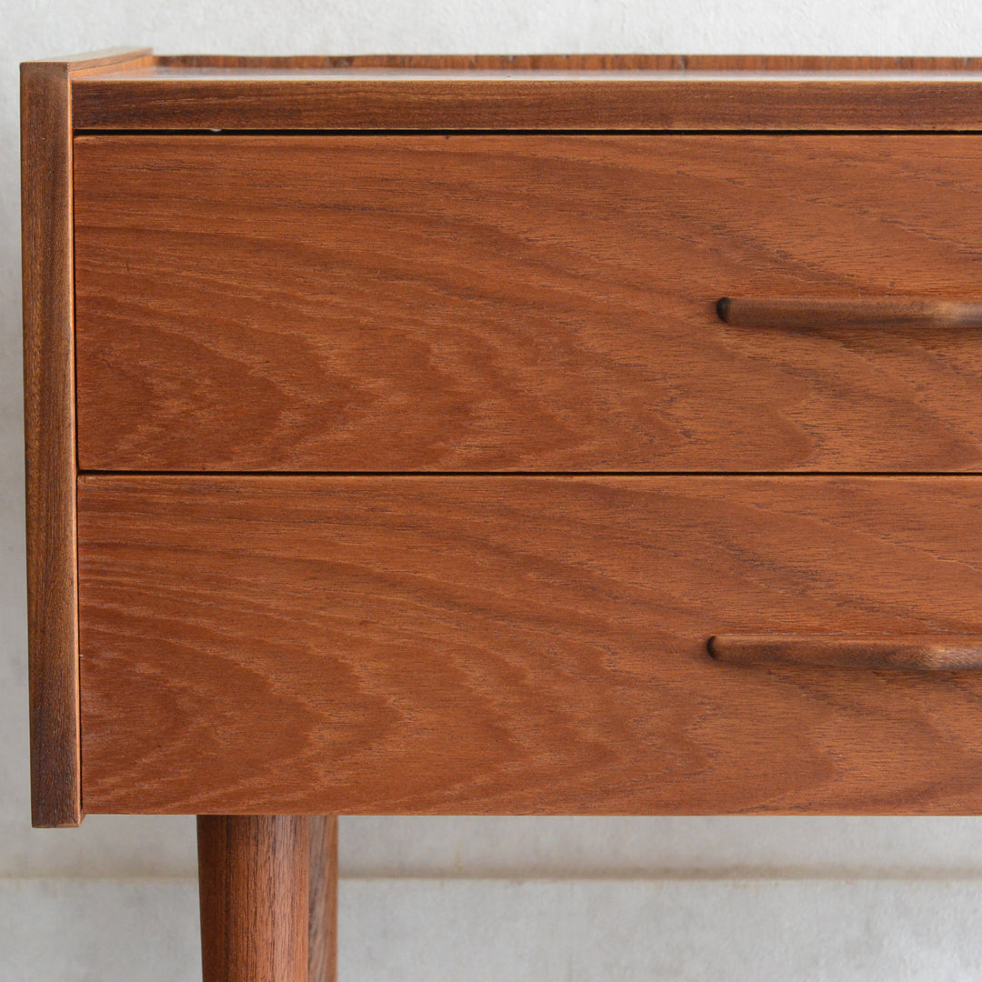無垢のチーク材を使した丸脚と柔らかな曲線を描いた把手が北欧らしいデザイン。