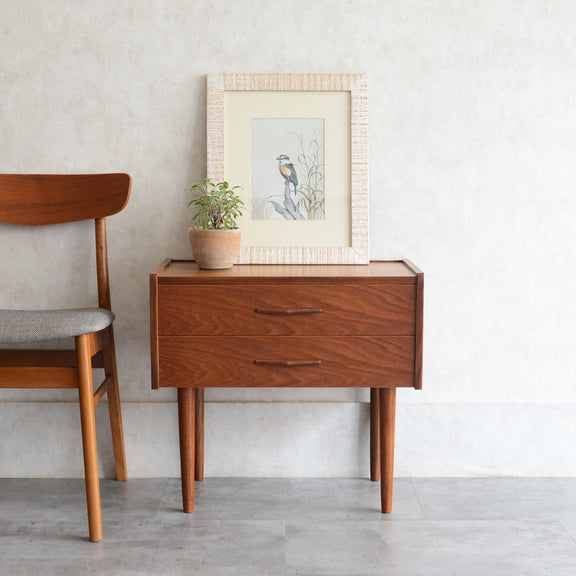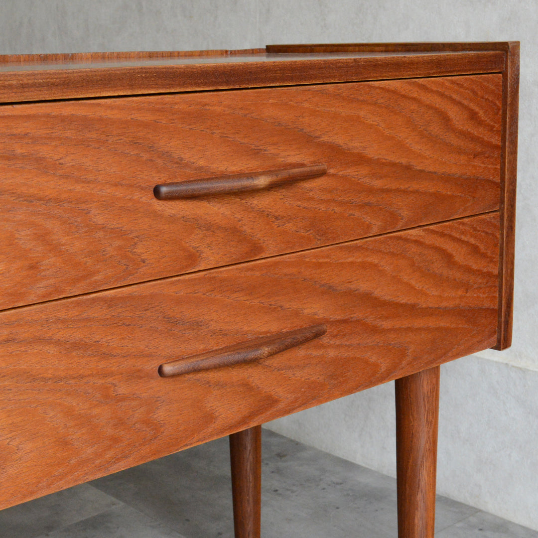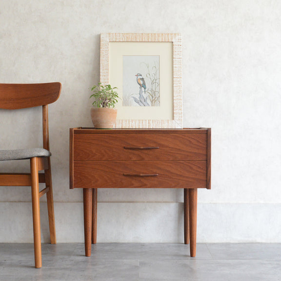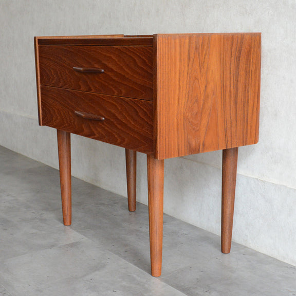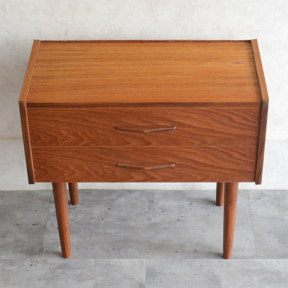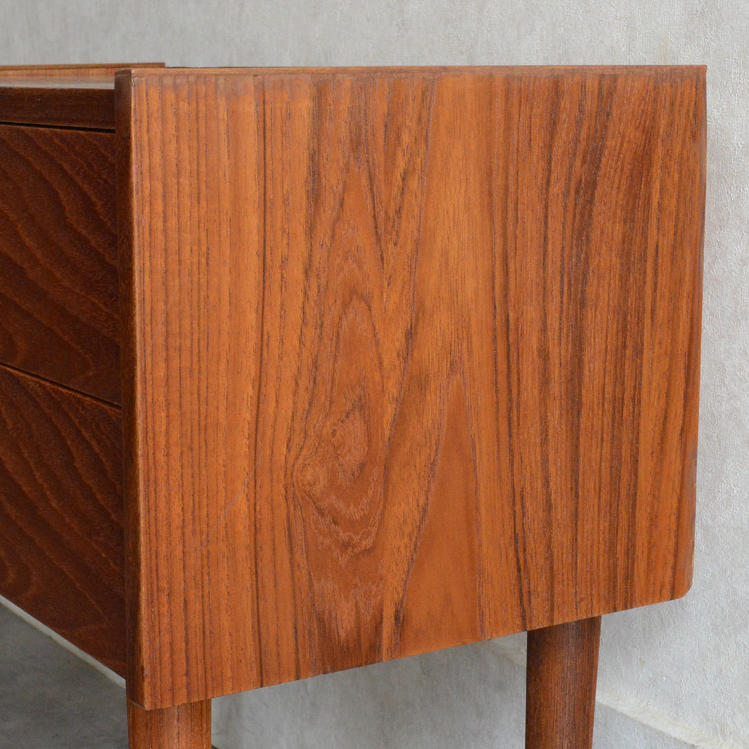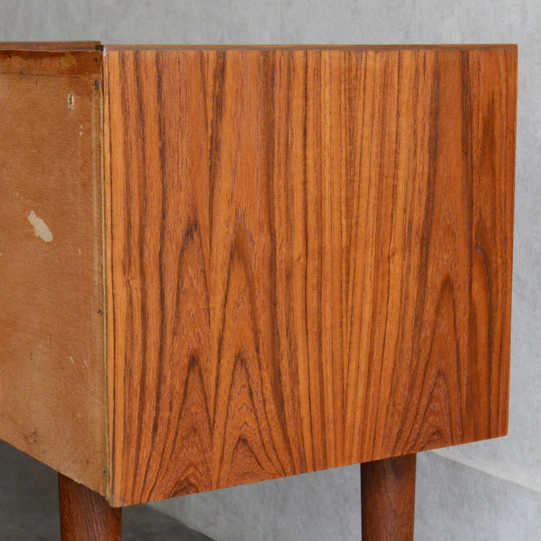 無垢のチーク材を使した丸脚と柔らかな曲線を描いた把手が北欧らしいデザイン。