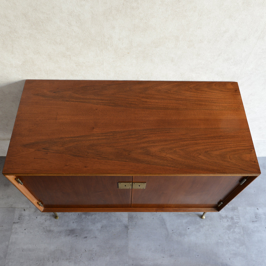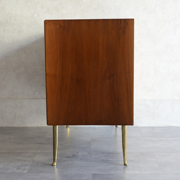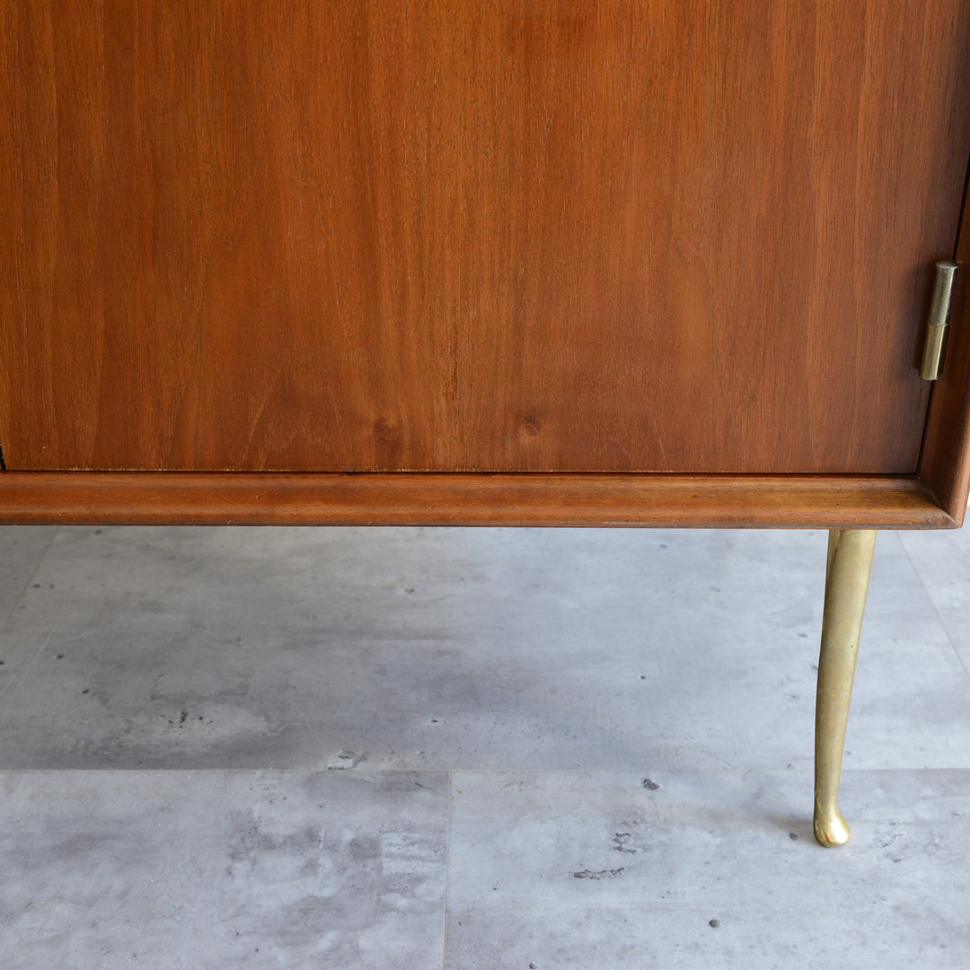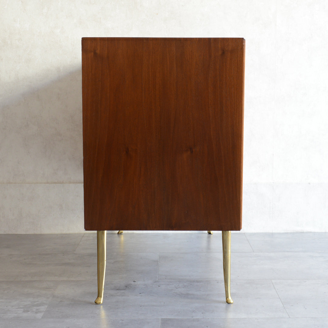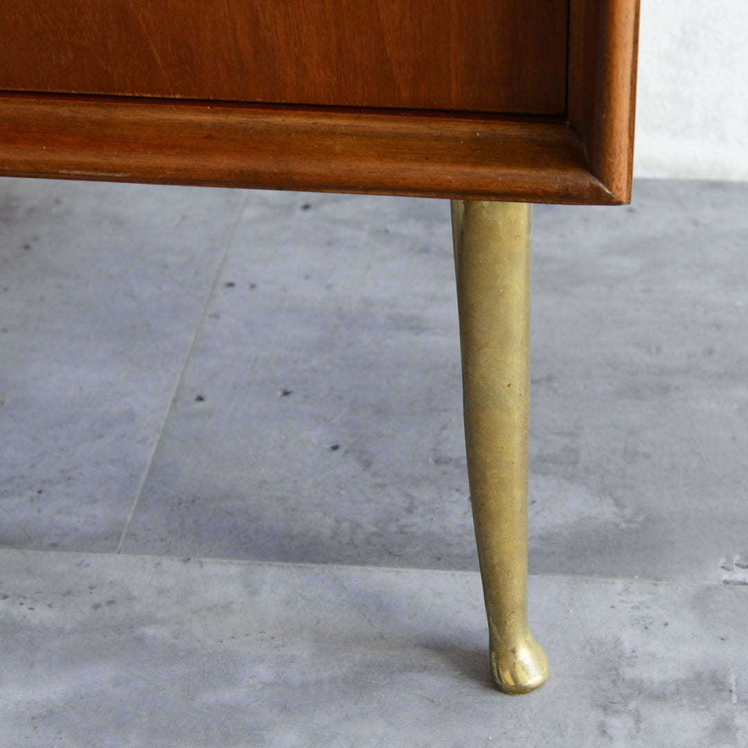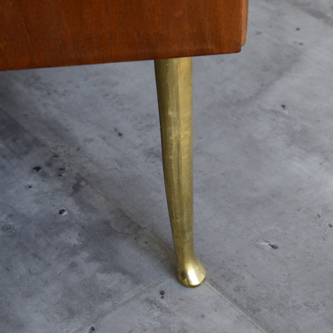 ヴィンテージチークの杢目と真鍮の脚部の取り合わせが画になるデザインです。