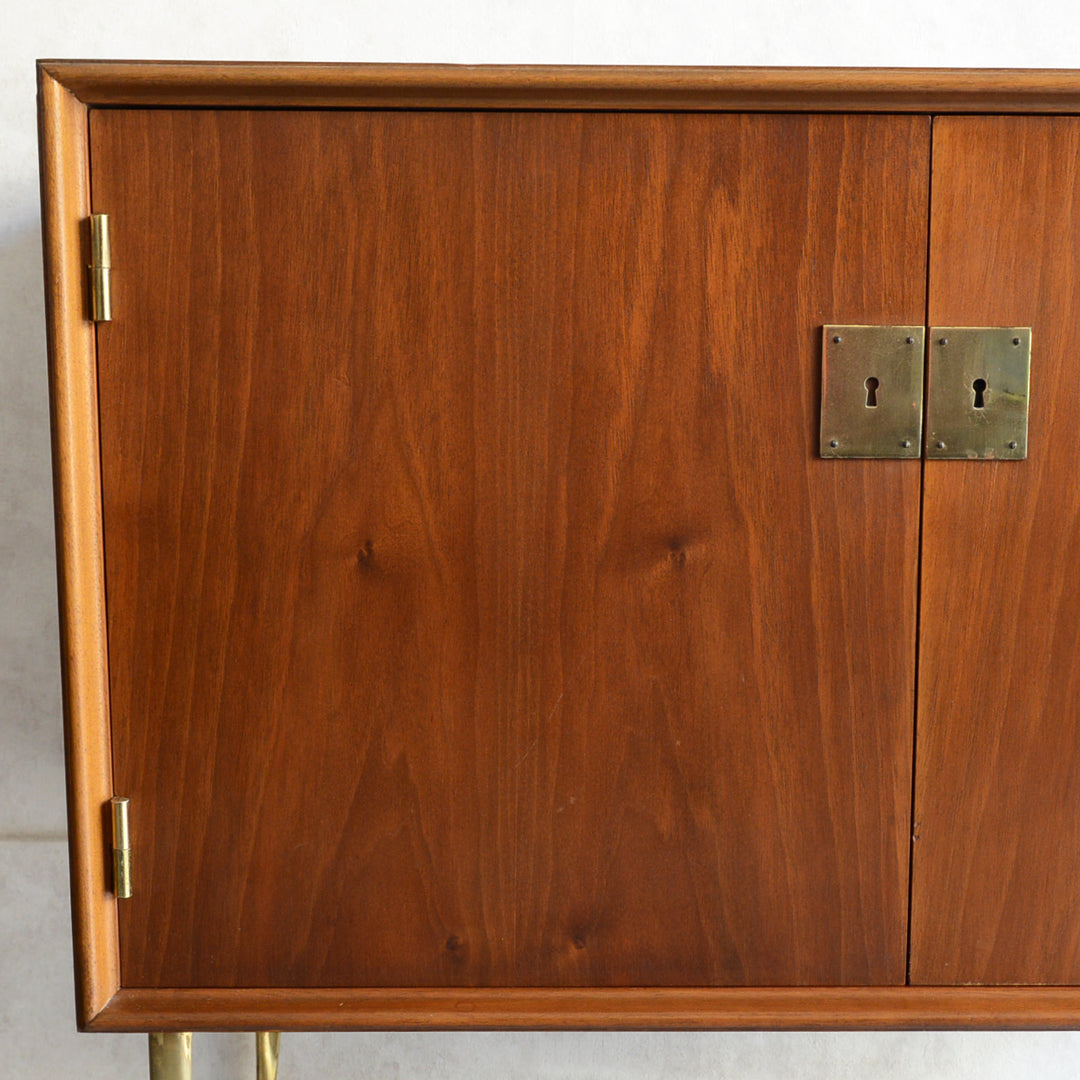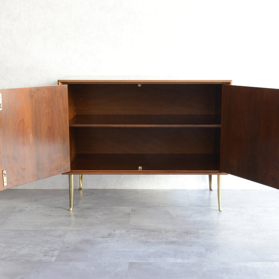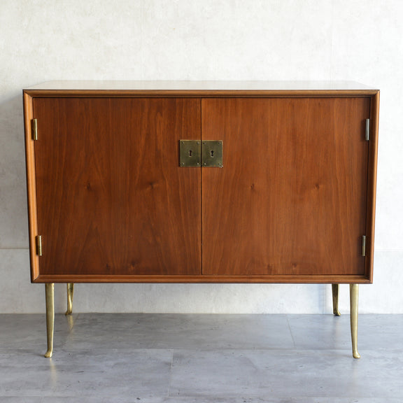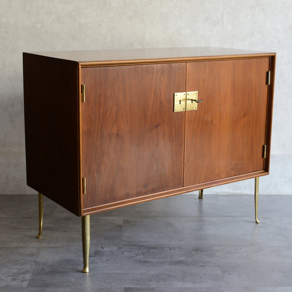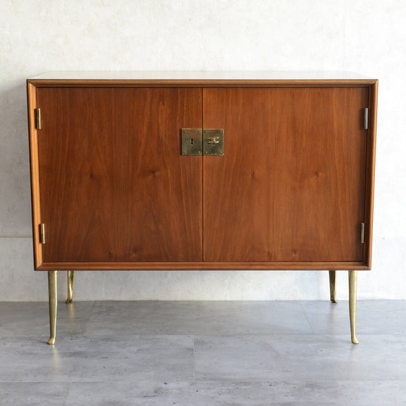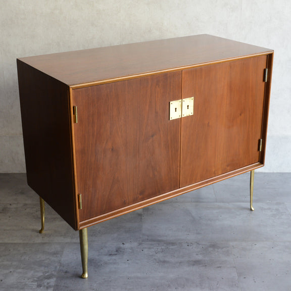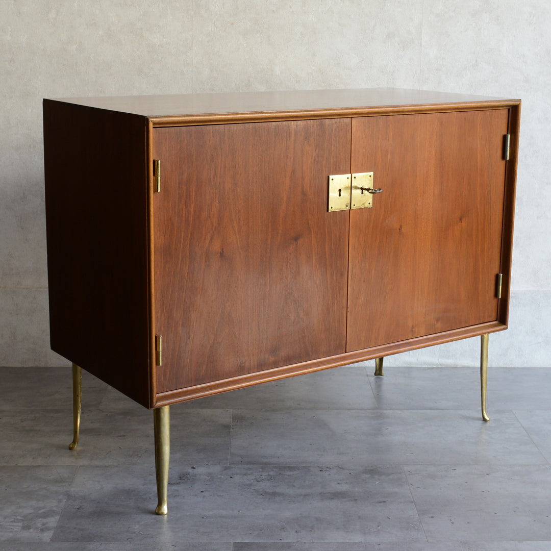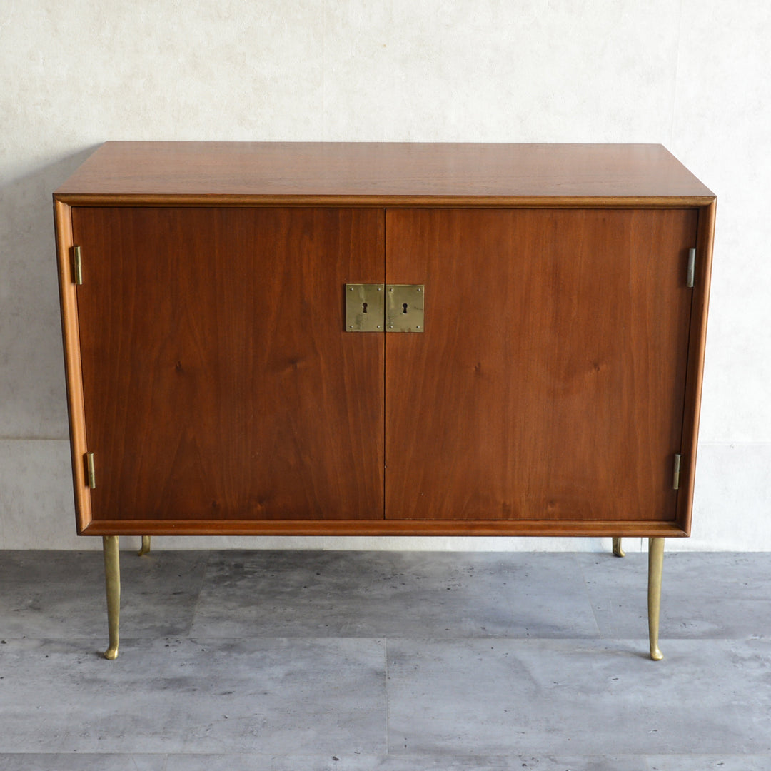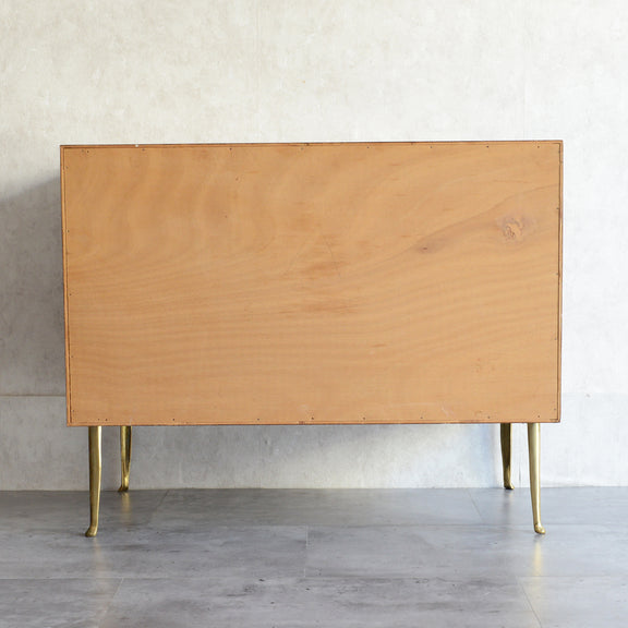 ヴィンテージチークの杢目と真鍮の脚部の取り合わせが画になるデザインです。