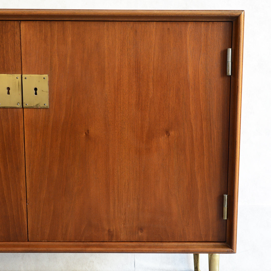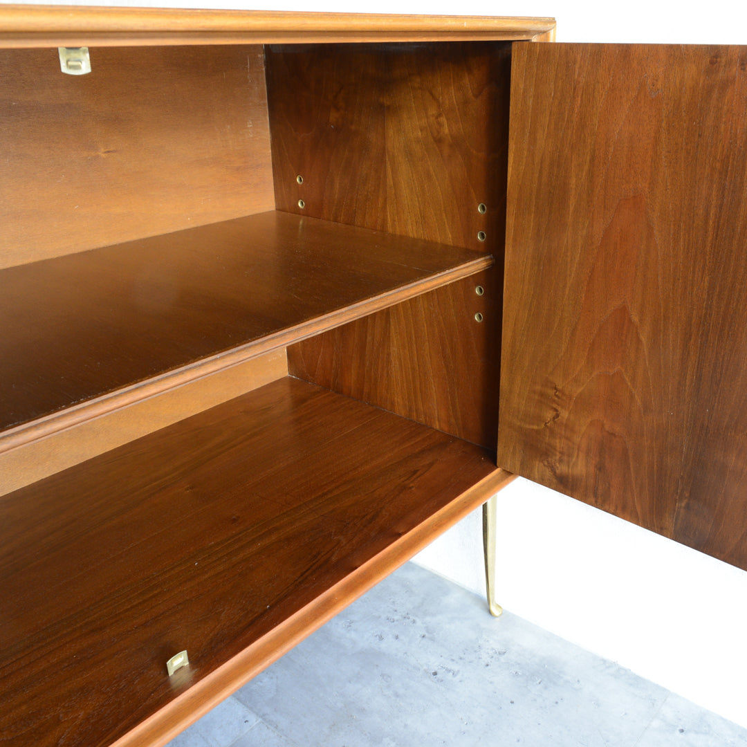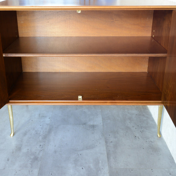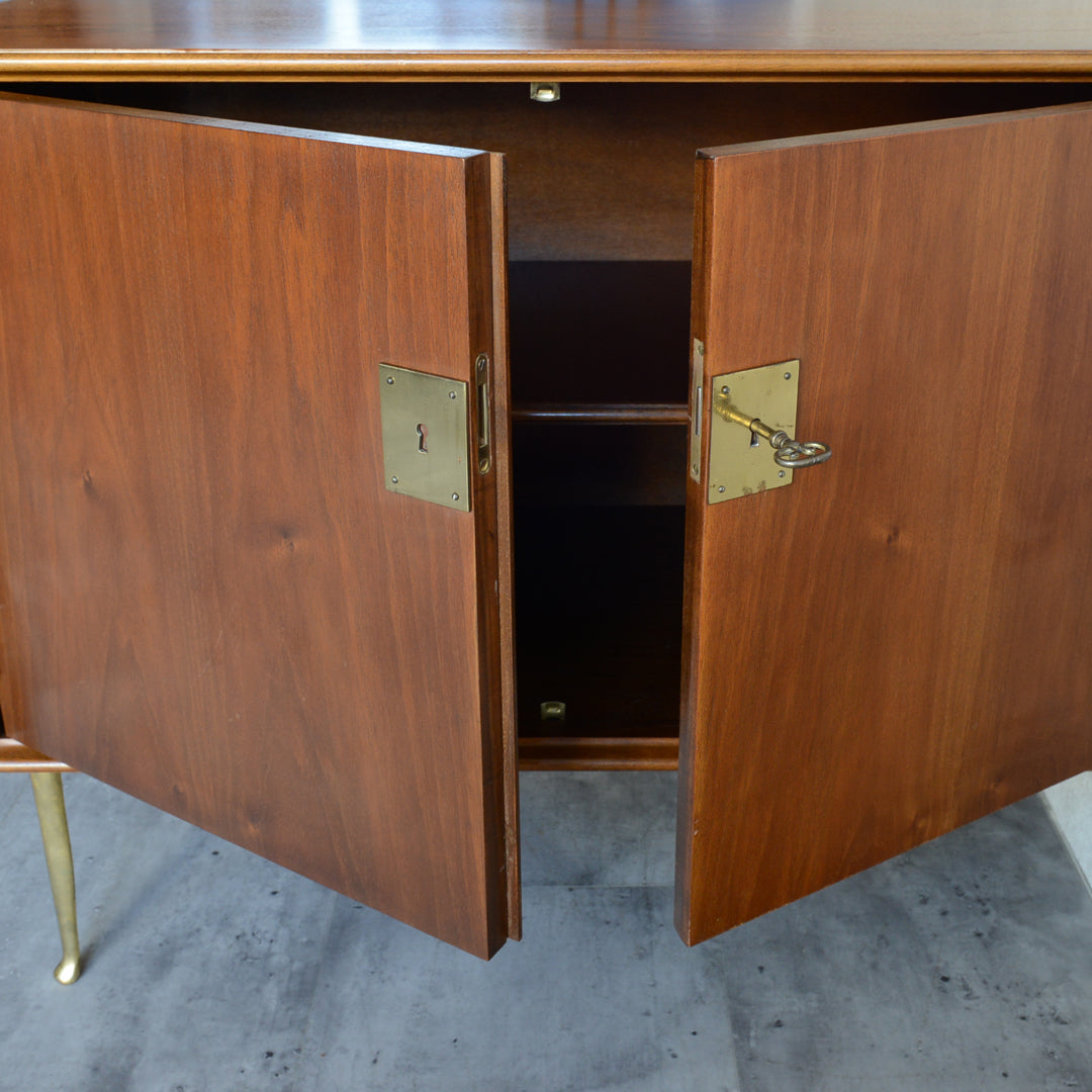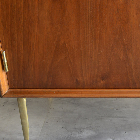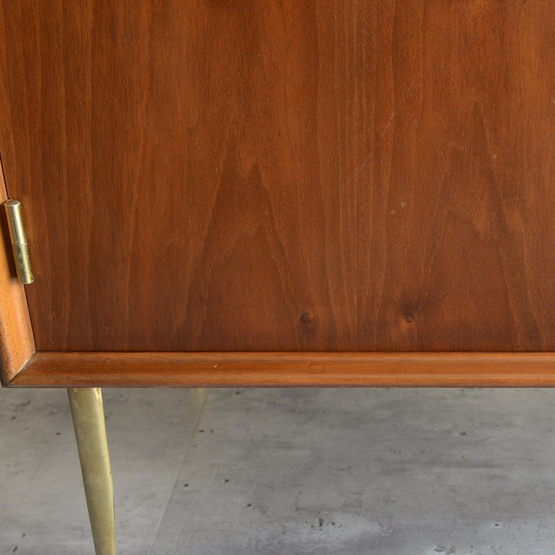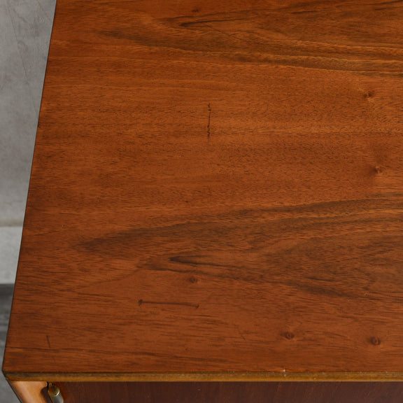 ヴィンテージチークの杢目と真鍮の脚部の取り合わせが画になるデザインです。