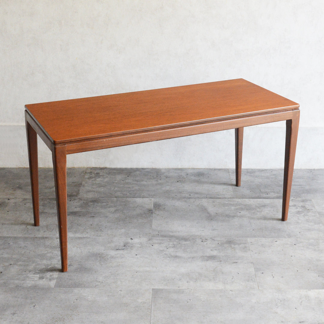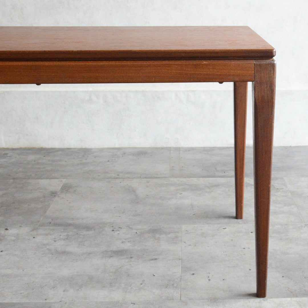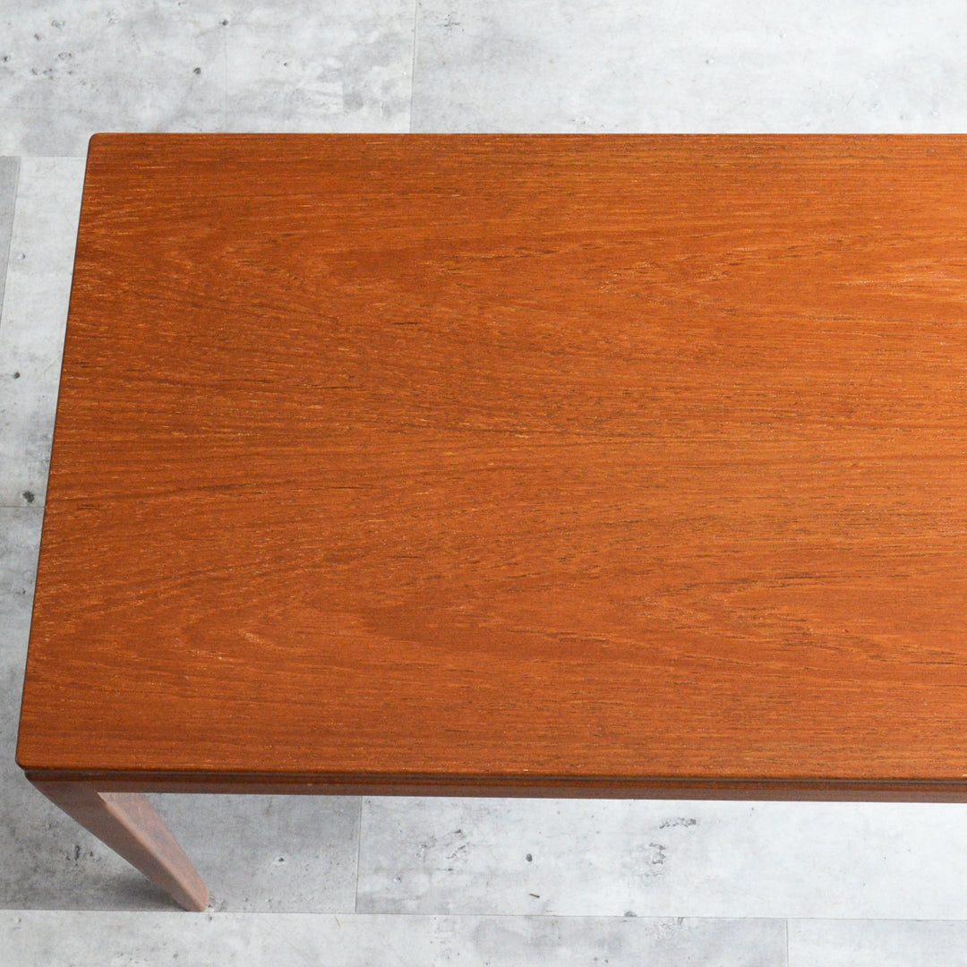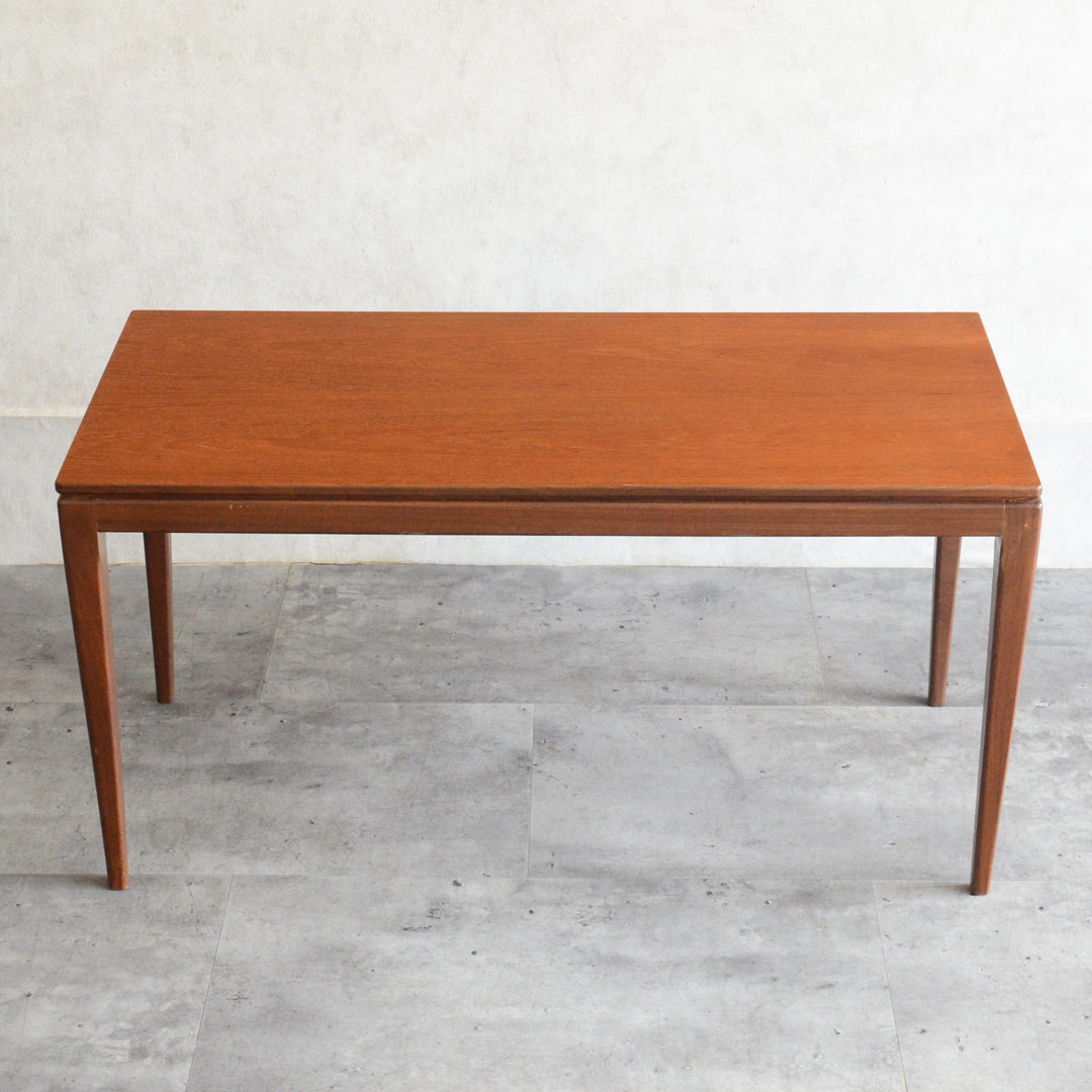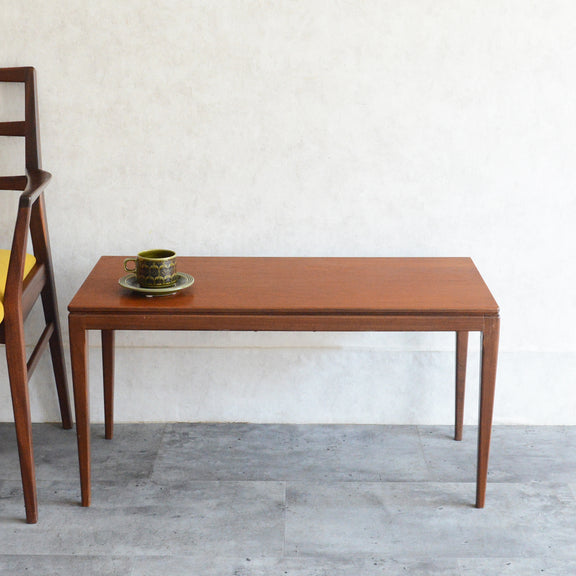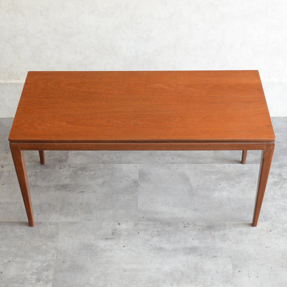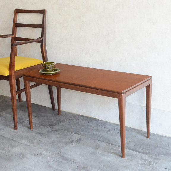 天板のチークの木目とすらりとした脚部が美しいセンターテーブル。幕板と天板の間に彫りを入れることにより、より軽さと抜け感のあるデザインとなっています。