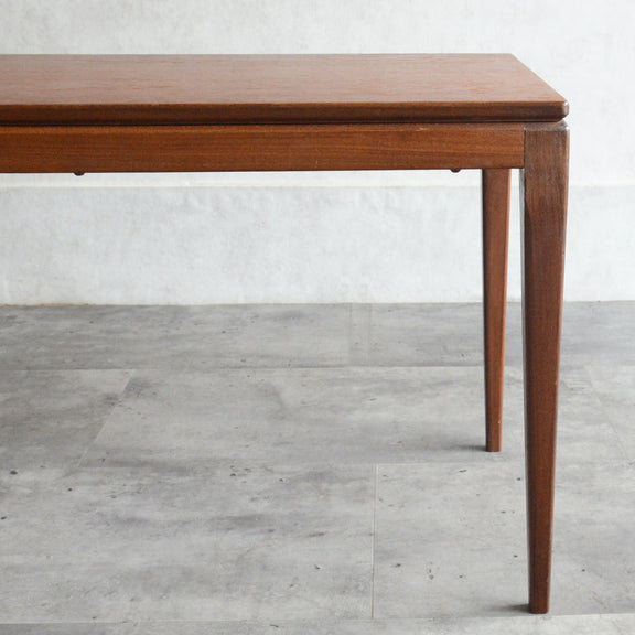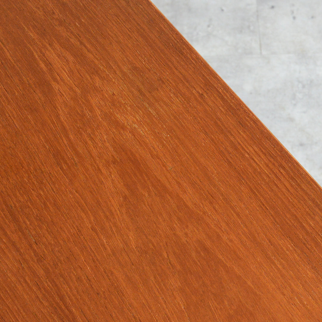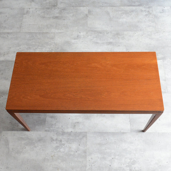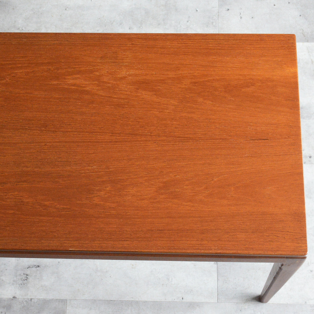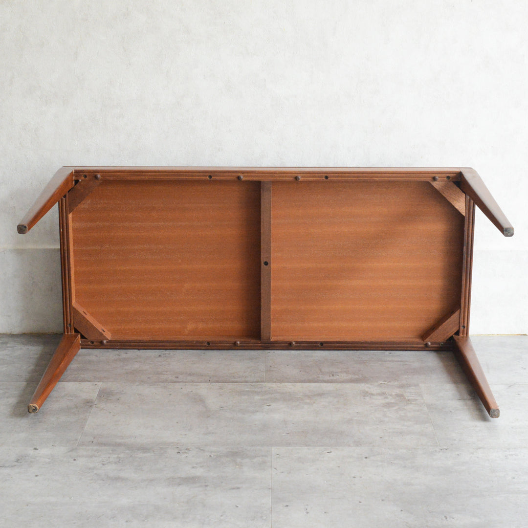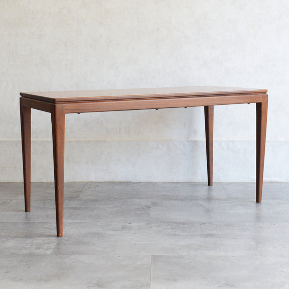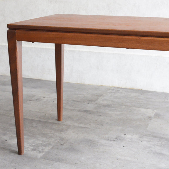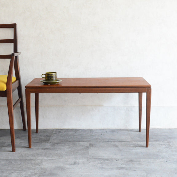 天板のチークの木目とすらりとした脚部が美しいセンターテーブル。幕板と天板の間に彫りを入れることにより、より軽さと抜け感のあるデザインとなっています。