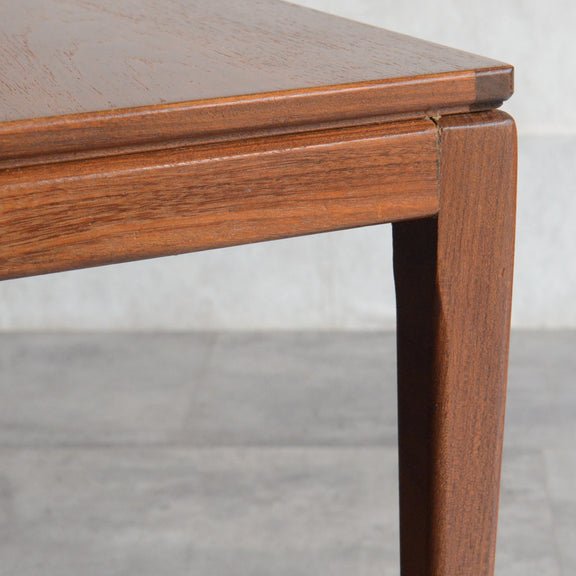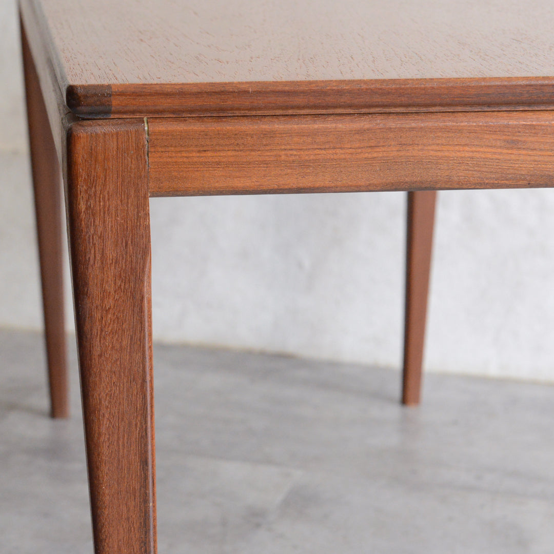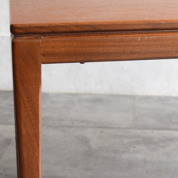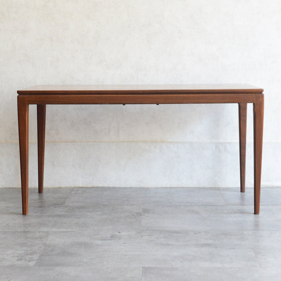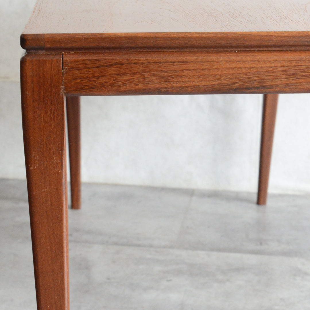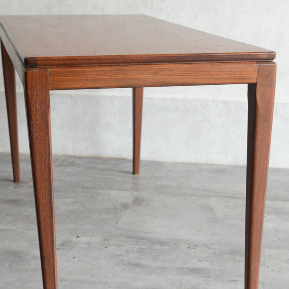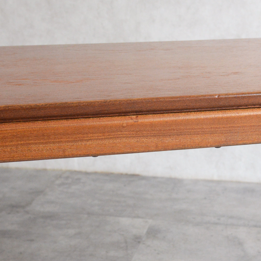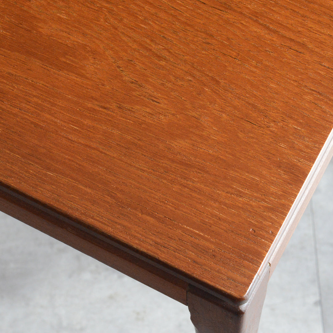 天板のチークの木目とすらりとした脚部が美しいセンターテーブル。幕板と天板の間に彫りを入れることにより、より軽さと抜け感のあるデザインとなっています。