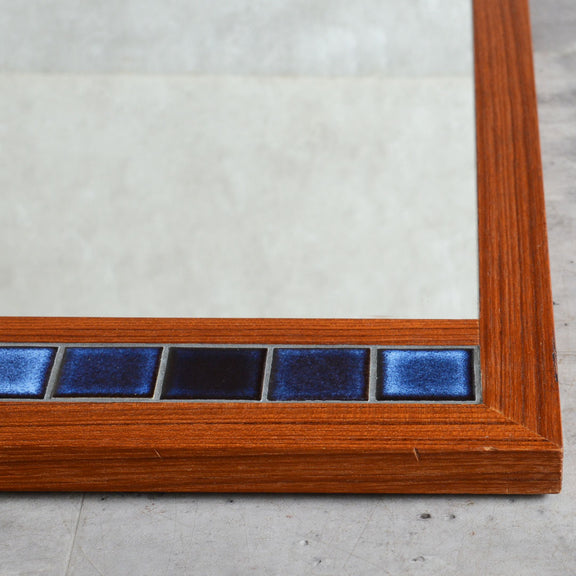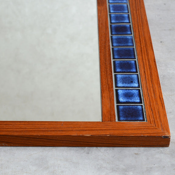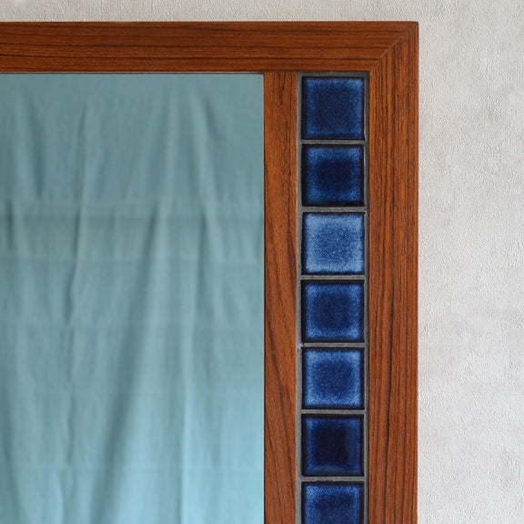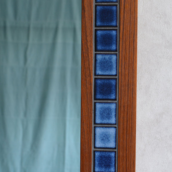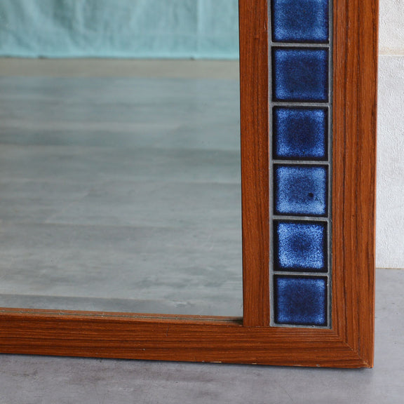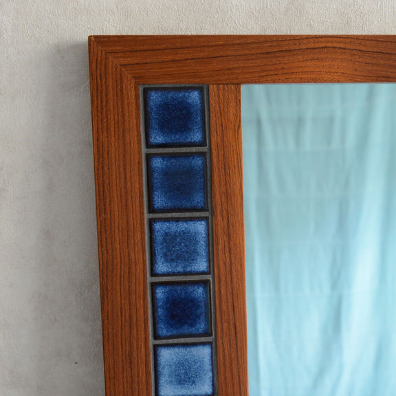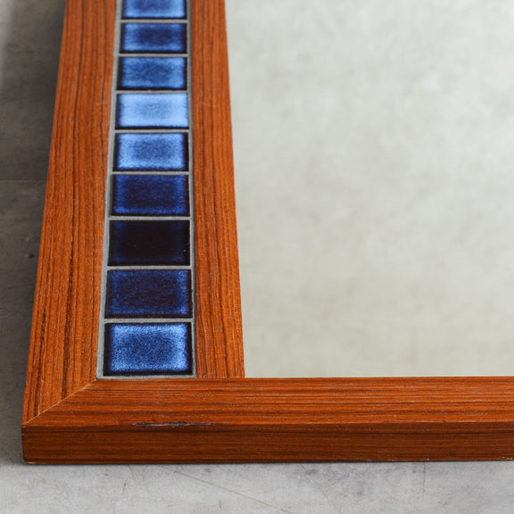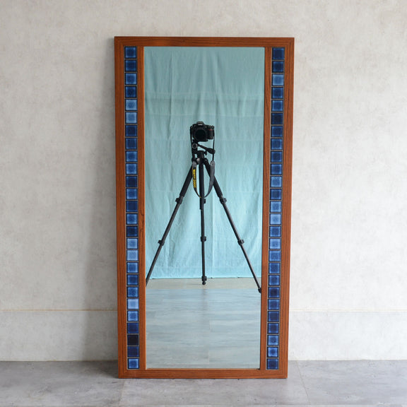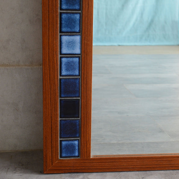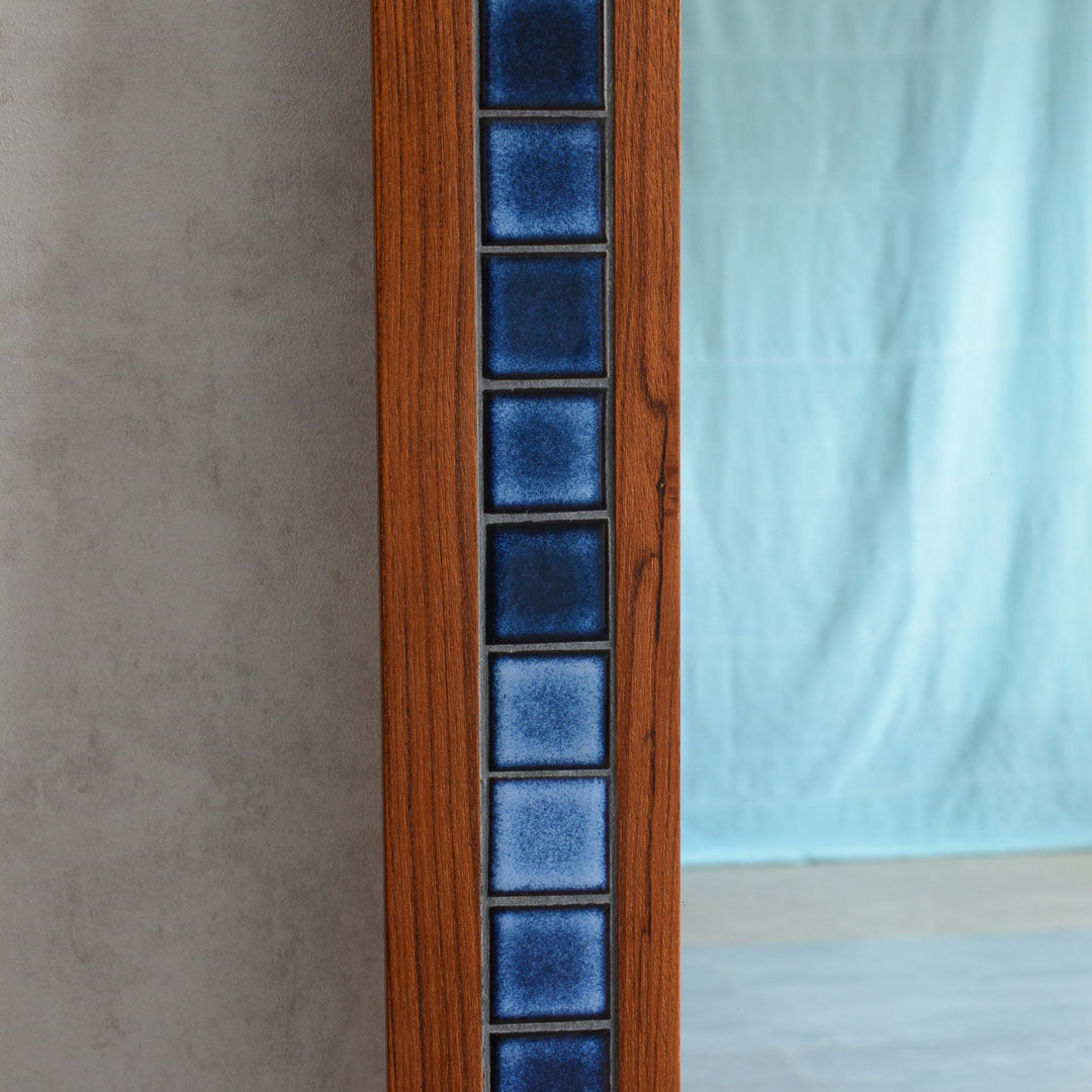 グラデーションのブルータイルが、北欧らしいヴィンテージミラー