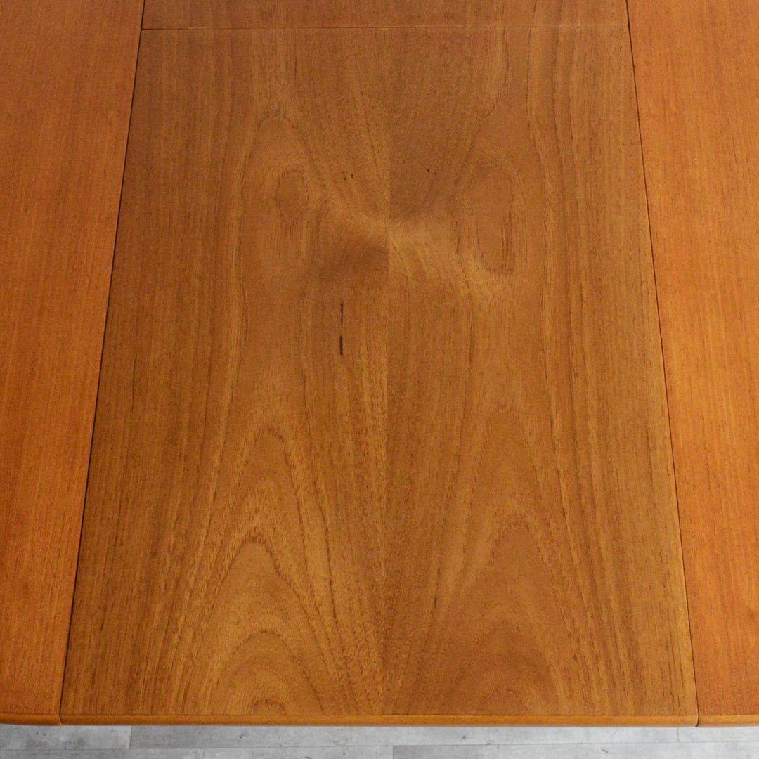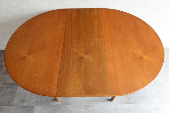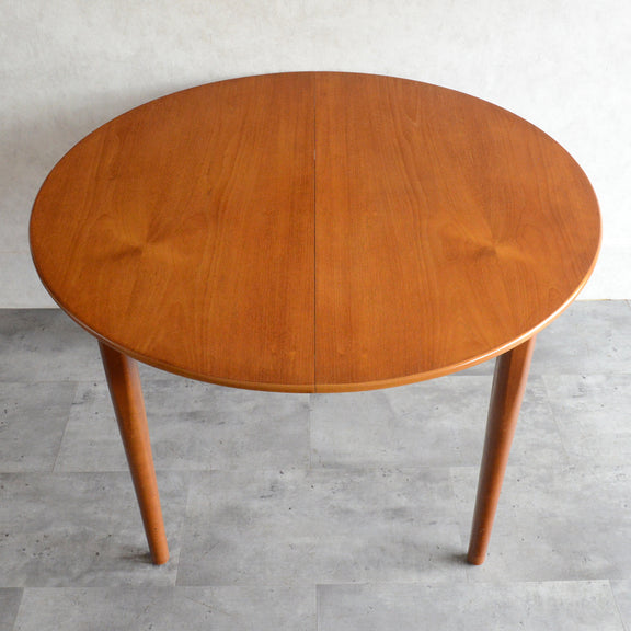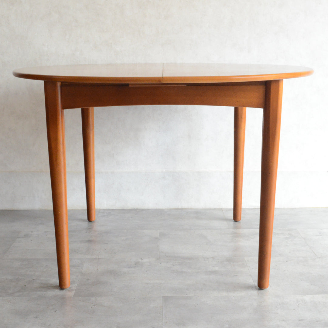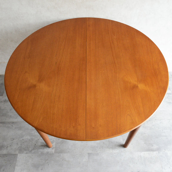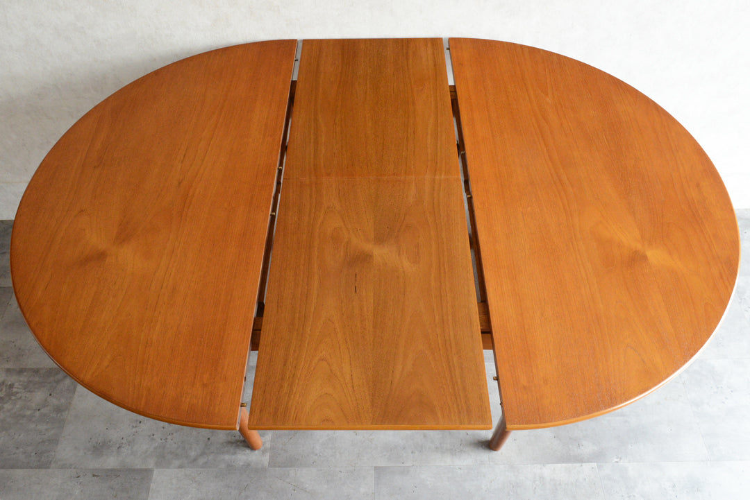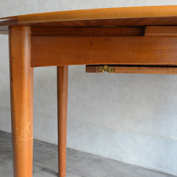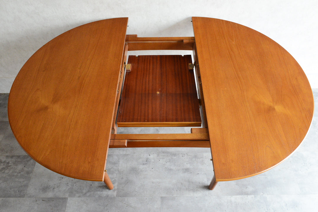 G-PLAN(ジープラン)等と同じ様式で、天板の両端を引き中央に収納されている天板を引き出すと、幅が107.5cmから146cmとなる伸長式ダイニングテーブル。
