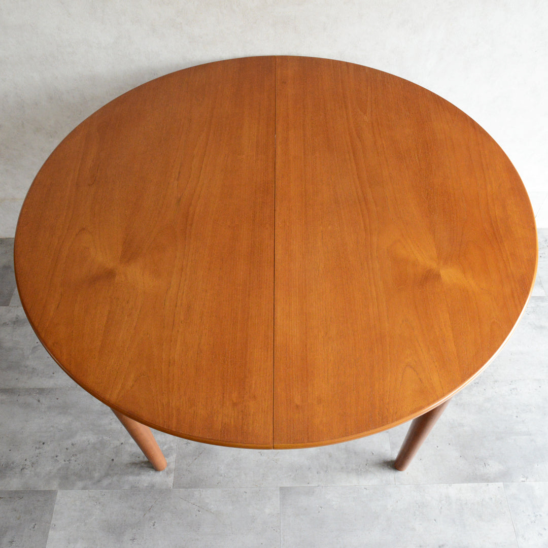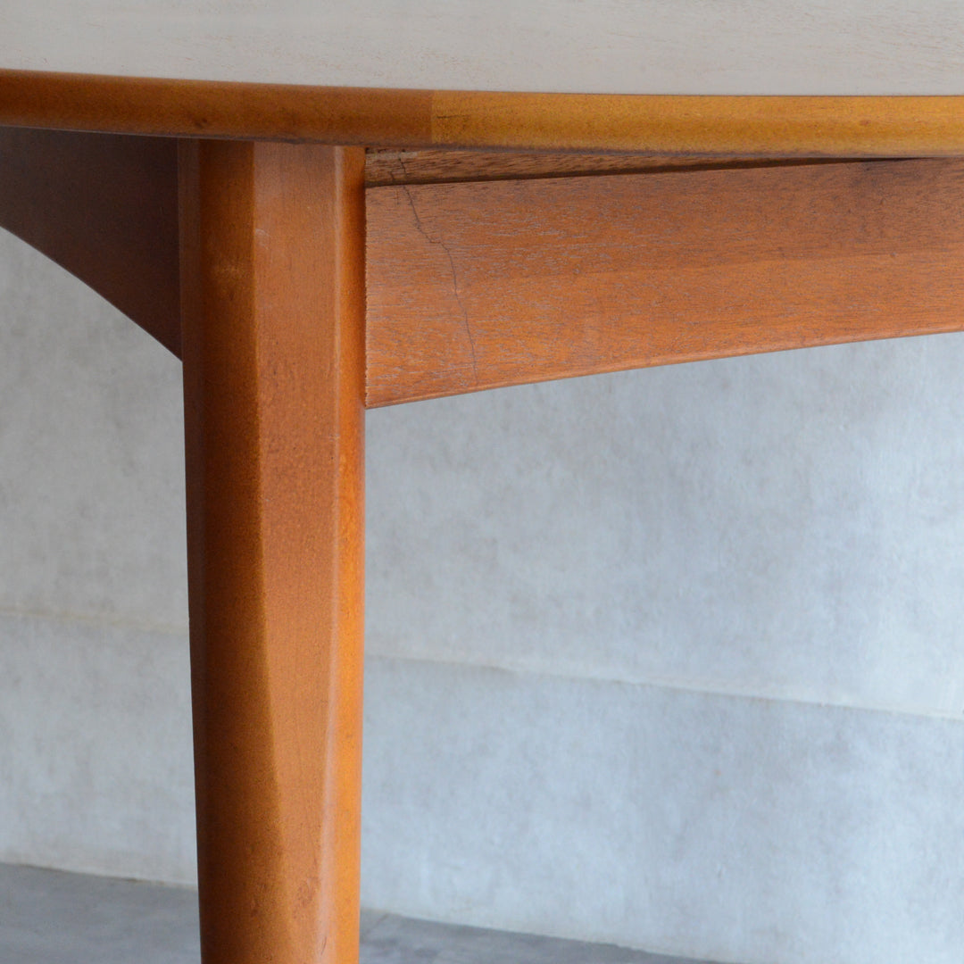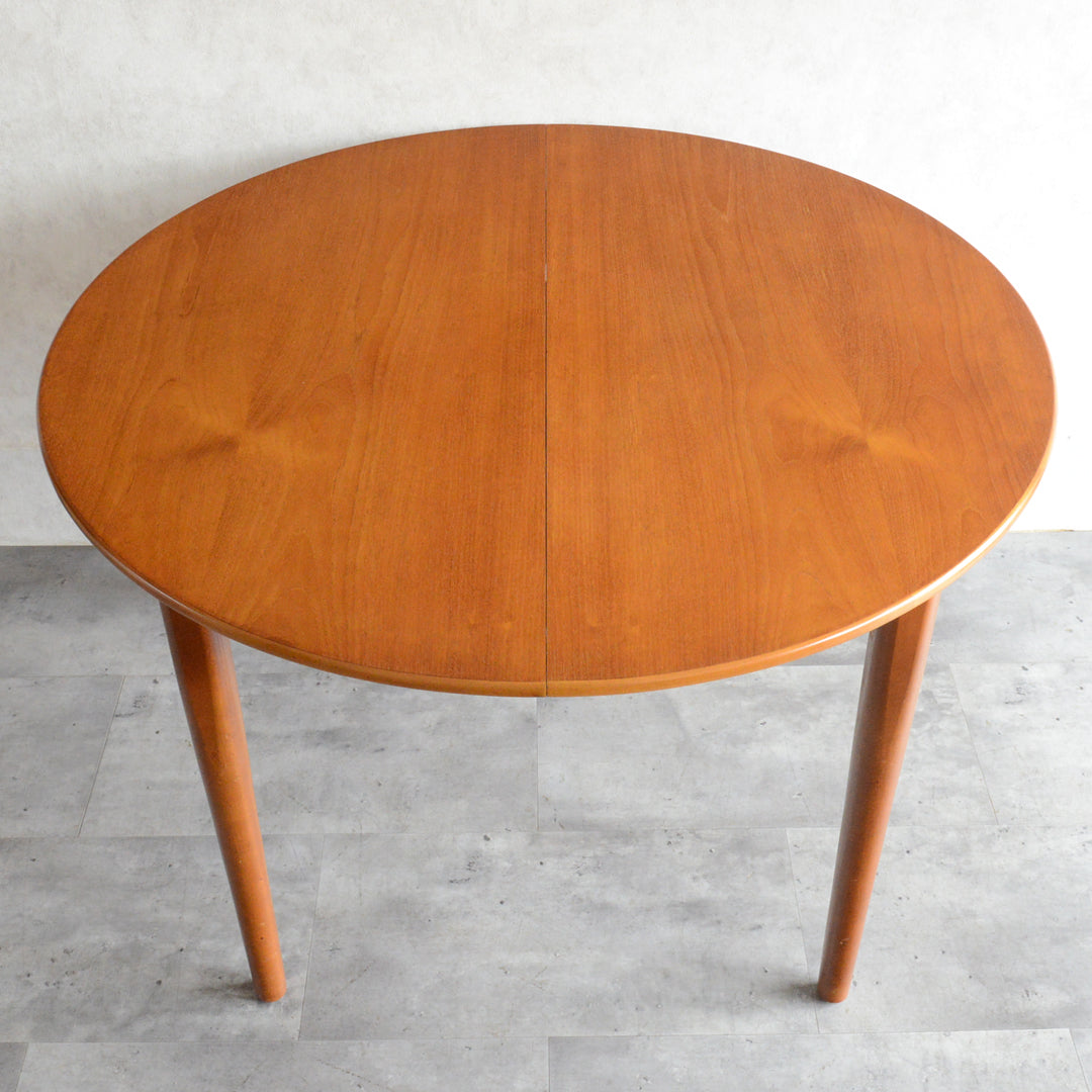 ミッドセンチュリーの平均的なラウンドテーブルより直径が14cm程コンパクトなレアサイズです。設置スペースや搬入経路サイズに合わせて、小振りなラウンドテーブルをお探しの方にお勧めです。