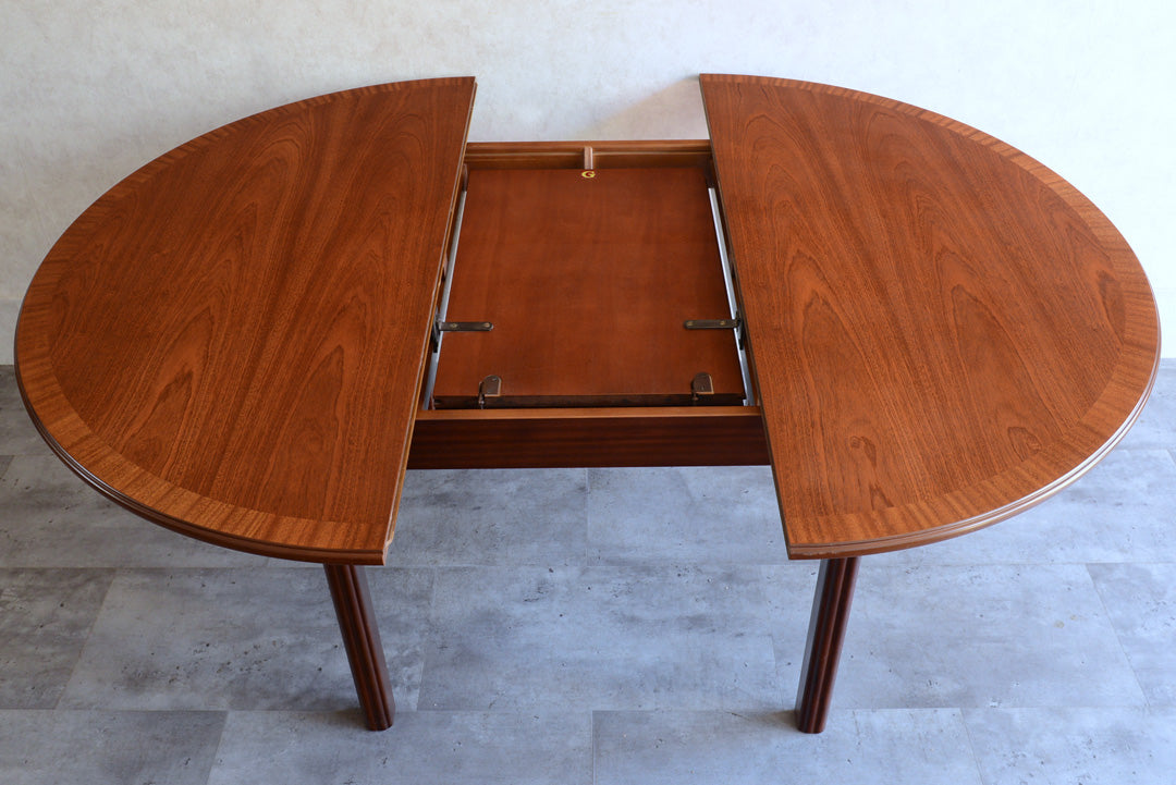 エクステンション可能(伸長式)で、天板の両端を引き中央に収納されている補助天板を開くと6人用テーブルとしてもお使い頂けます。(天板の拡張の操作はお1人でも簡単にして頂けます。)
