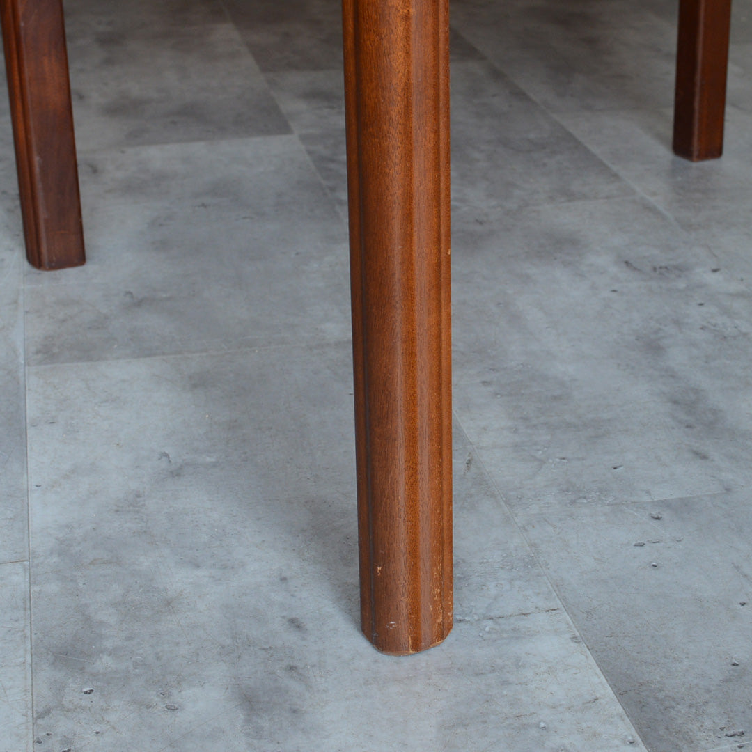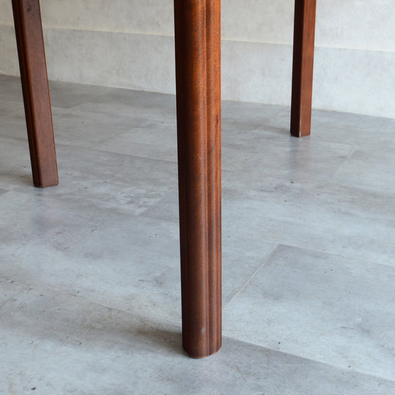 天板縁と脚部には美しい装飾が施され、カラーもウォルナットの濃いめカラーで落ち着いた佇まいです。