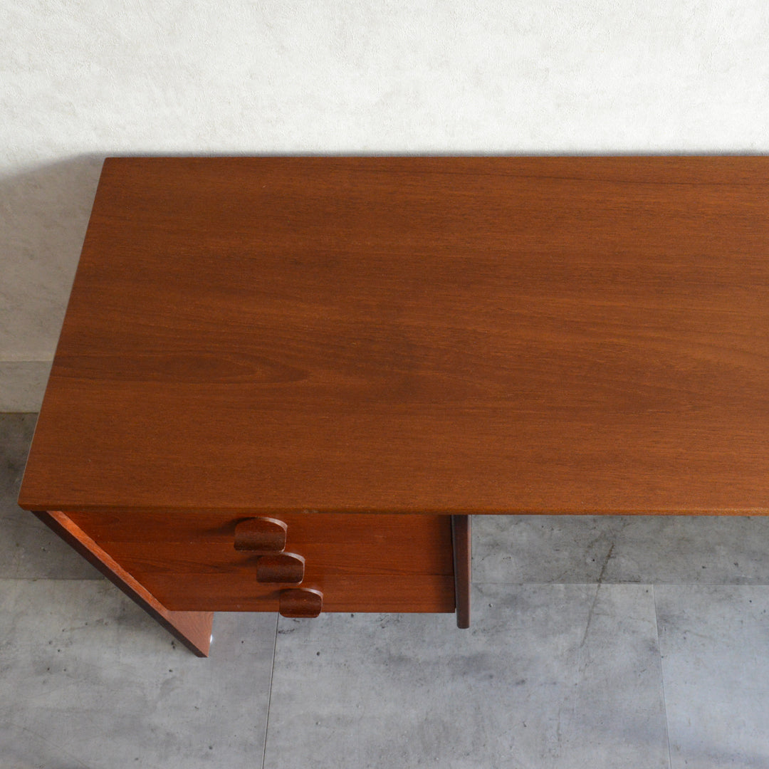 剥離再塗装済みのチーク天板の木目が美しく、STAGの特徴的な把手がアクセントとなっています。