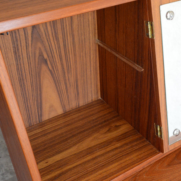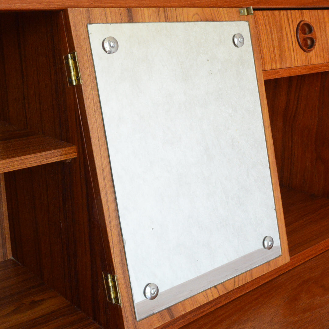 ピジョンホール(棚)の左手にはミラーも隠れていて簡易ドレッサーとしても重宝します。