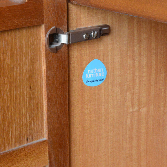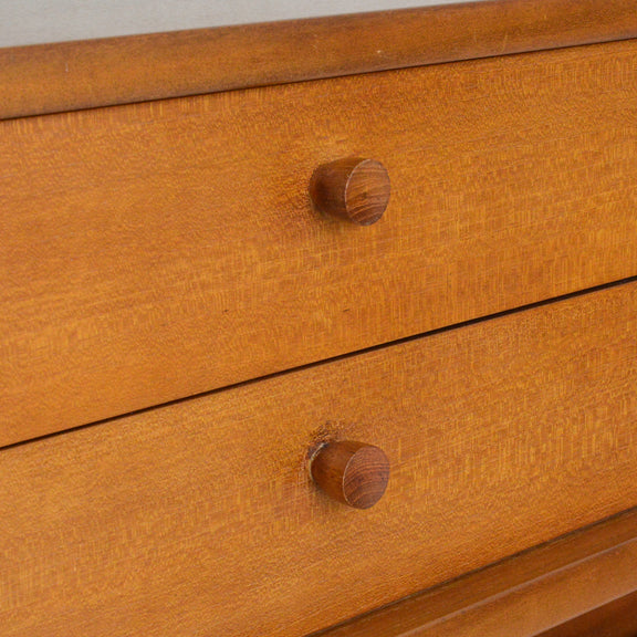 Nathanの代名詞ともいえる十字扉に、チークを彫り出した丁寧な造りの把手の抽斗が4つ。