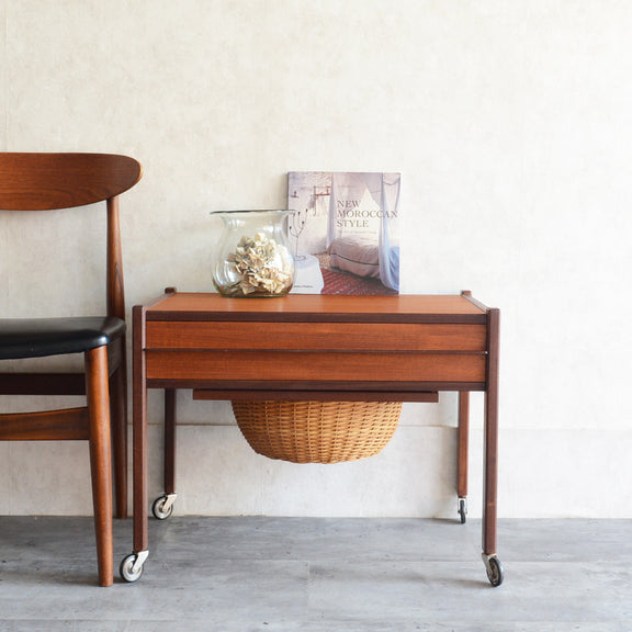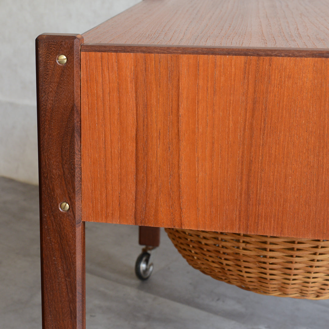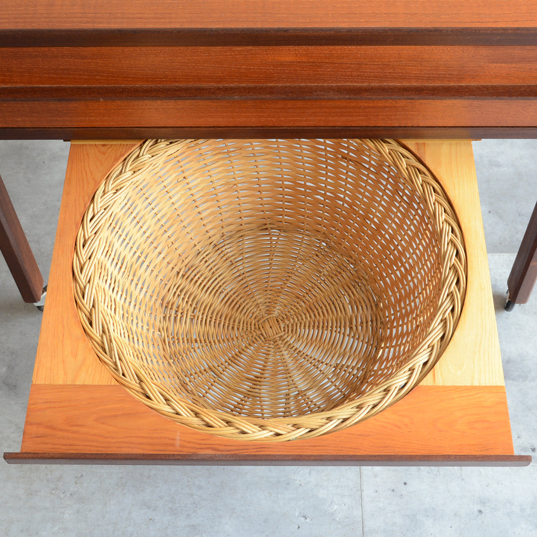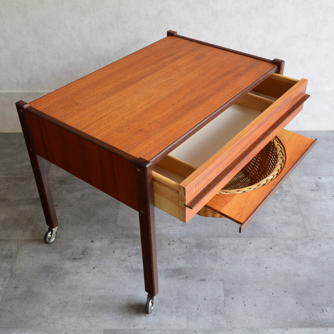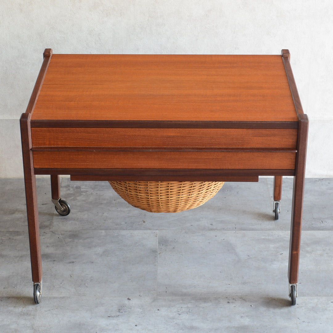 チークの深い色調の木目が美しいソーイングテーブル。