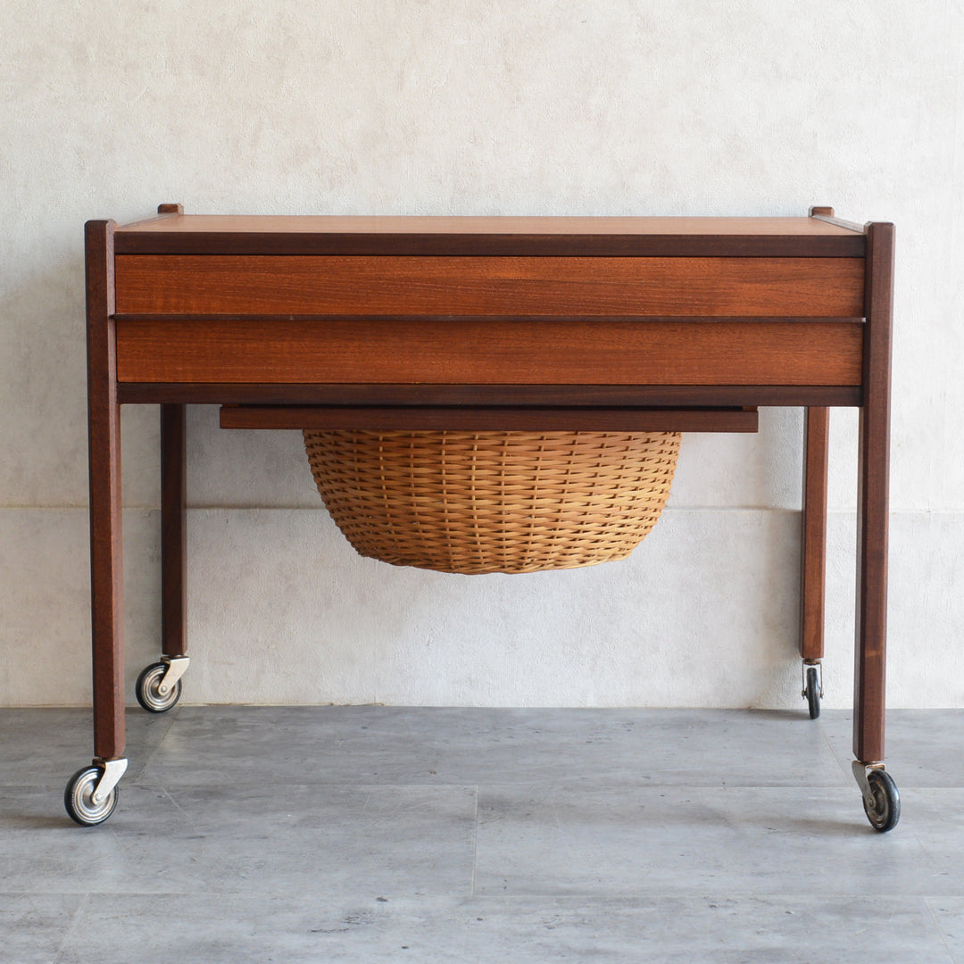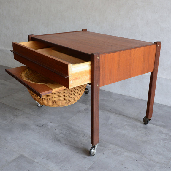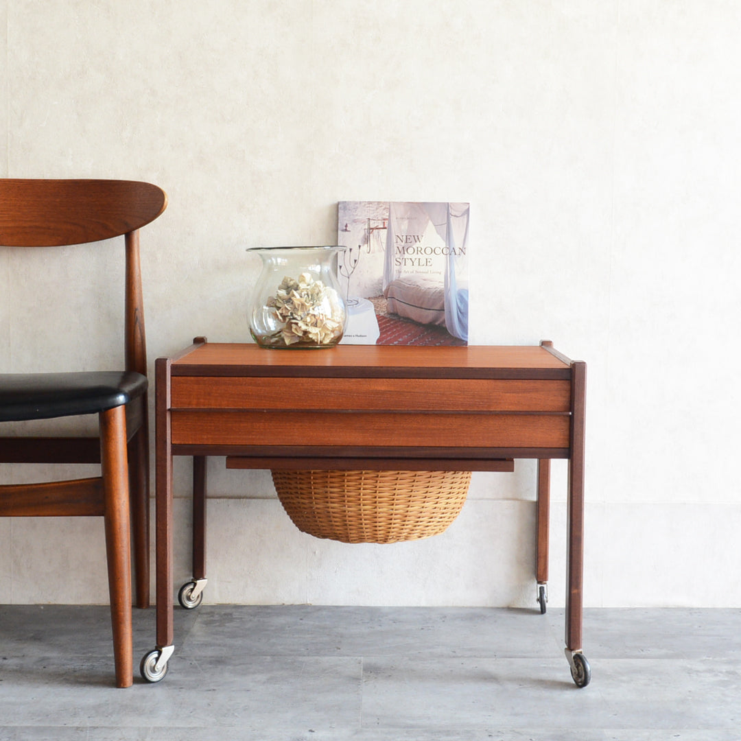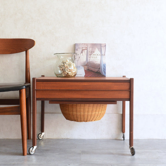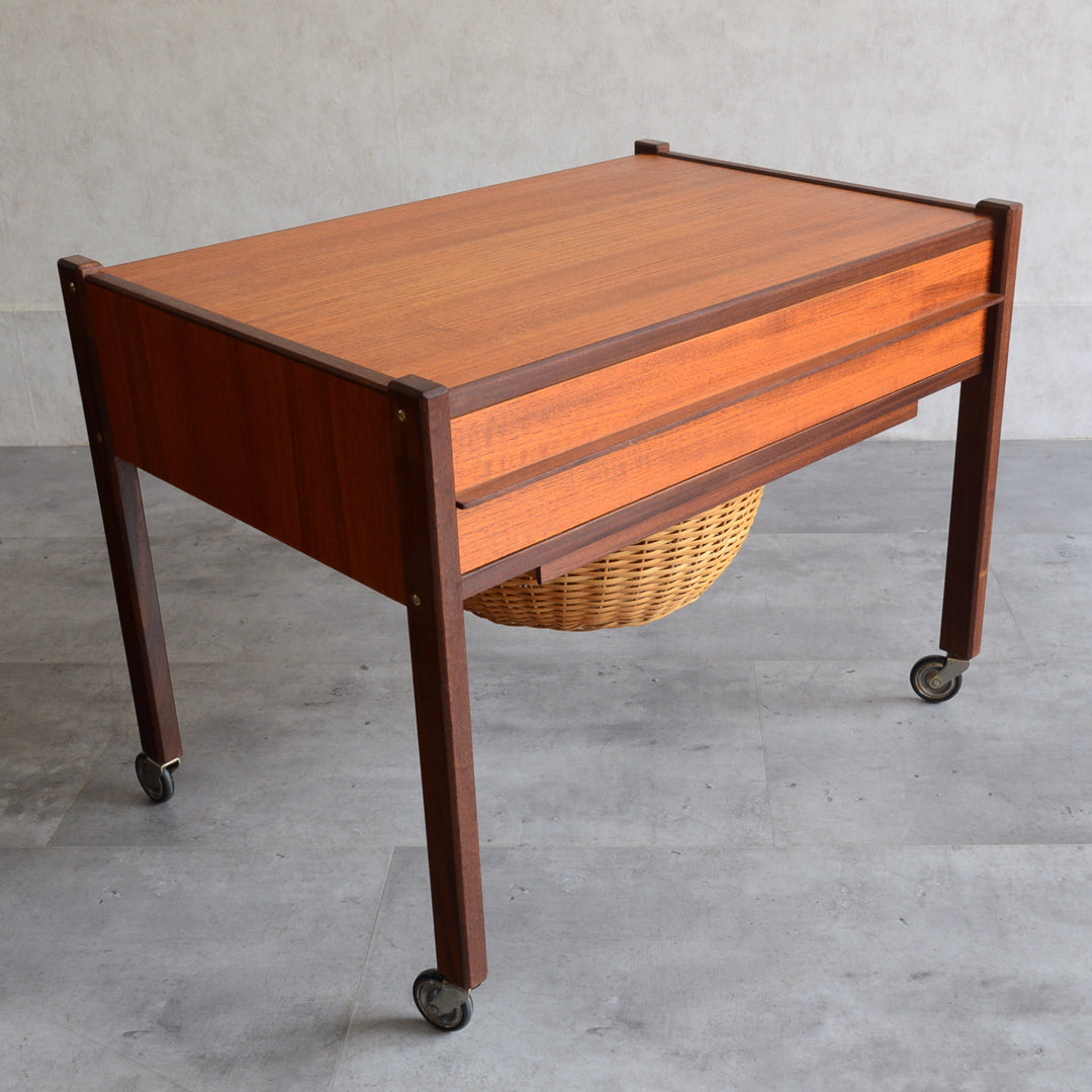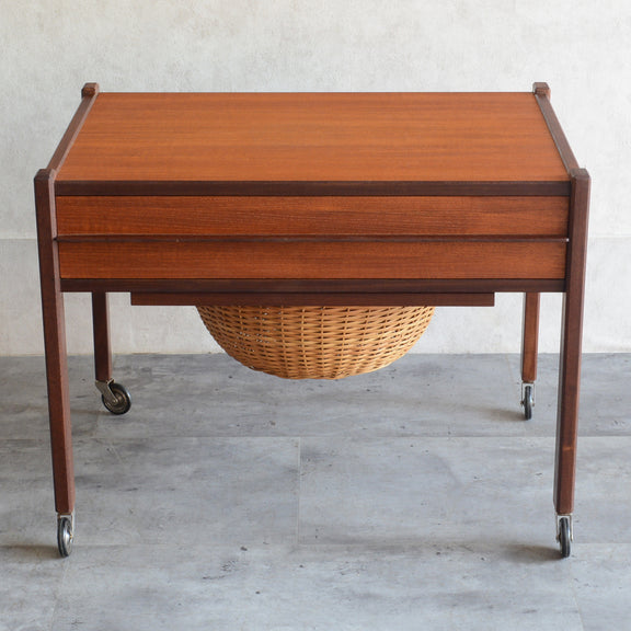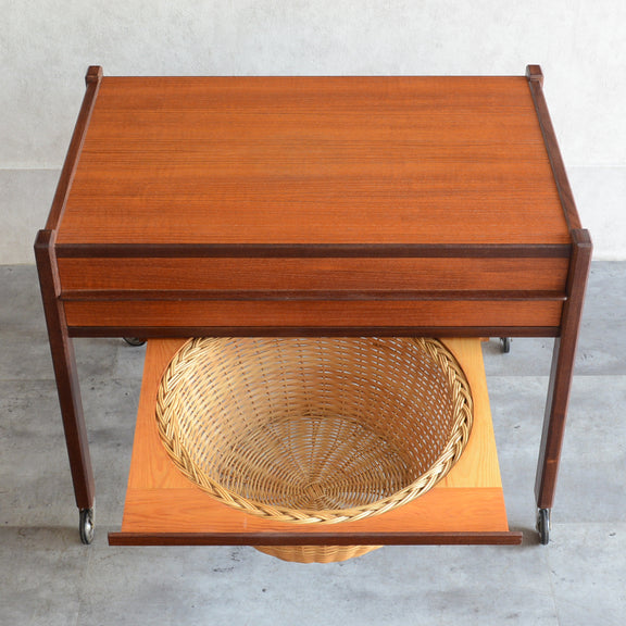 チークの深い色調の木目が美しいソーイングテーブル。