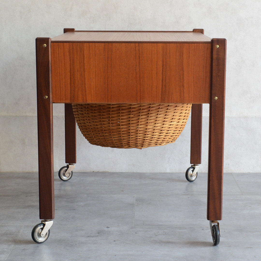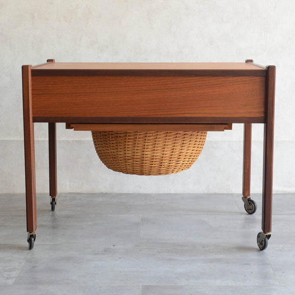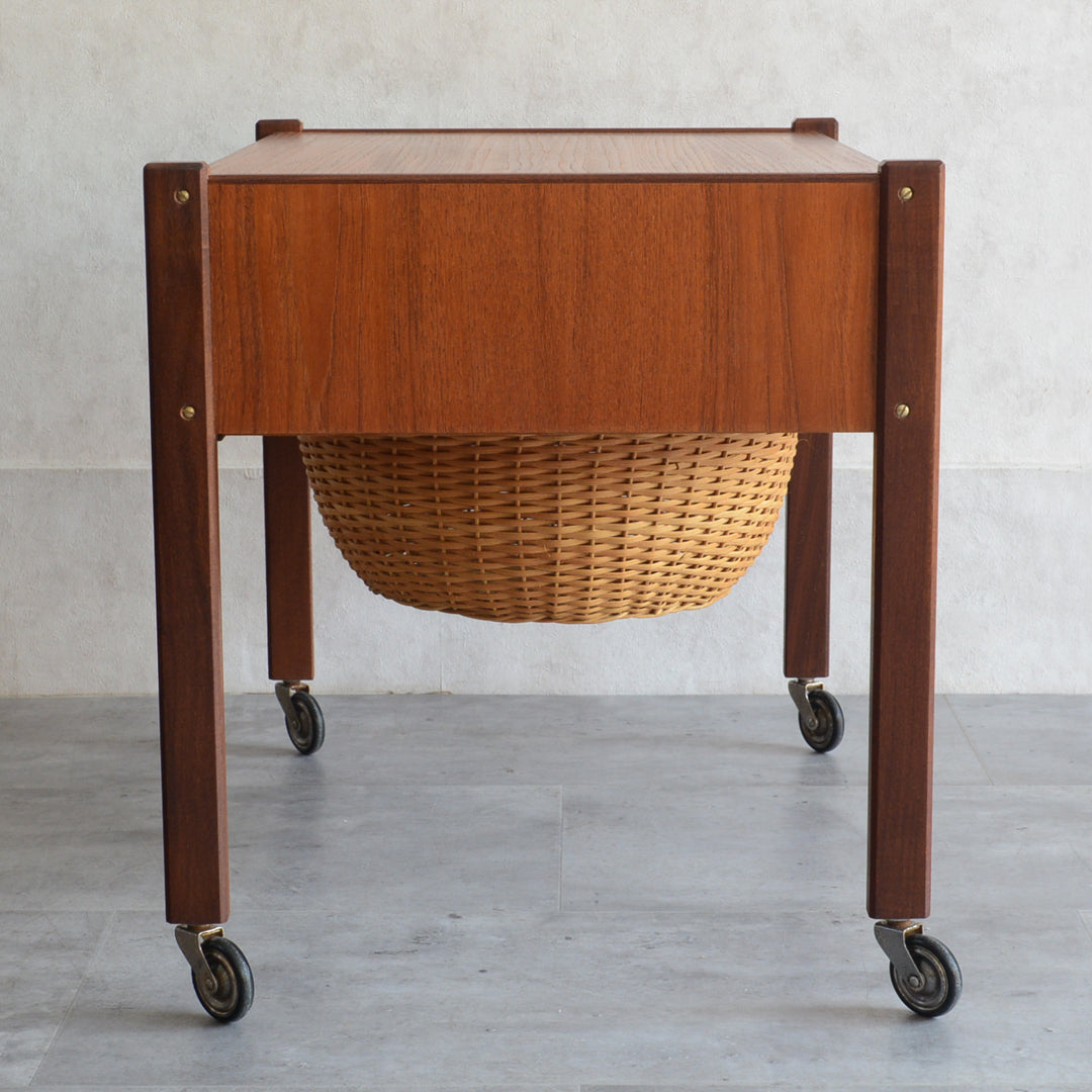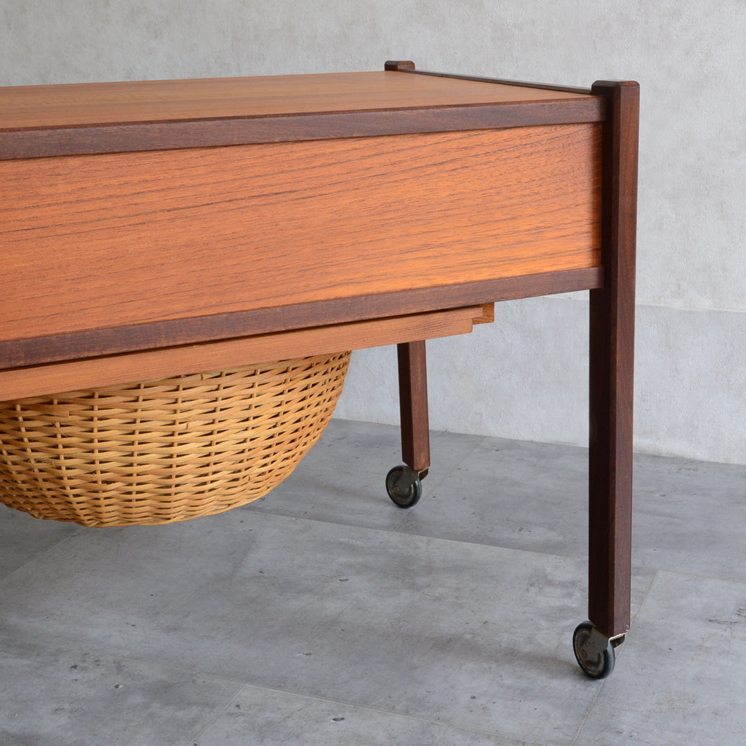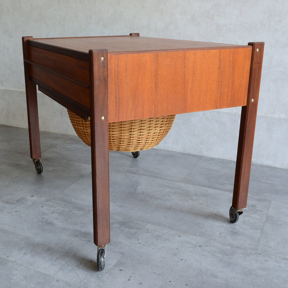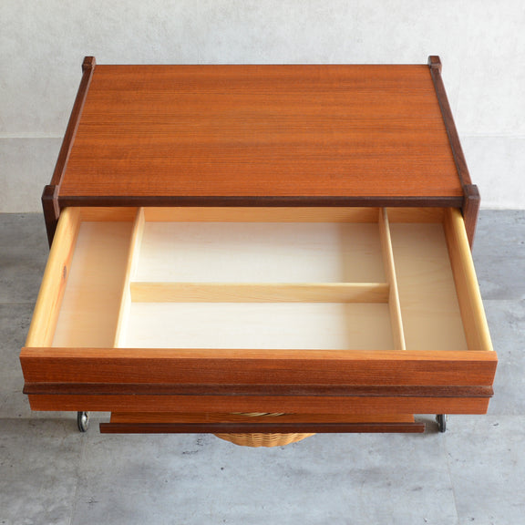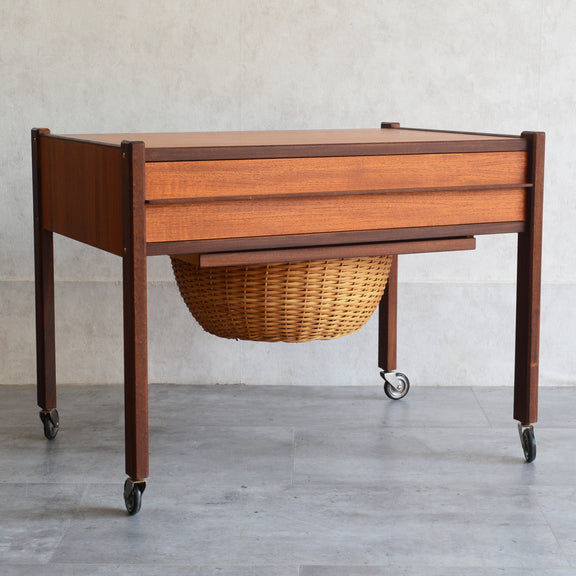 チークの深い色調の木目が美しいソーイングテーブル。