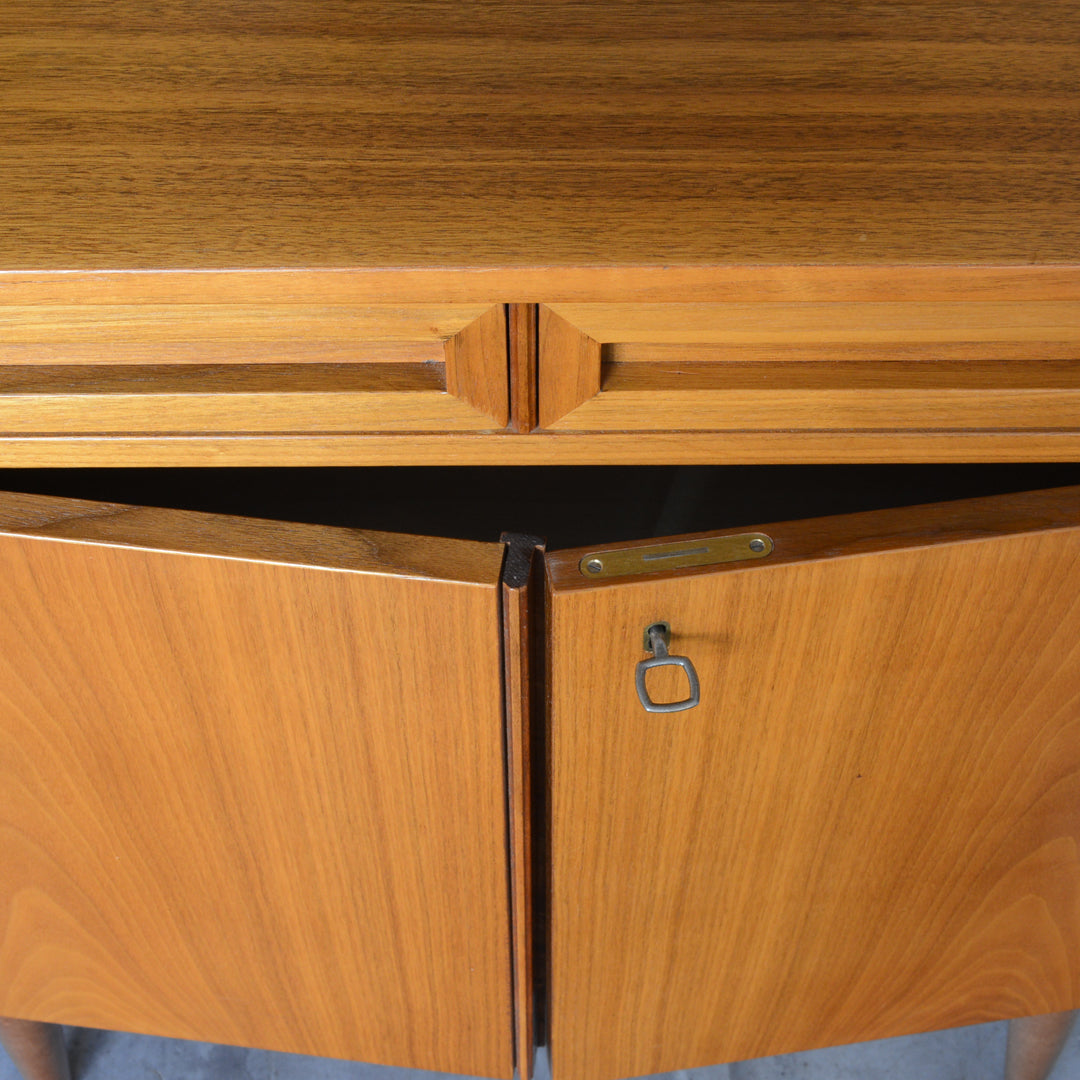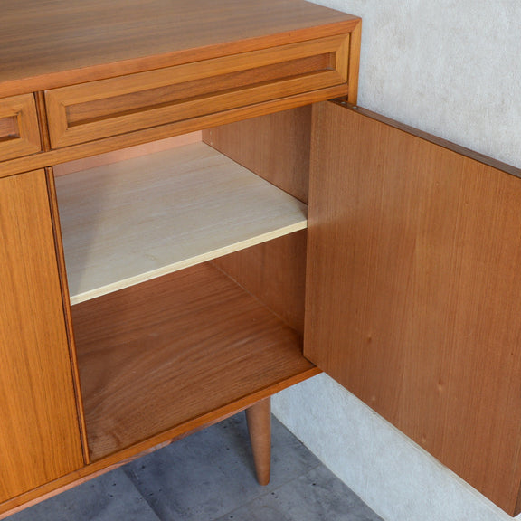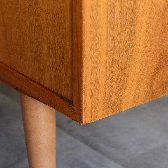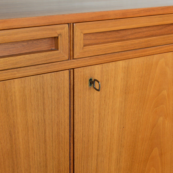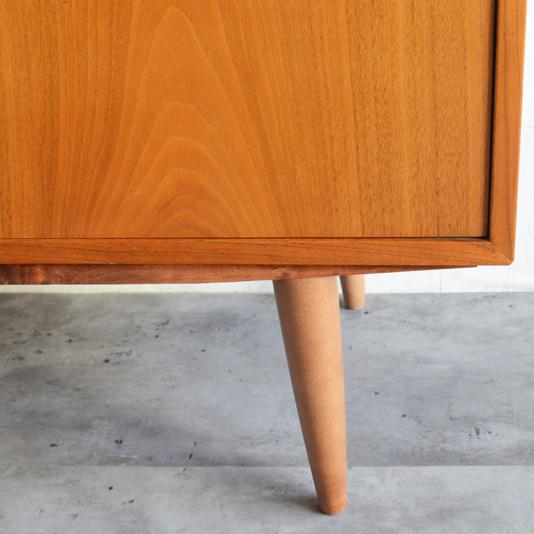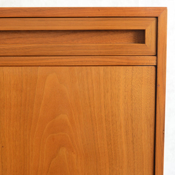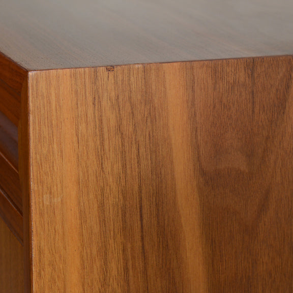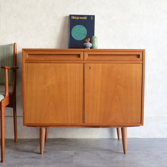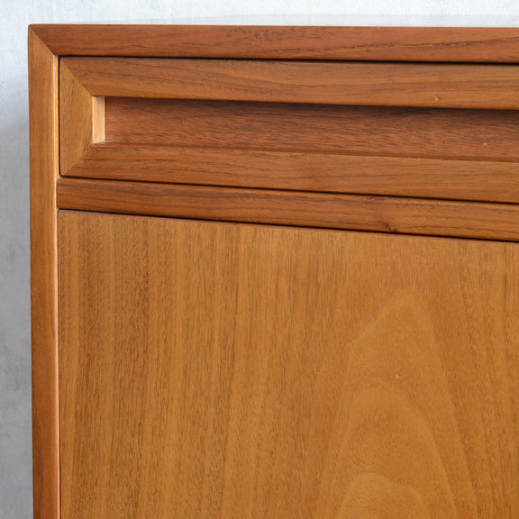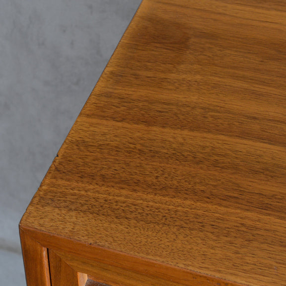 上部の抽斗は機能的に便利なだけでは無く、高度な職人技を感じる秀逸なデザインアクセントとなっています。下部の扉内とあわせてリビングの日用品等もすっきりと収納する事ができそうです。