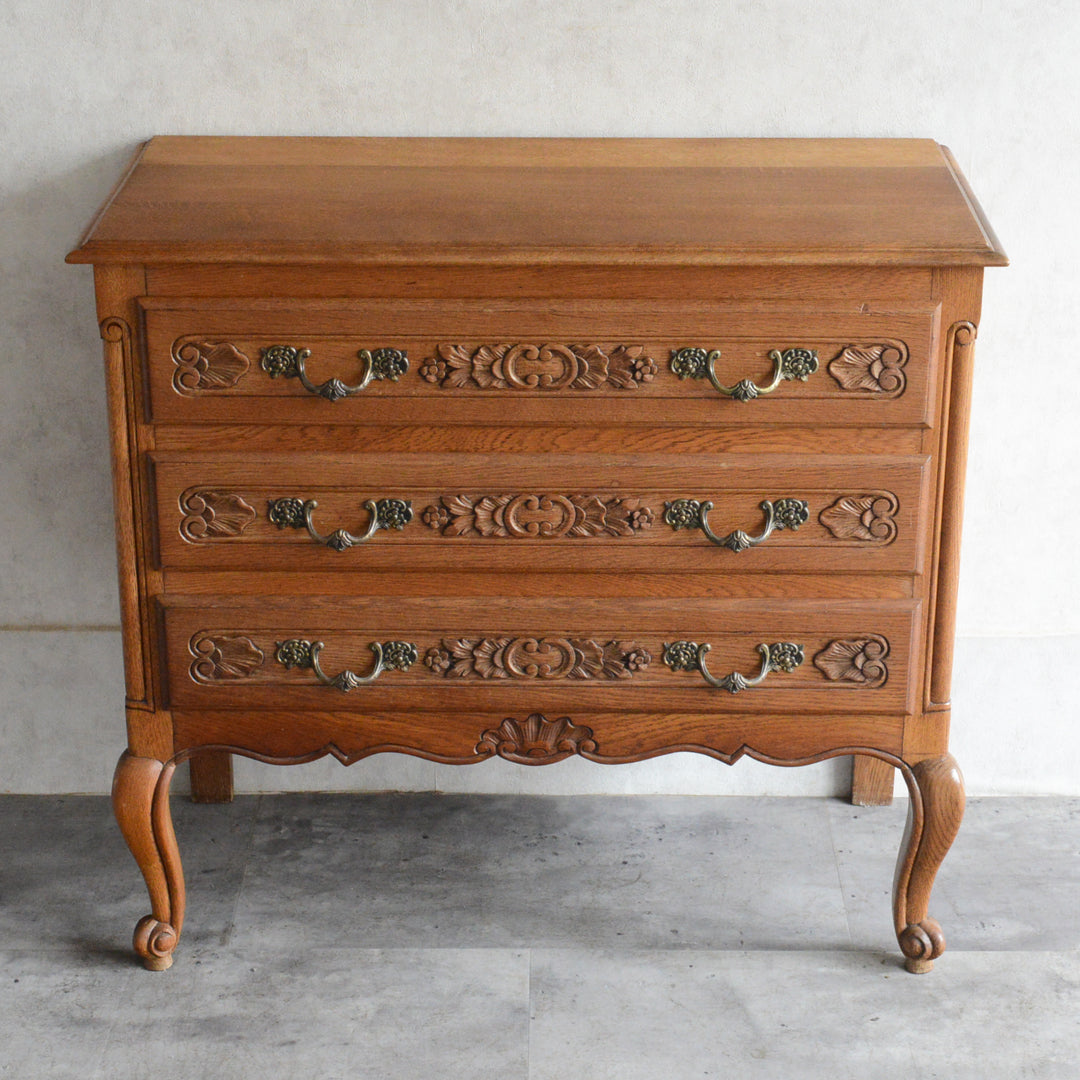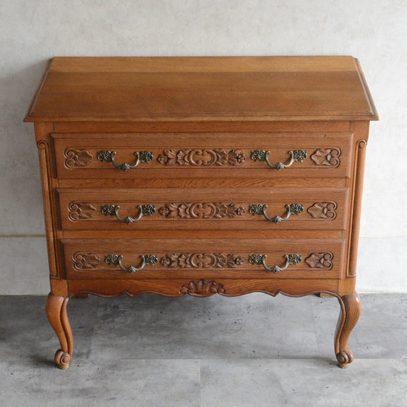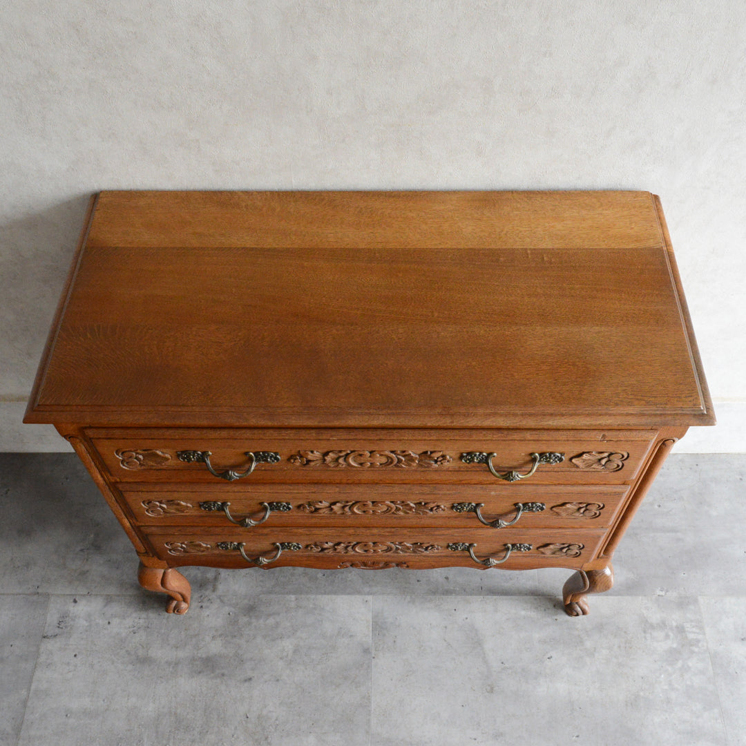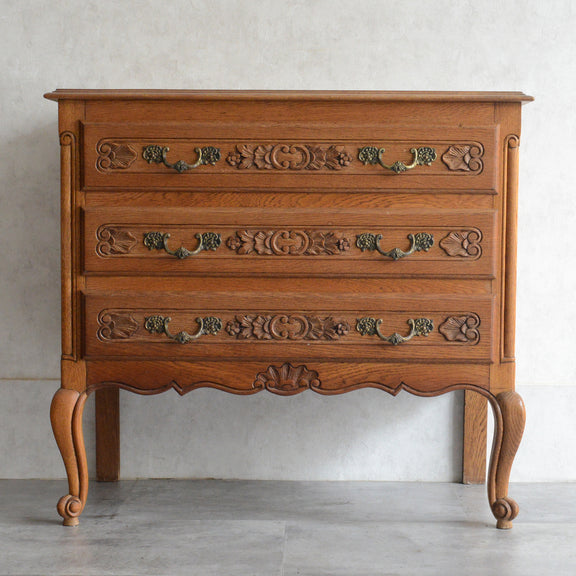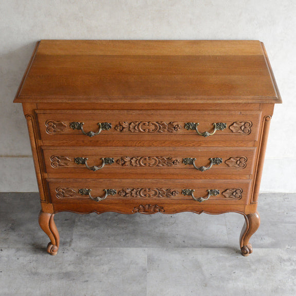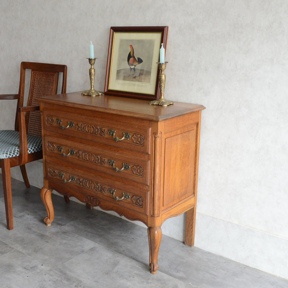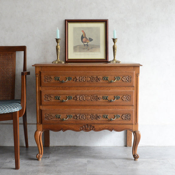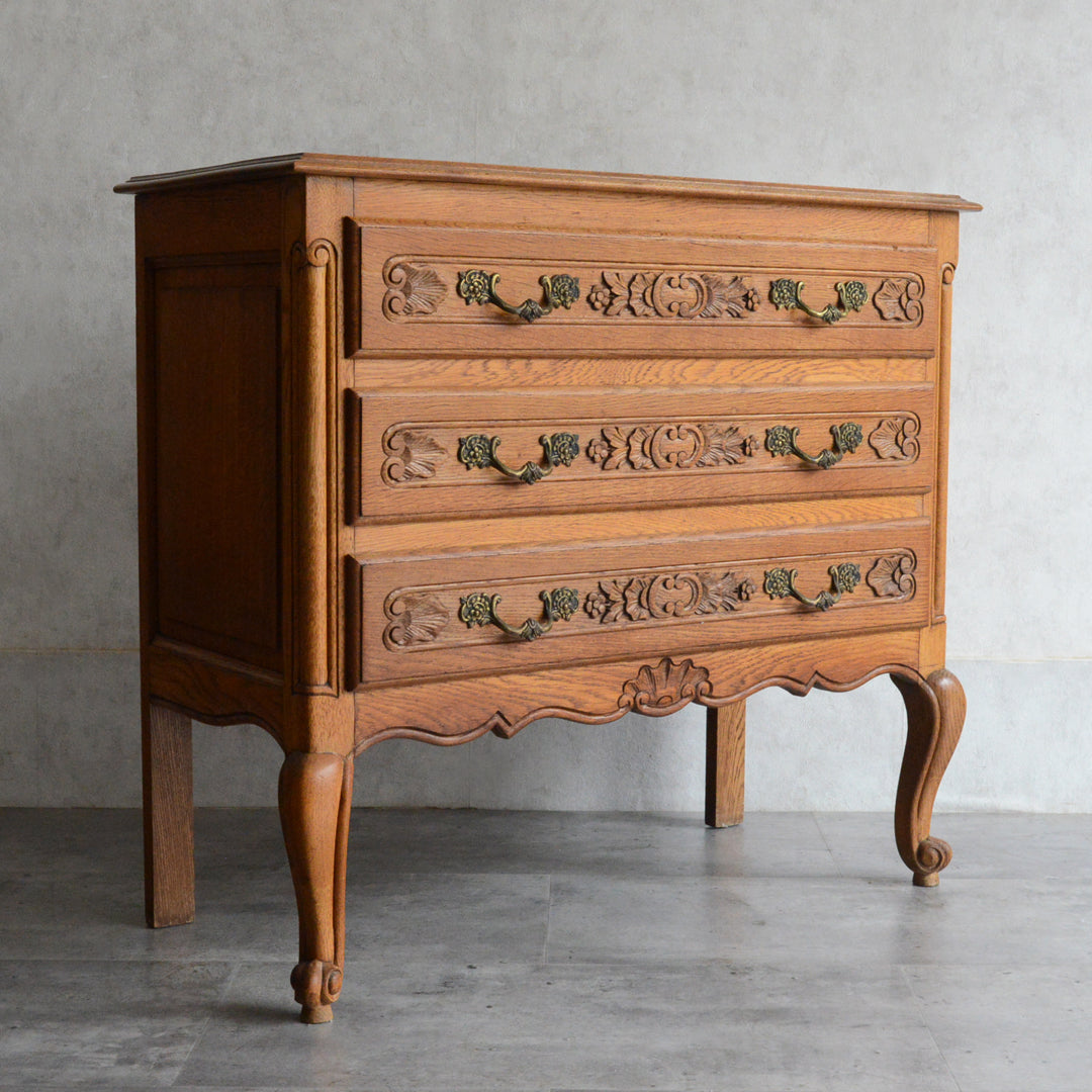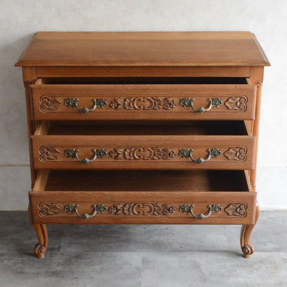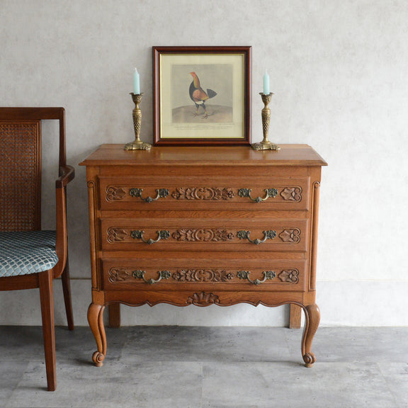 オーク材特有の虎斑の木目が美しいコンパクトチェスト