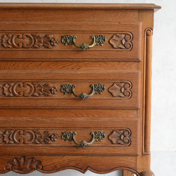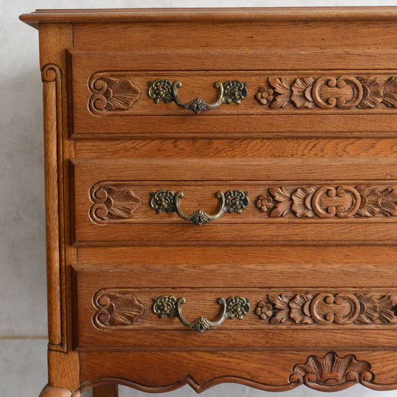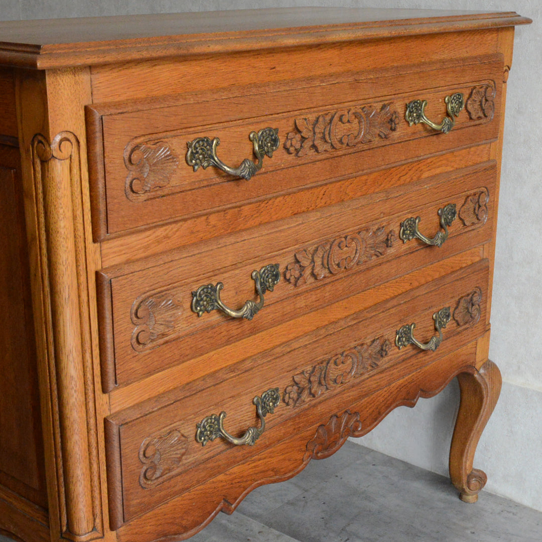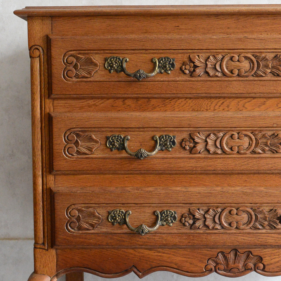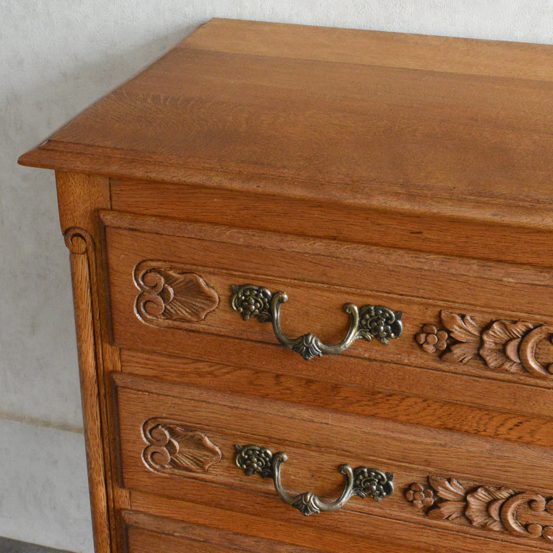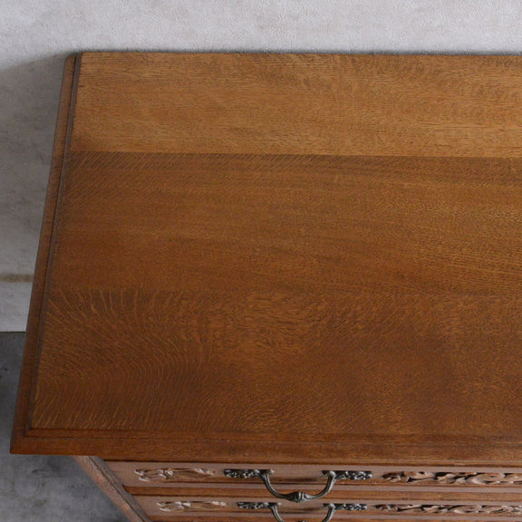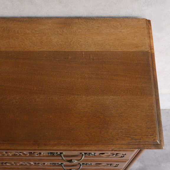 オーク材特有の虎斑の木目が美しいコンパクトチェスト