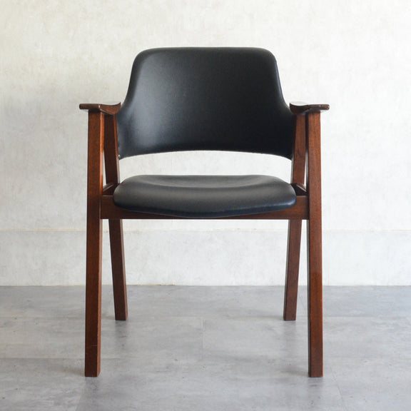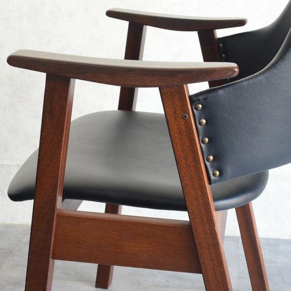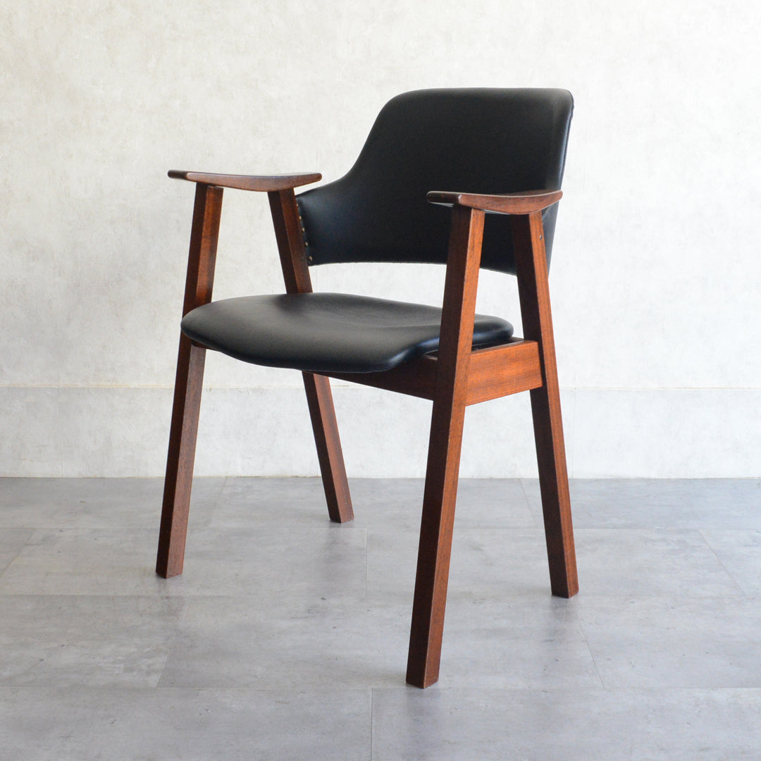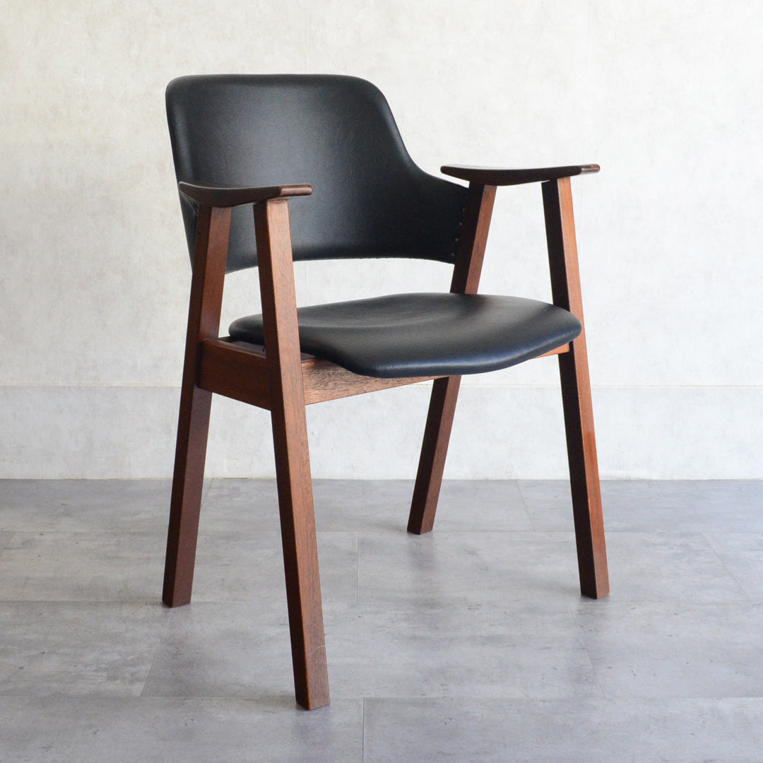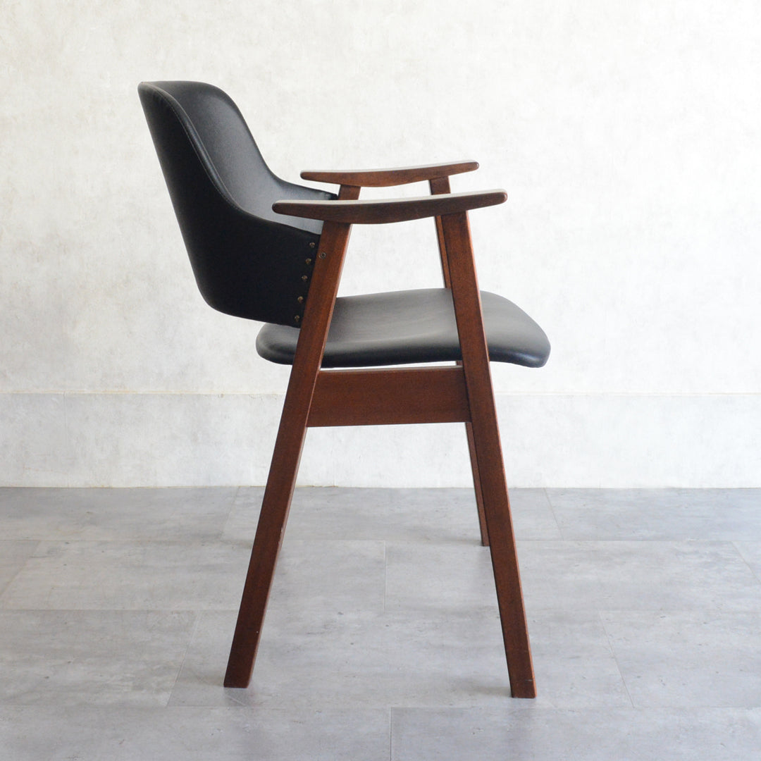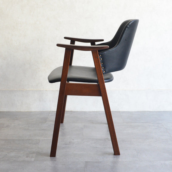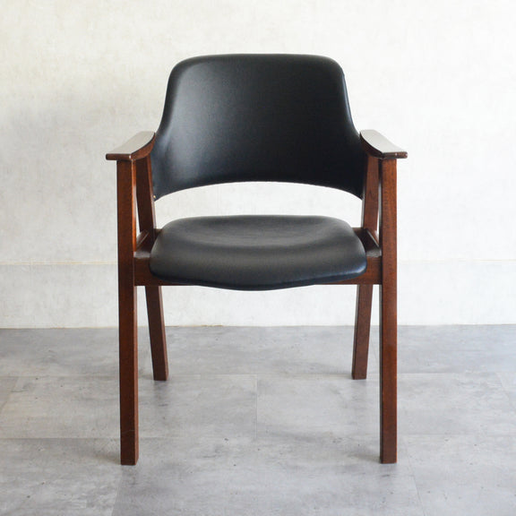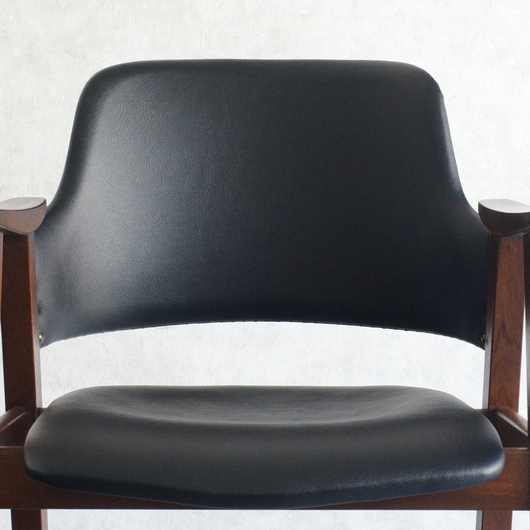 オランダヴィンテージ アームチェア02(張替済・黒レザー)