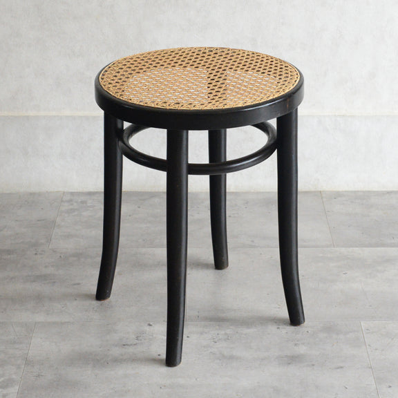 THONET社のラタンスツール。 座面、脚ともに曲木で構成されています。