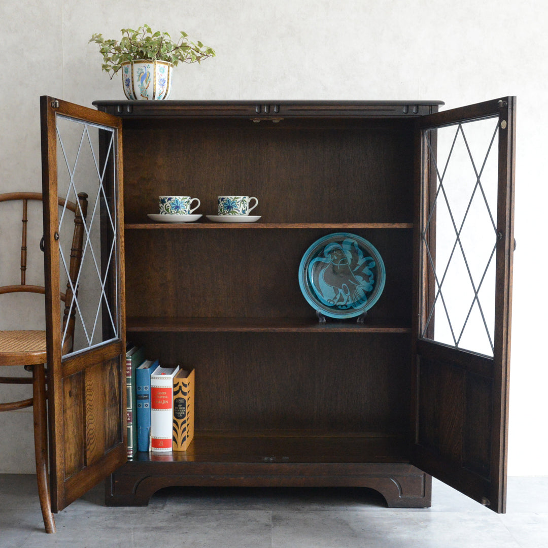 特にダイヤ形格子入りのヴィンテージガラス扉が魅力的です。