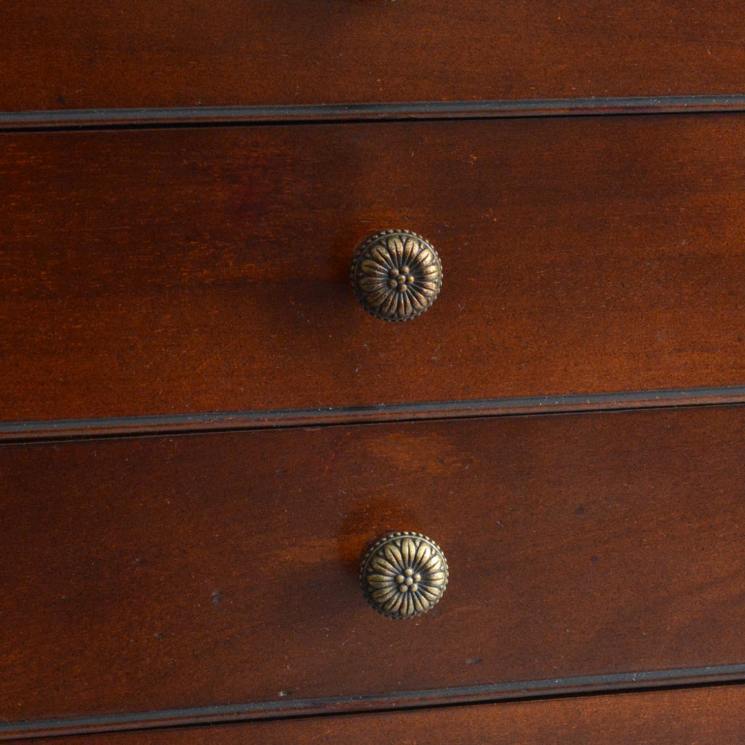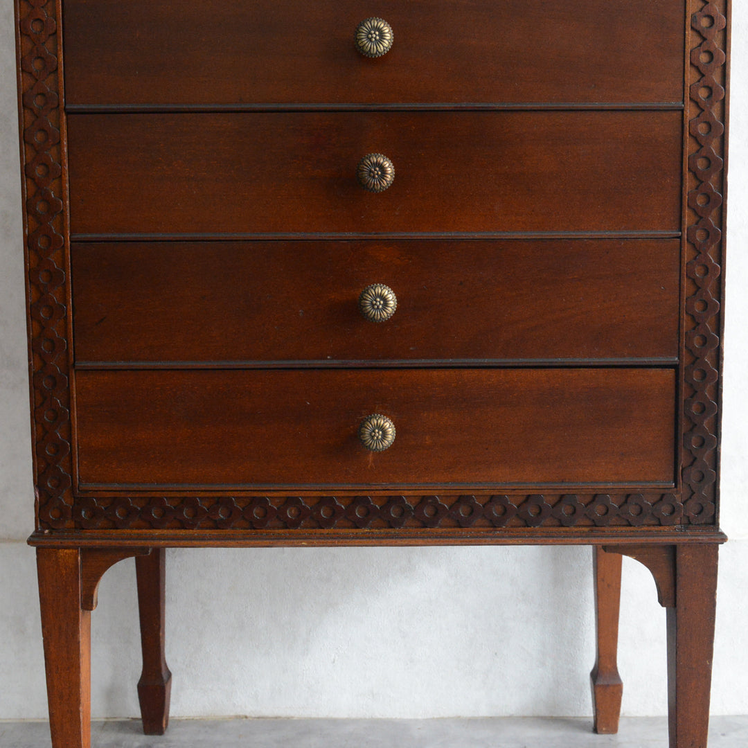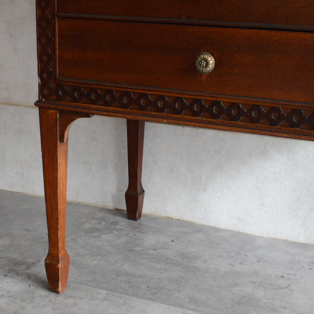 シンプルな装飾が落ち着いた印象の美しいチェスト。飾り棚としても程よいサイズ感です。