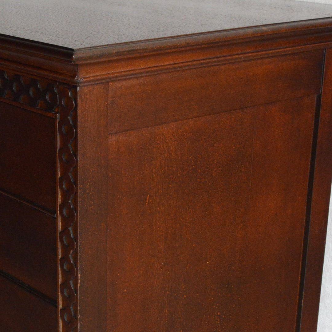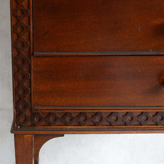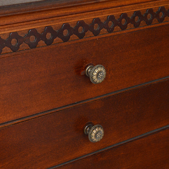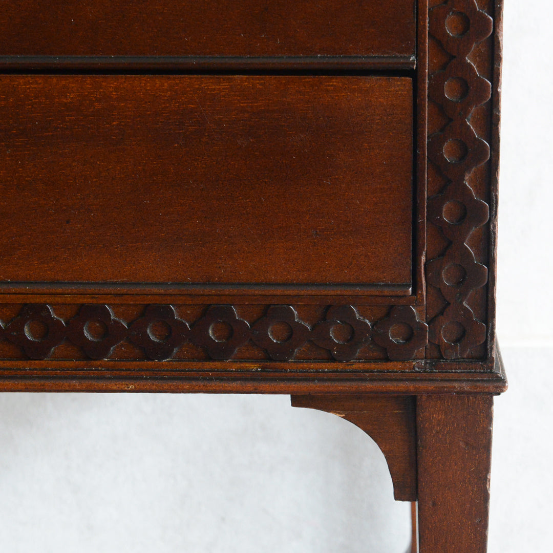 シンプルな装飾が落ち着いた印象の美しいチェスト。飾り棚としても程よいサイズ感です。