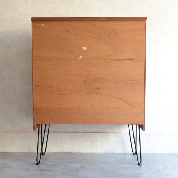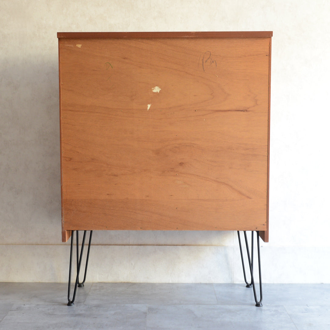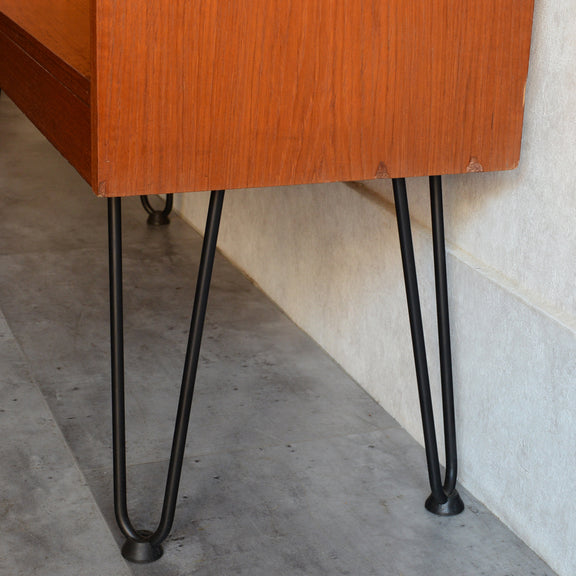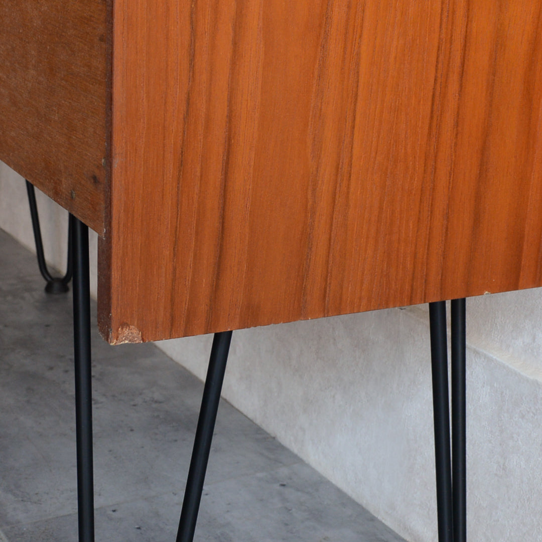カスタムのアイアンレッグにより、モダンでスタイリッシュなフォルムに仕上げられています。また、高さもより使いやすいキャビネットとなりました。