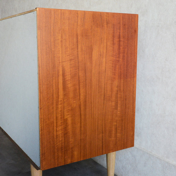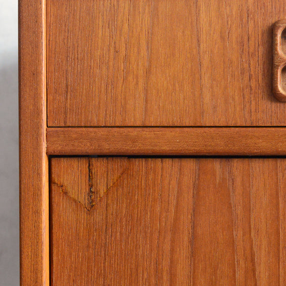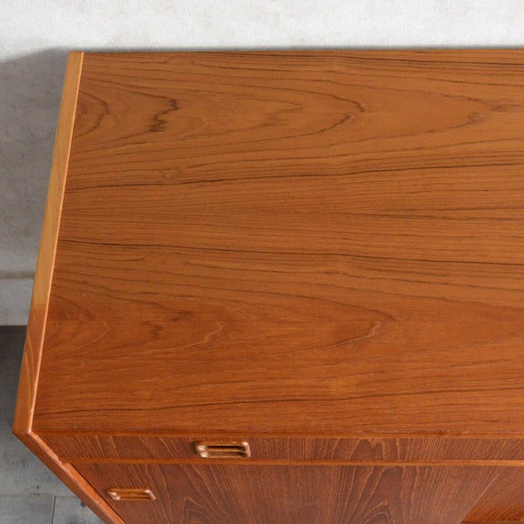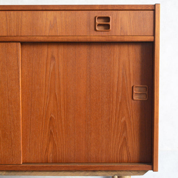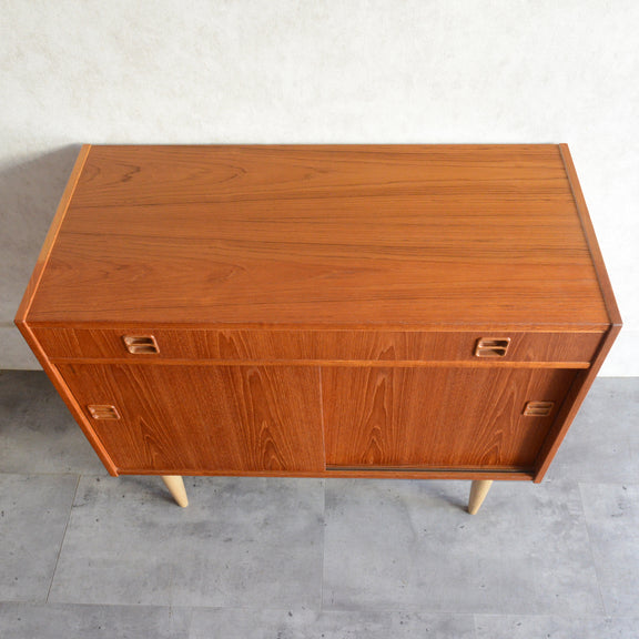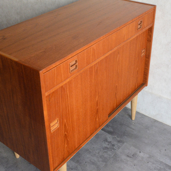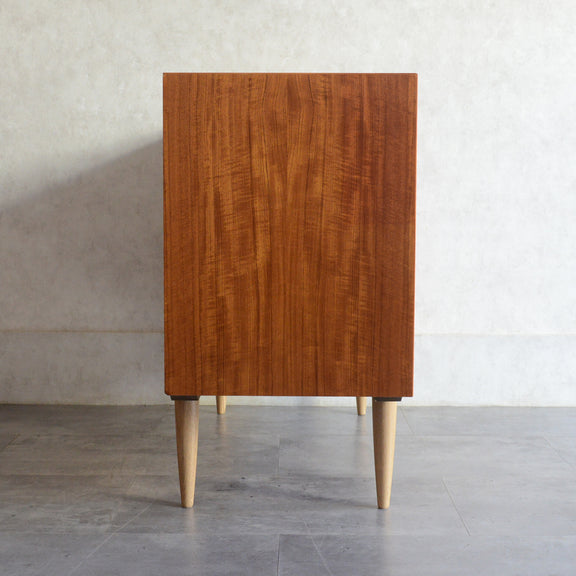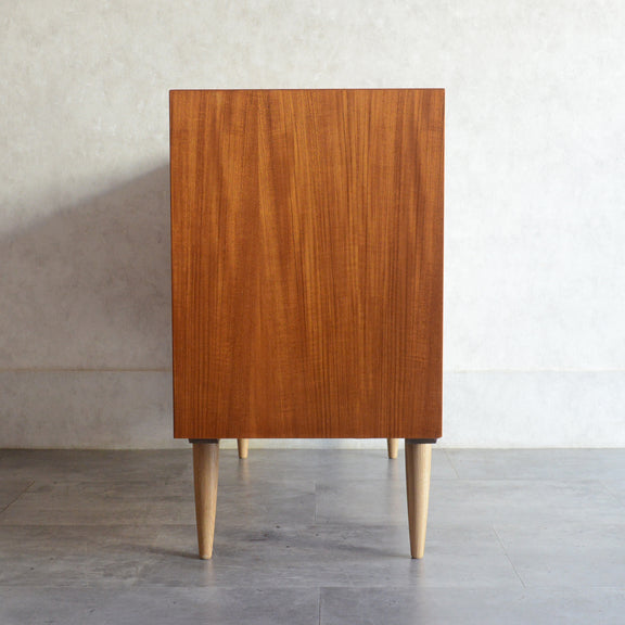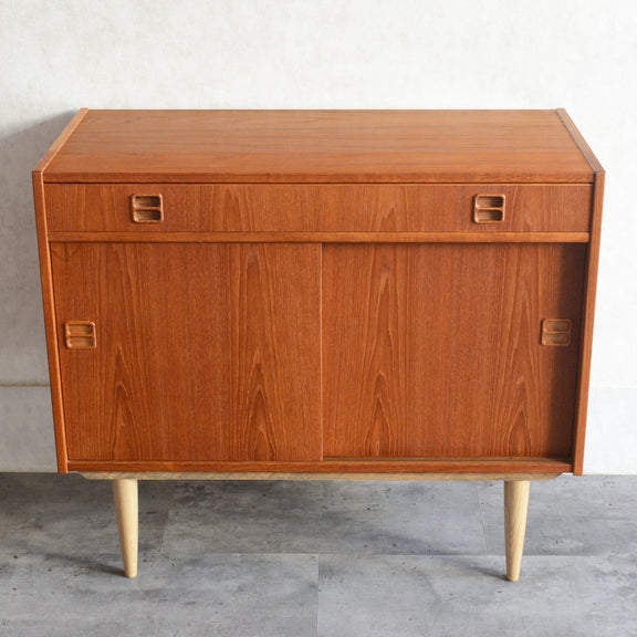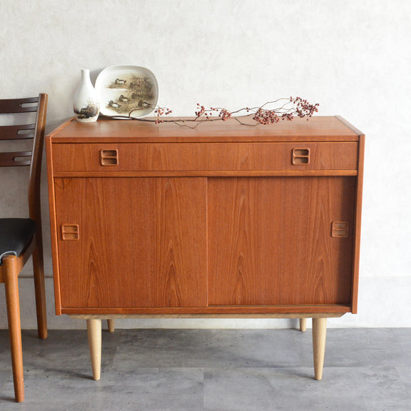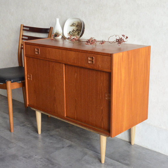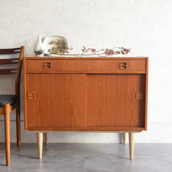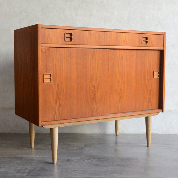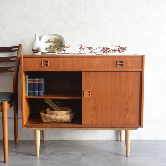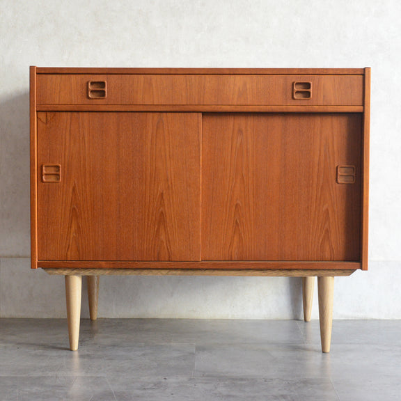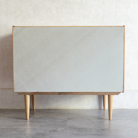 北欧らしい温かみあるスクエアの把手が印象的なキャビネット。