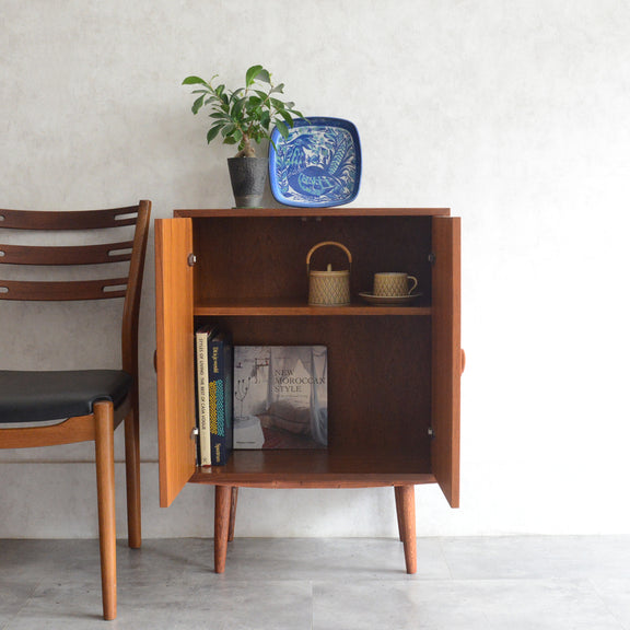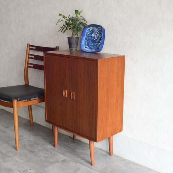 北欧らしい木製の把手がアクセントとなっているdomino Mobler社製のキャビネット。