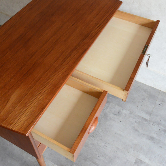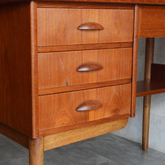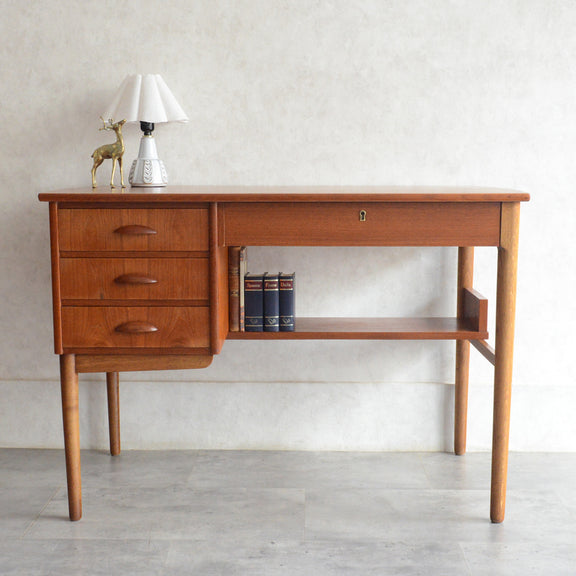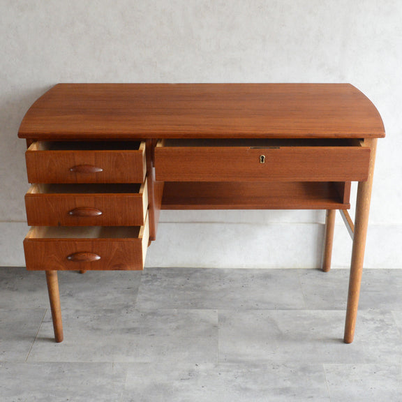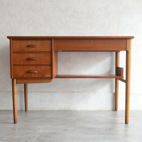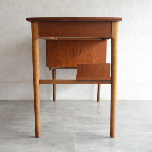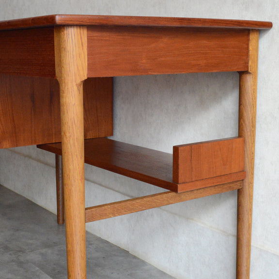 デンマークヴィンテージ チーク材の天板と脚部のオーク材のバイカラーが美しく、造りも丁寧なデスク。