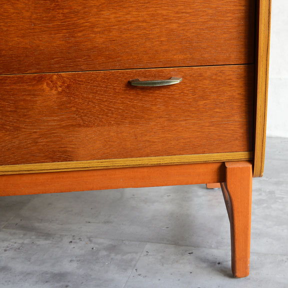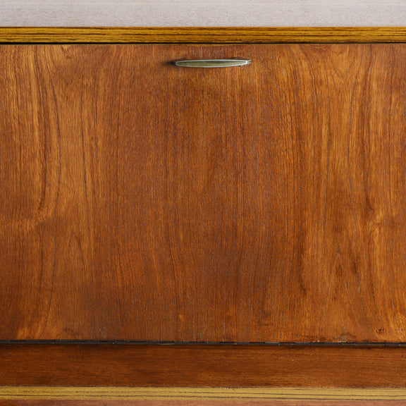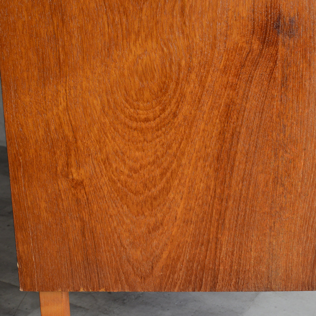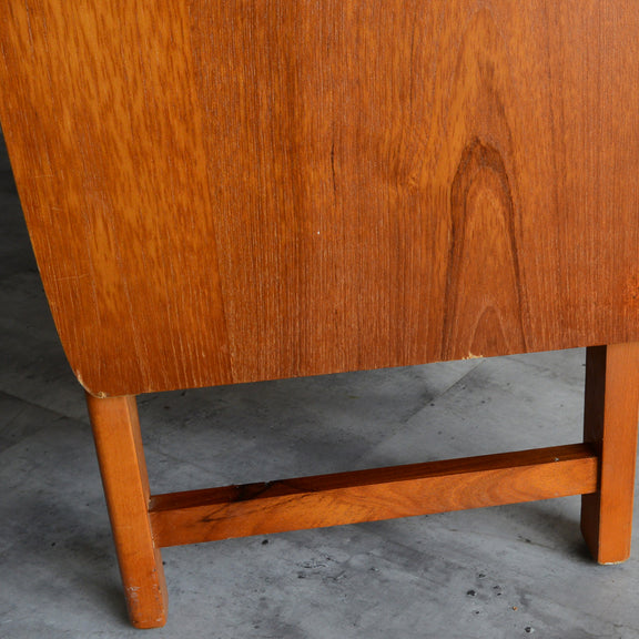 ヴィンテージチーク材と金属の取手、シンプルな佇まいが北欧インテリアにも相性が良さそうですね。