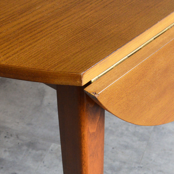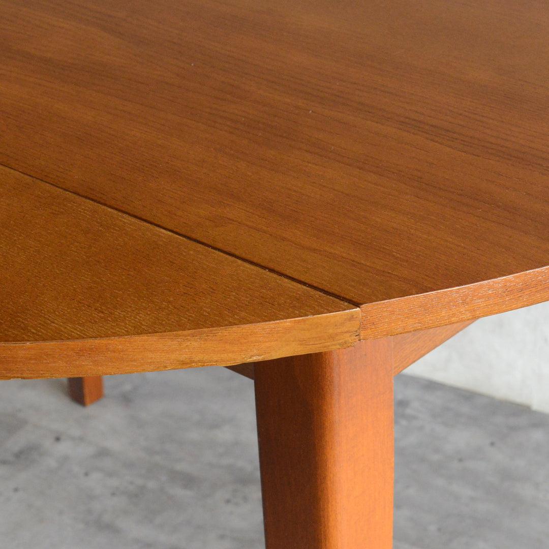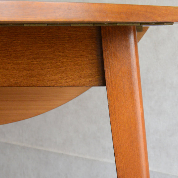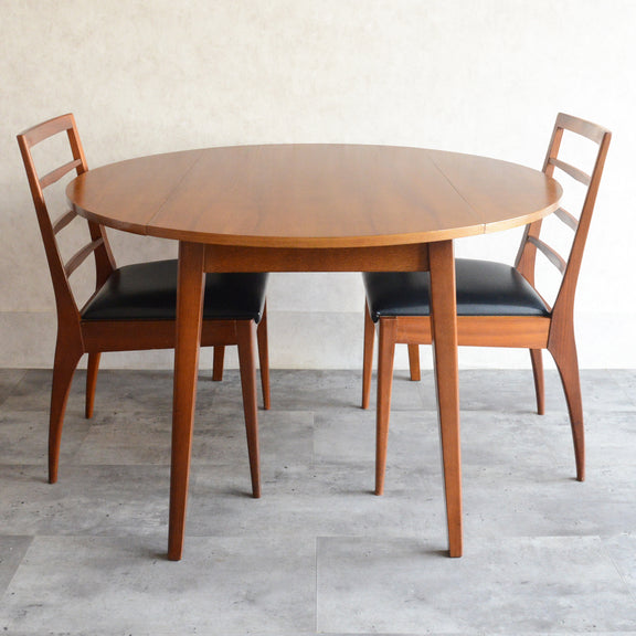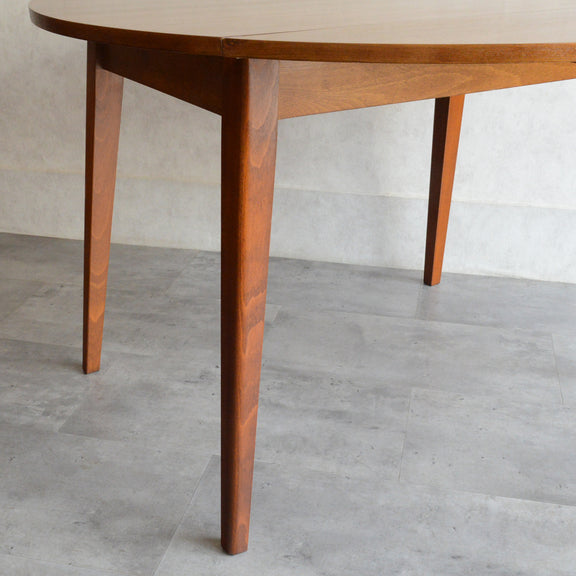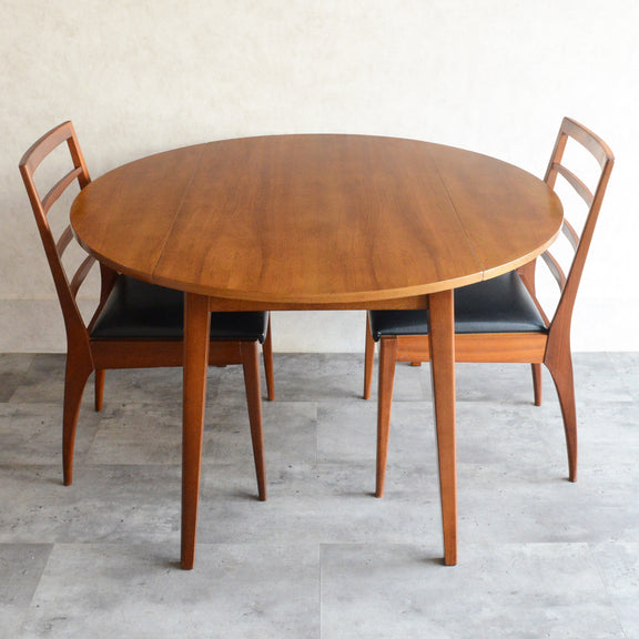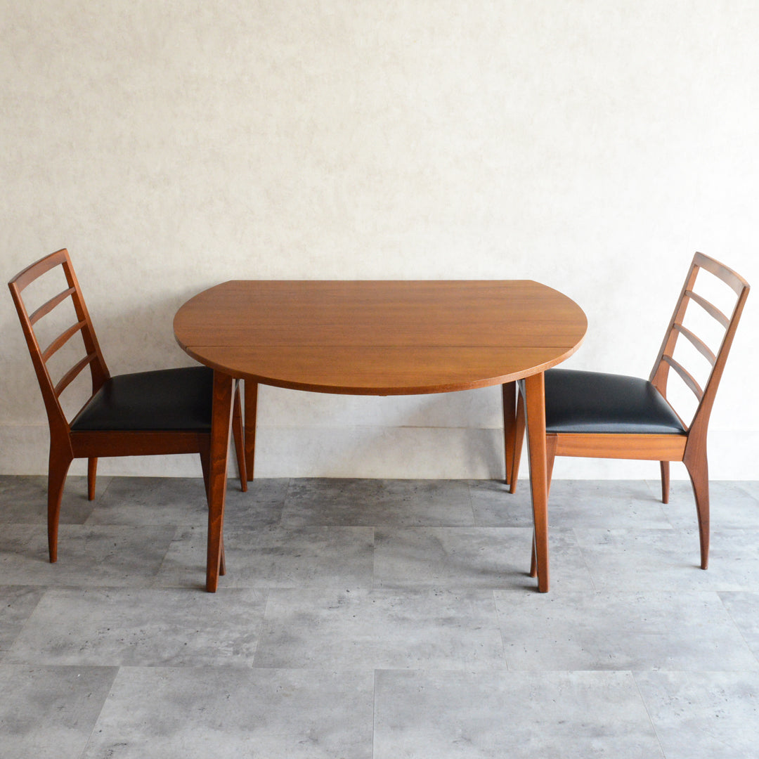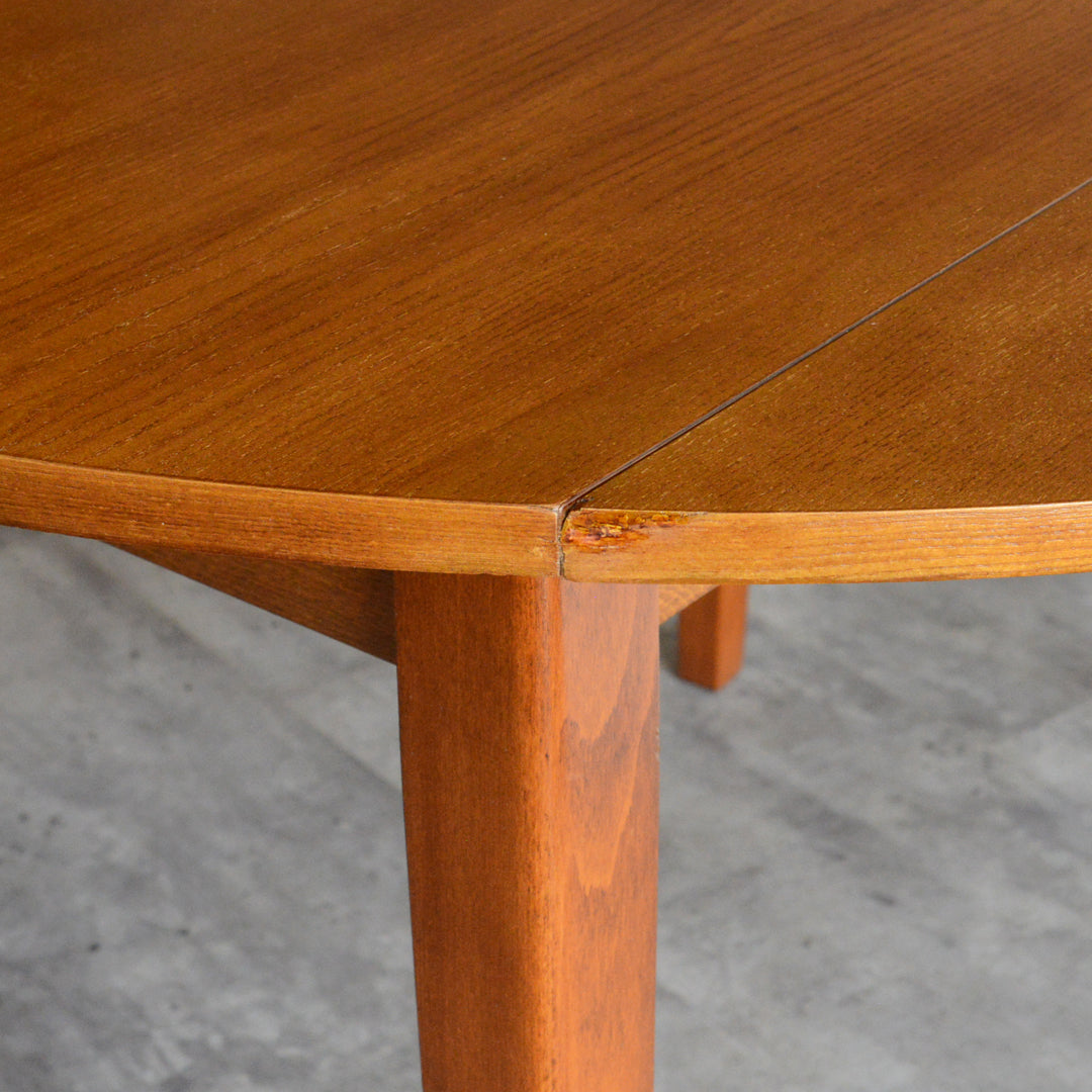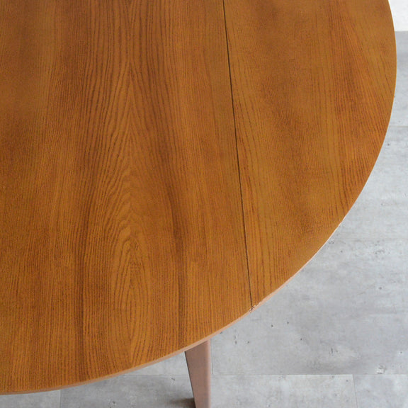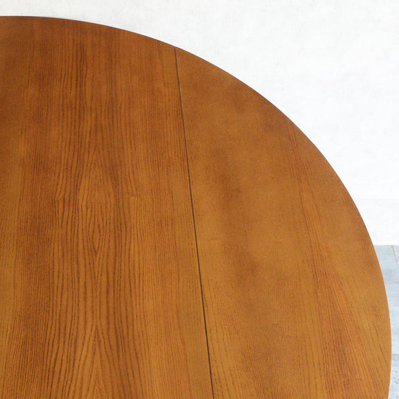 バタフライテーブルは、天板下の把手を操作することにより天板の左右部分を開閉することができます。幅が最小65cmとなりますので、設置スペースや搬入事情によりコンパクトなミッドセンチュリーのラウンドテーブルをお探しの方にお勧めです。